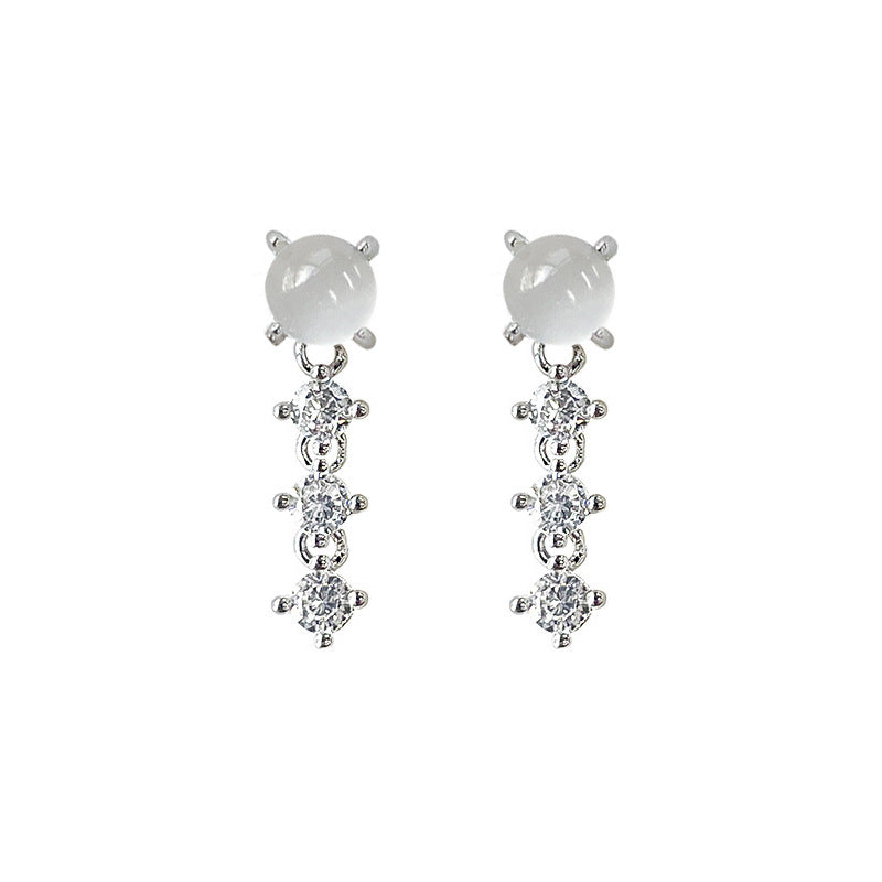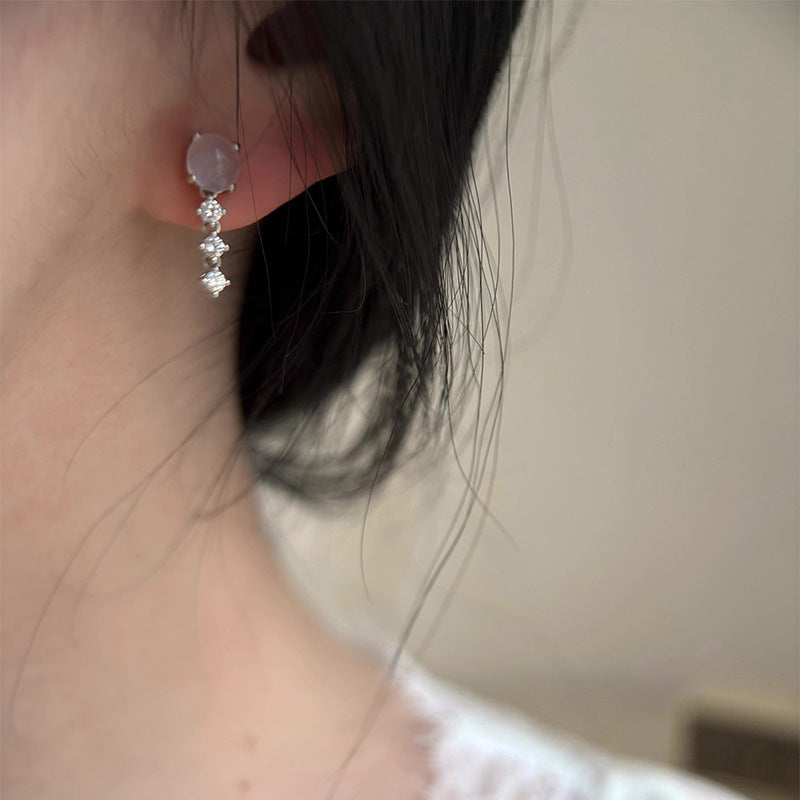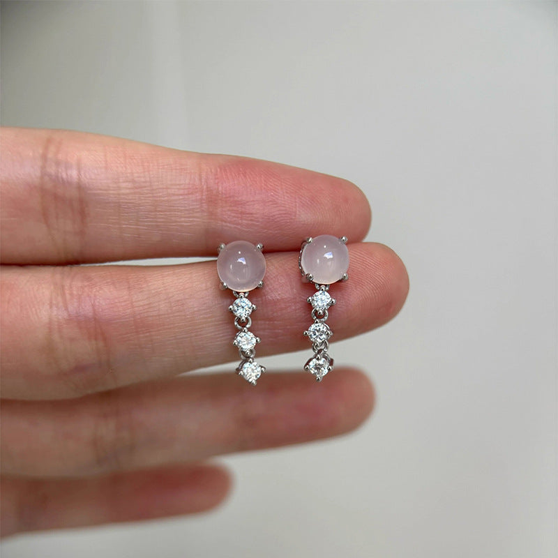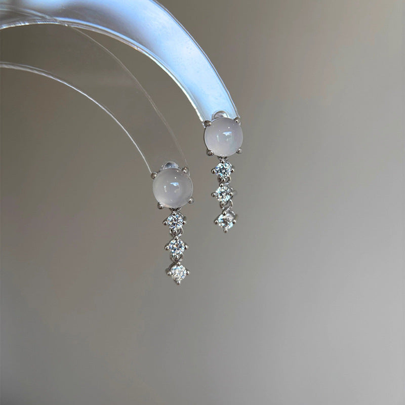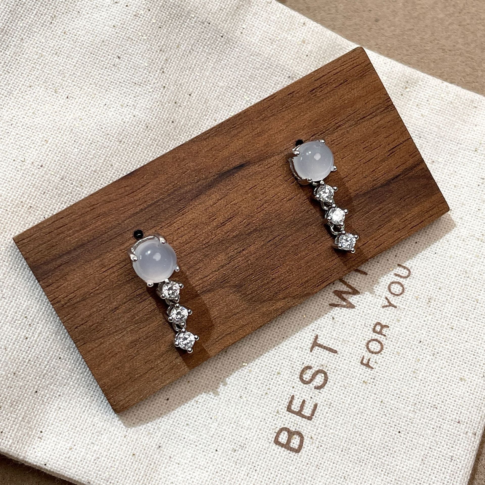 F廠【DQ11462E】S925純銀新中式天然白玉髓耳環女輕奢氣質鑲鑽流蘇耳飾高級感 25.08-1