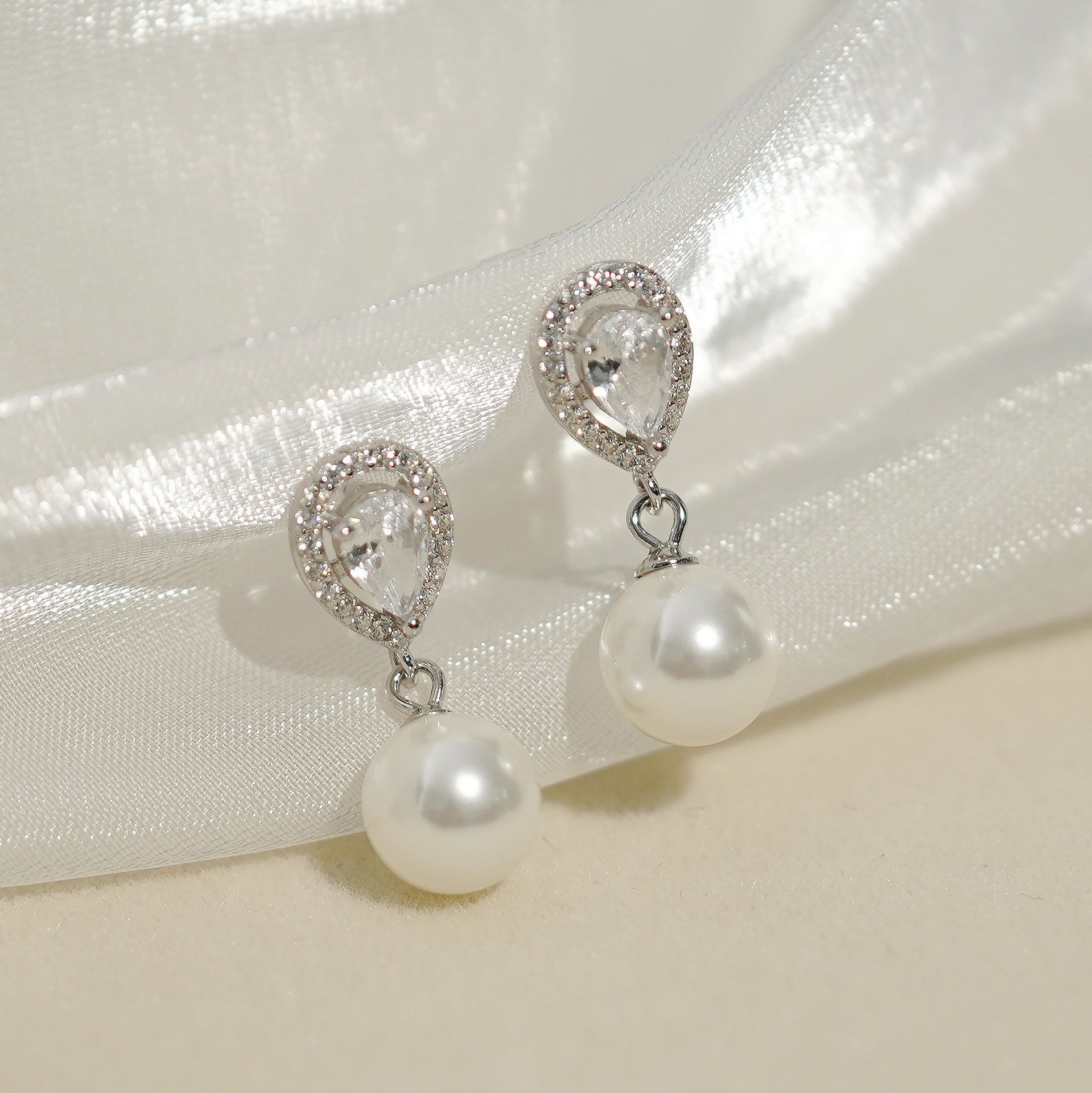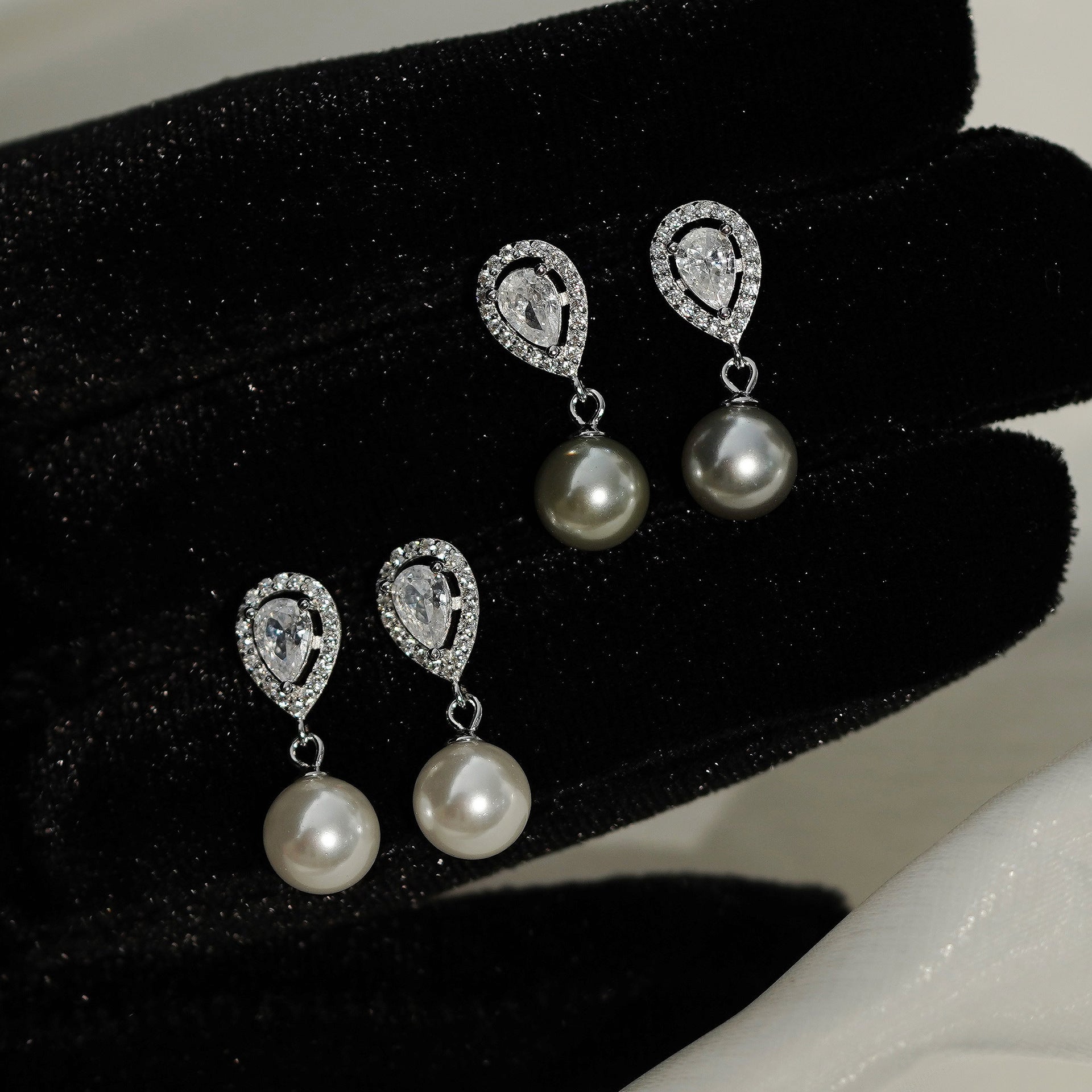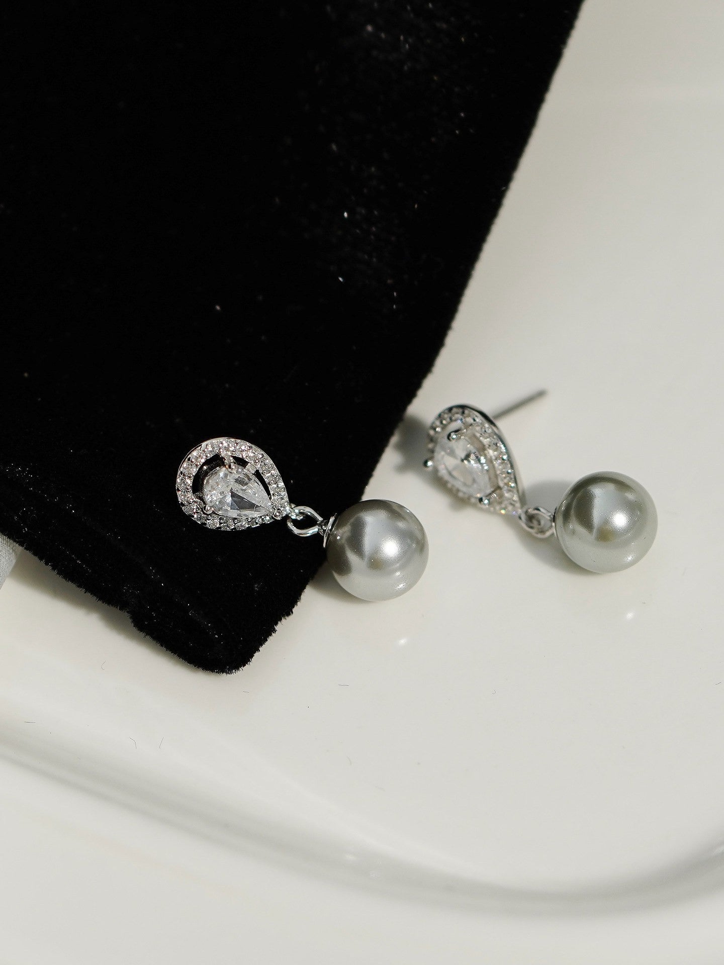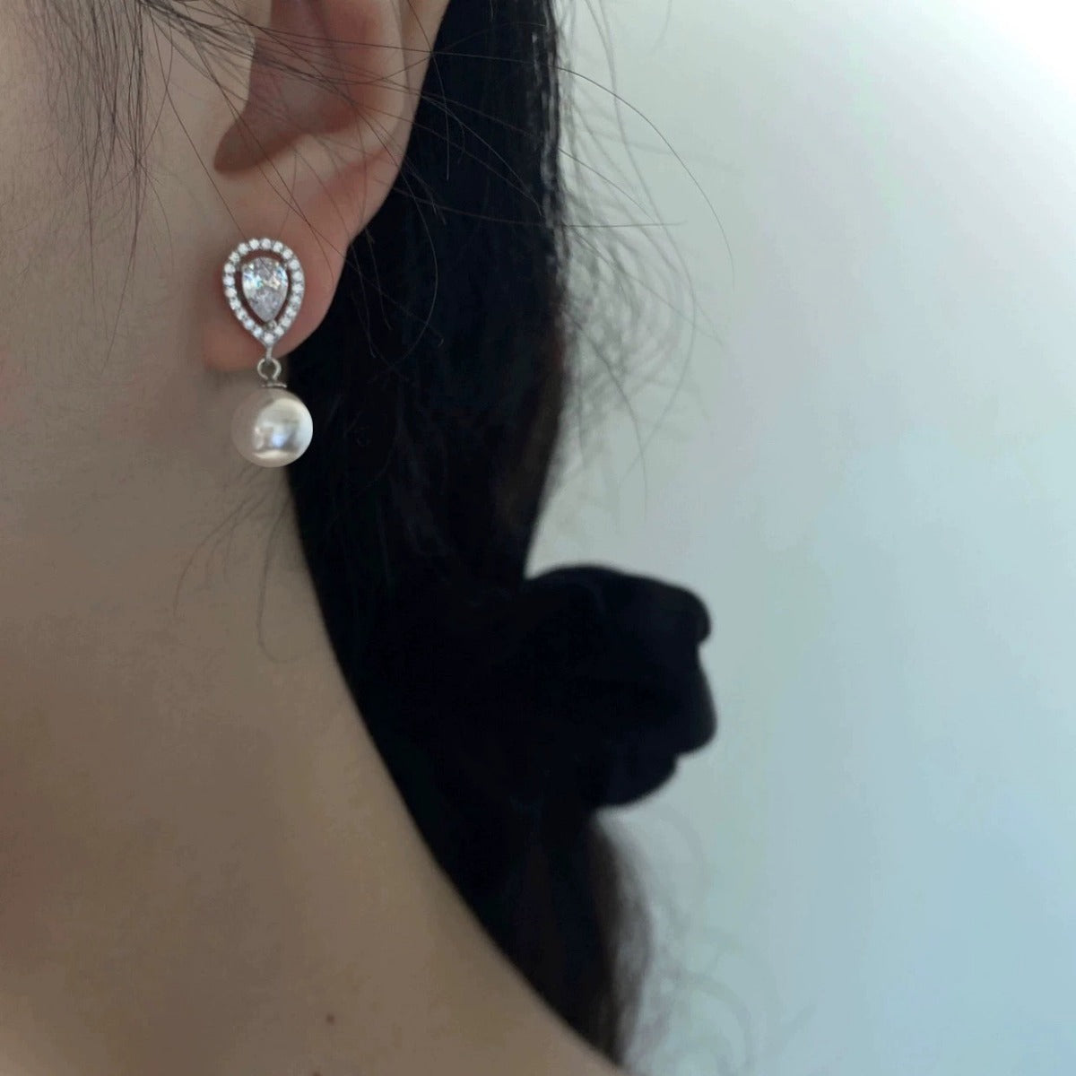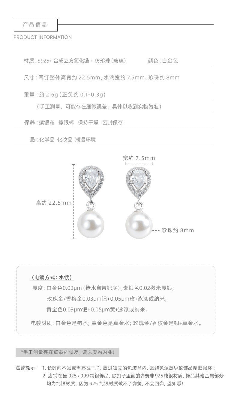 F廠【DQ11519E】法式優雅S925純銀水滴閃鋯耳環女精緻輕奢正圓仿珍珠復古耳飾 25.09-4