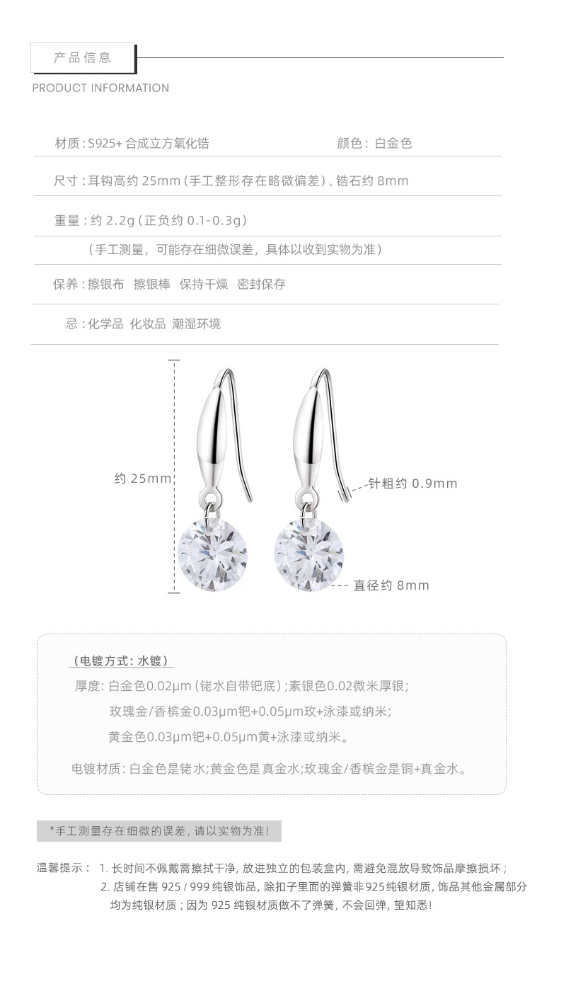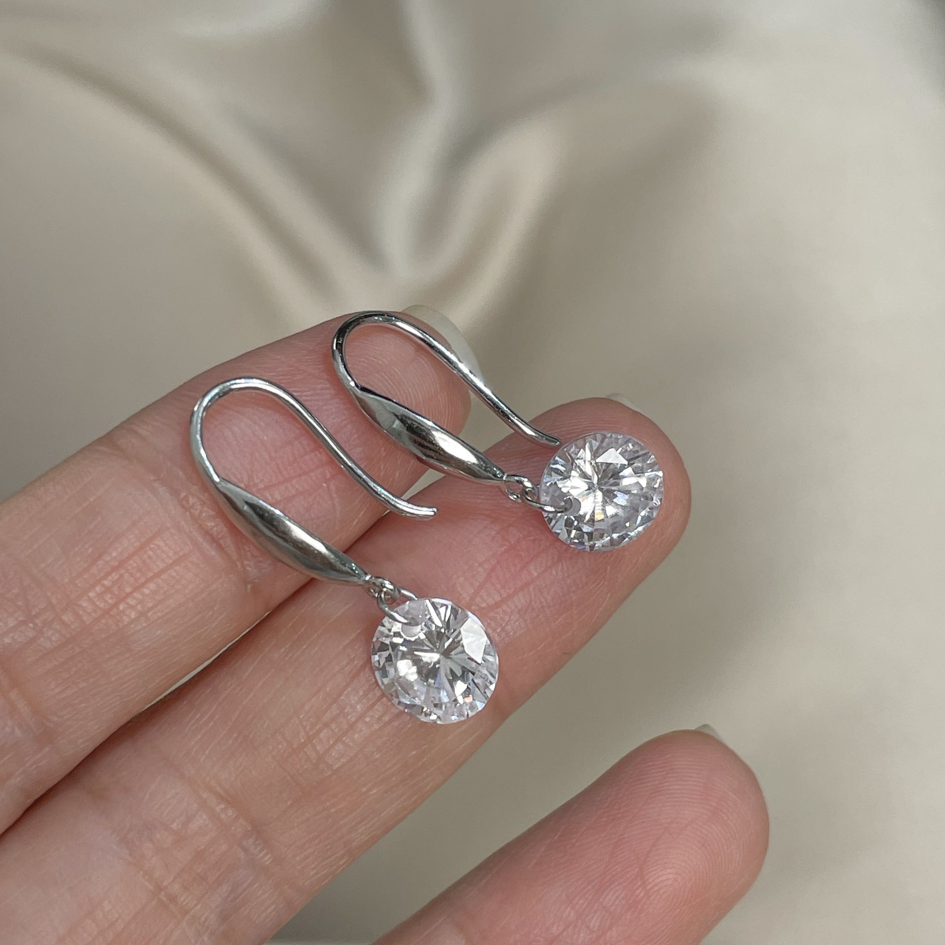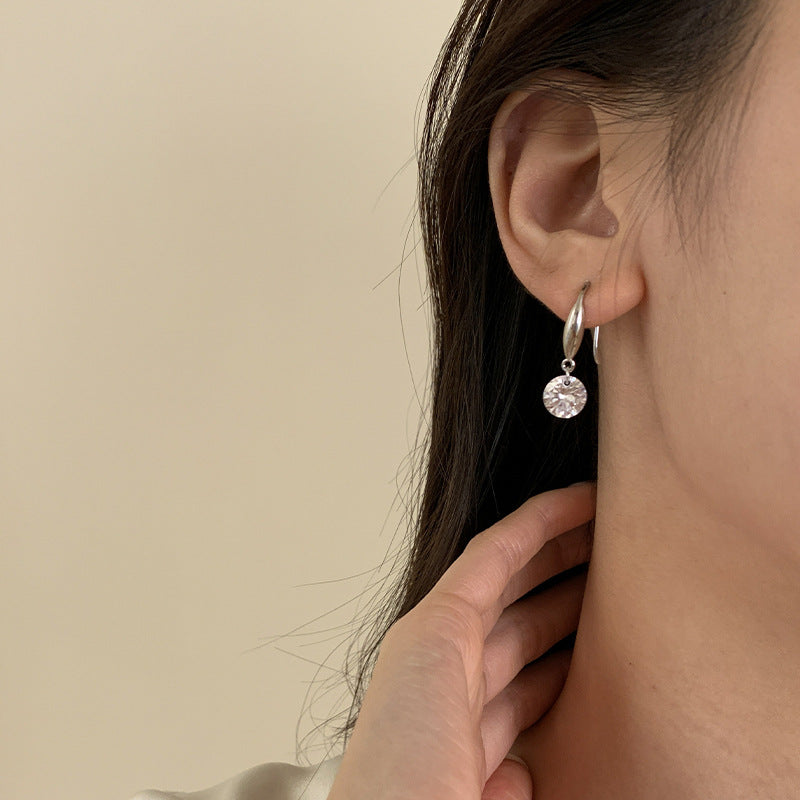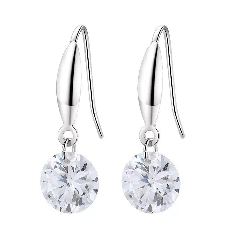 F廠【DQ11530E】S925純銀韓版單顆圓形鋯石耳鉤女簡約時尚靈動單鑽耳環飾潮 25.10-3