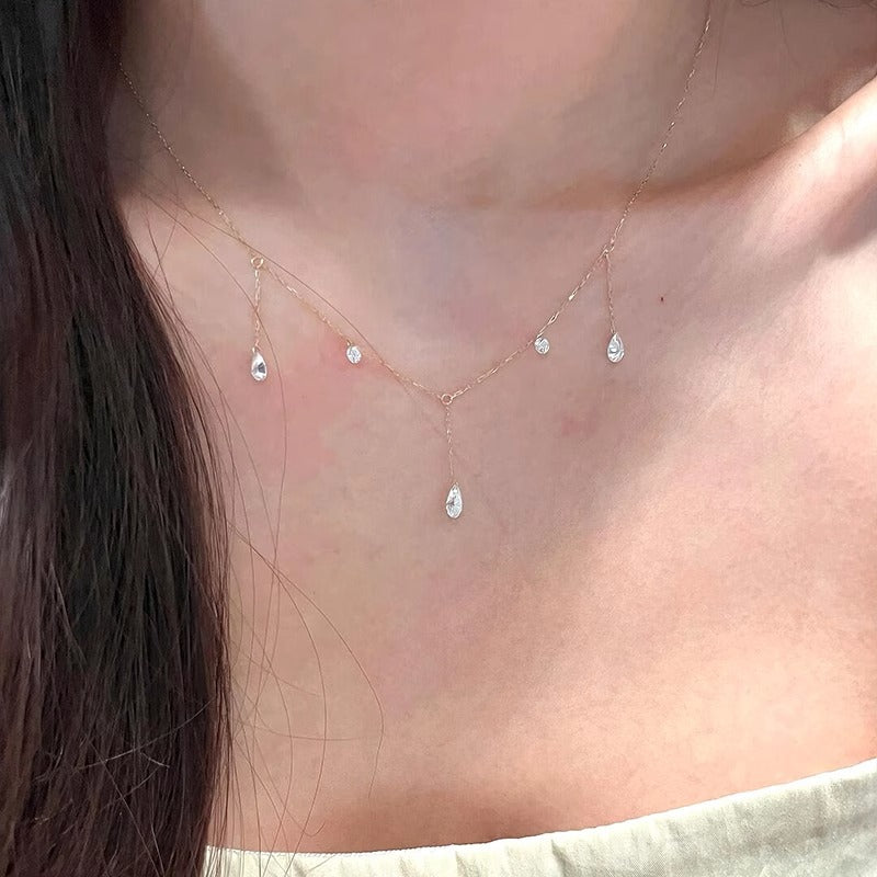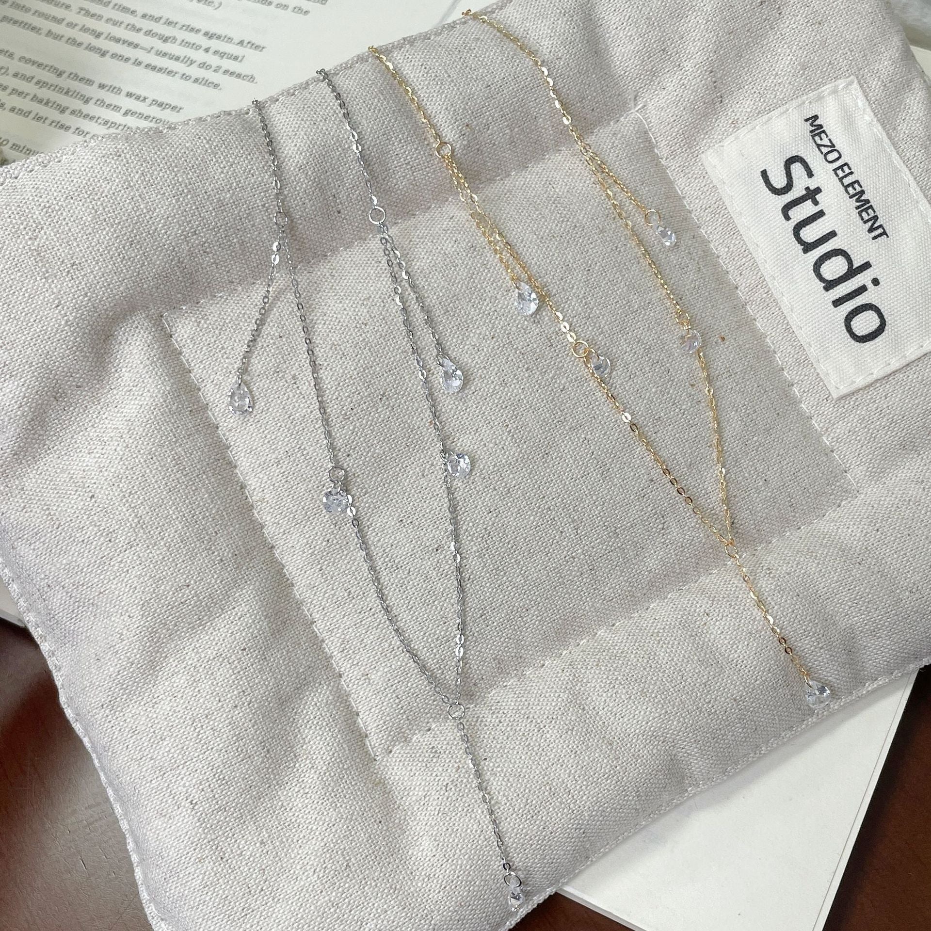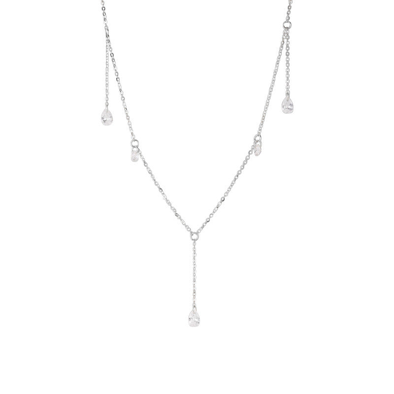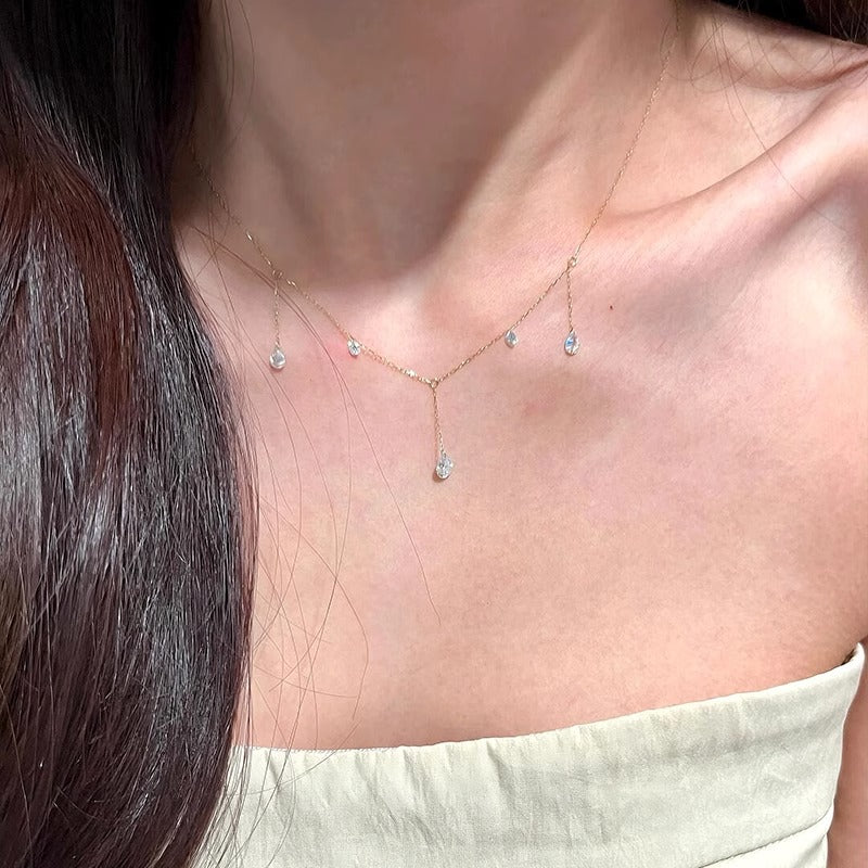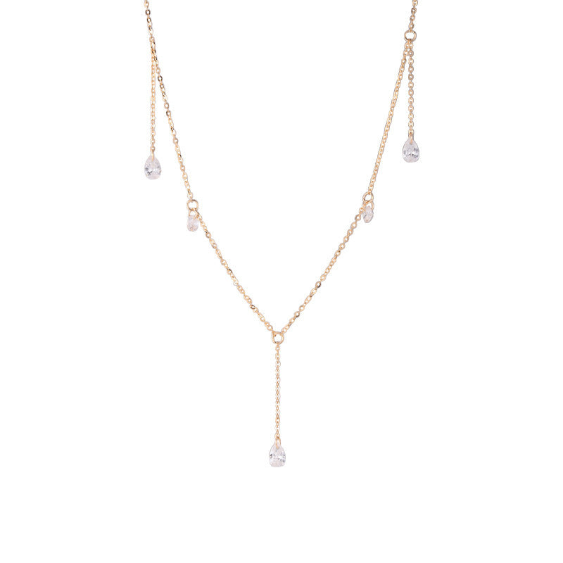 F廠【DQ1157N】S925純銀水滴鋯石鏈條流蘇項鍊女韓系簡約滿天星精緻鎖骨鏈潮 25.06-3