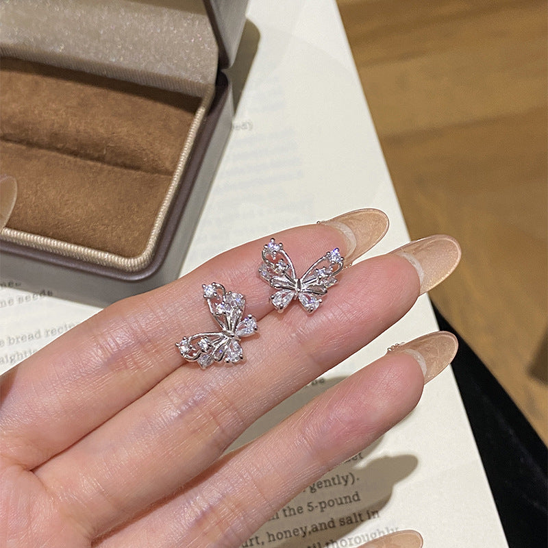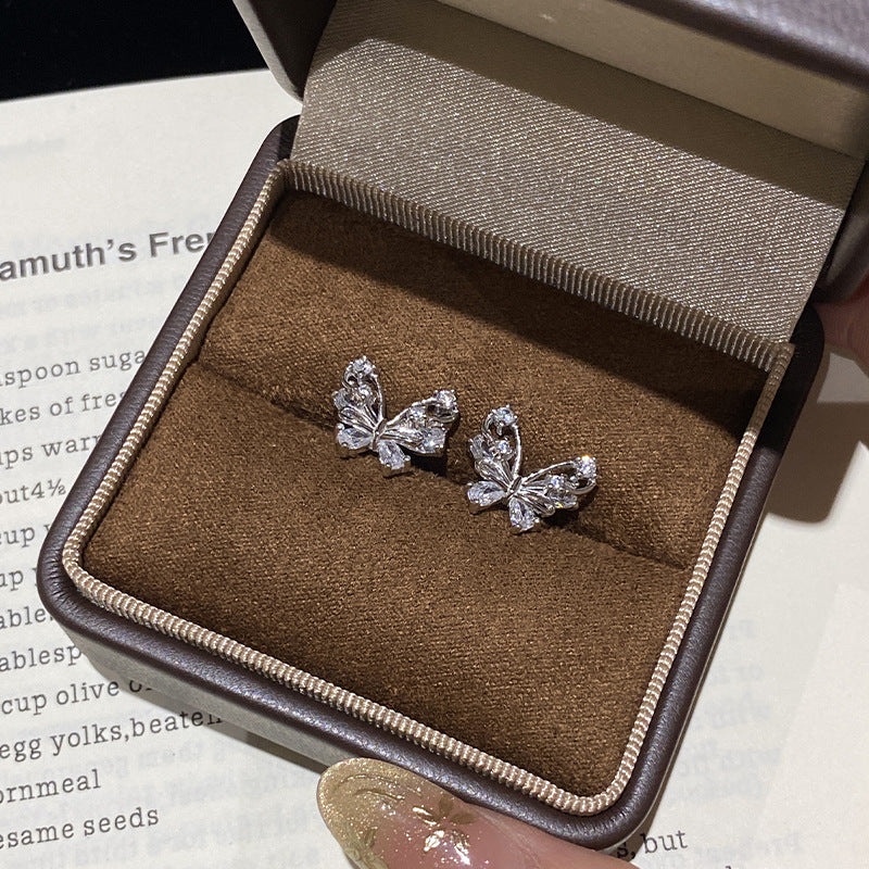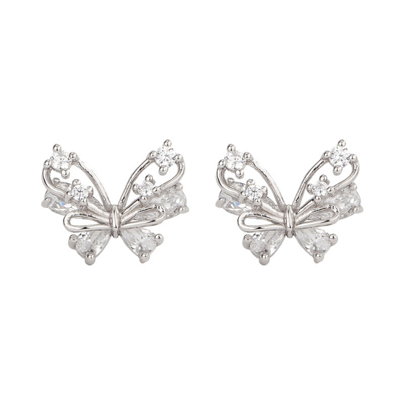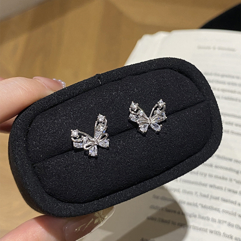F廠【DQ11586E】足銀999精緻輕奢蝴蝶耳環女小眾設計閃鑽蝴蝶簡約純銀耳飾潮 25.06-4