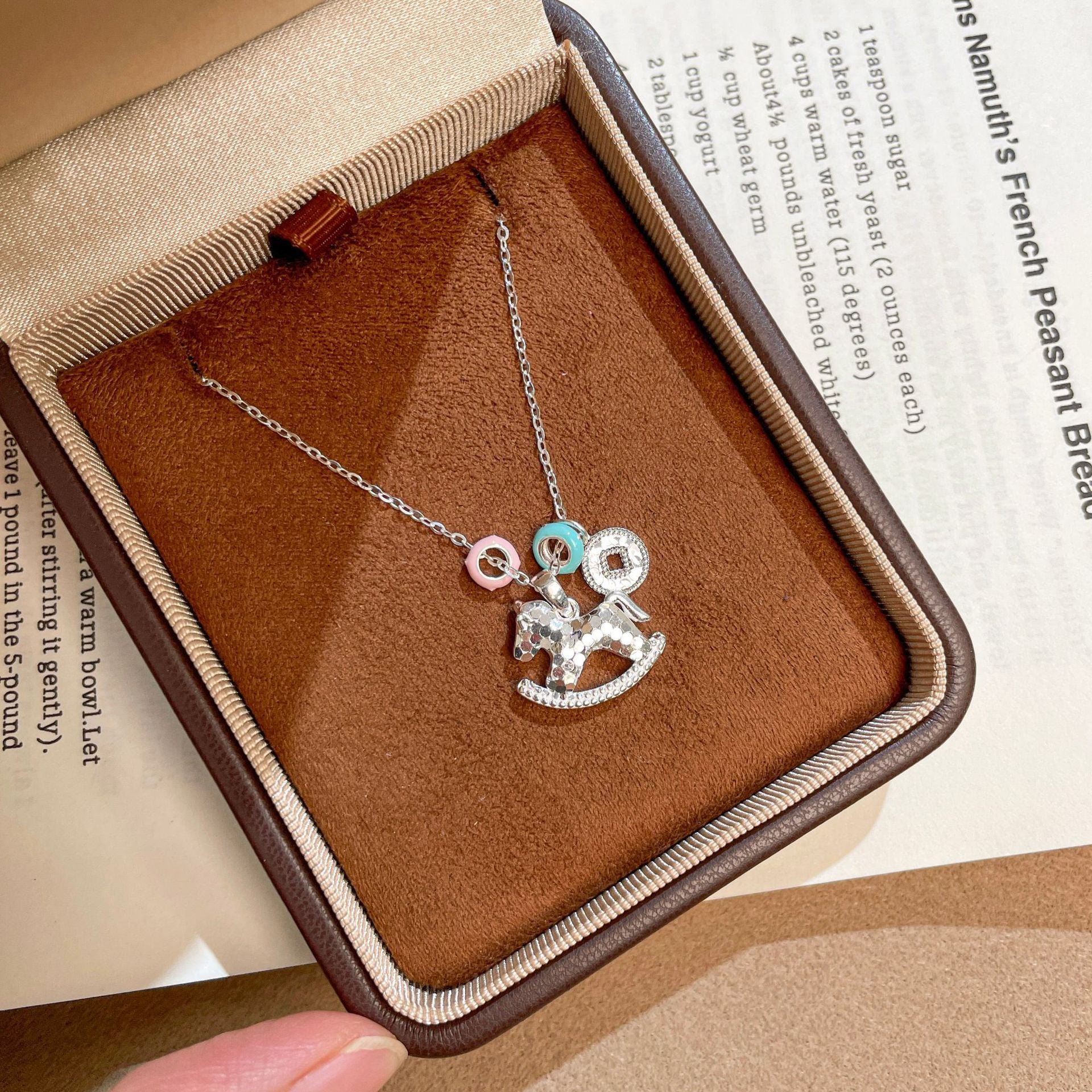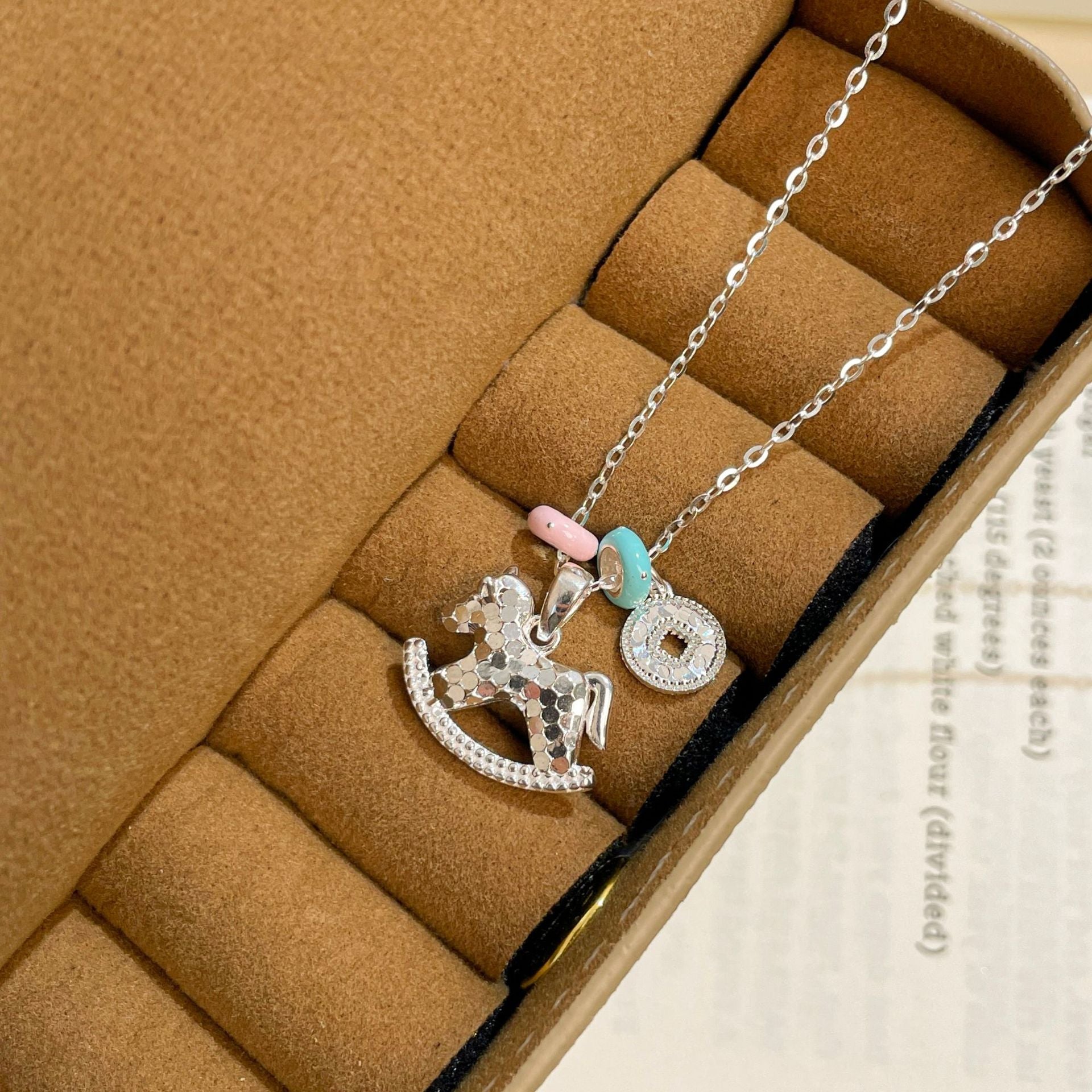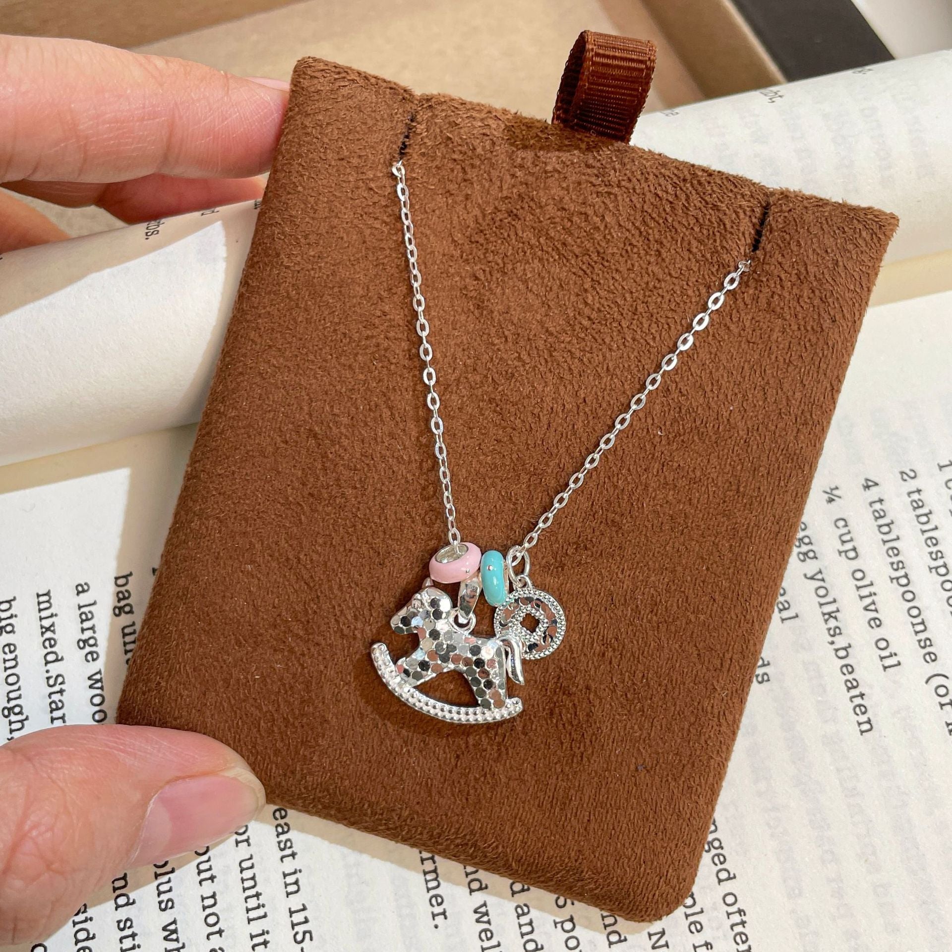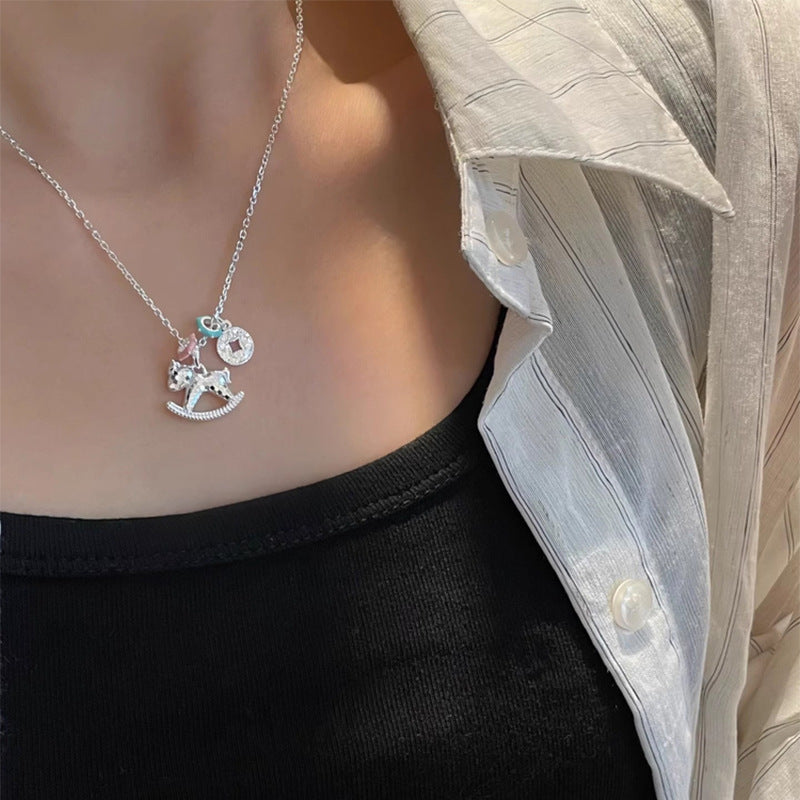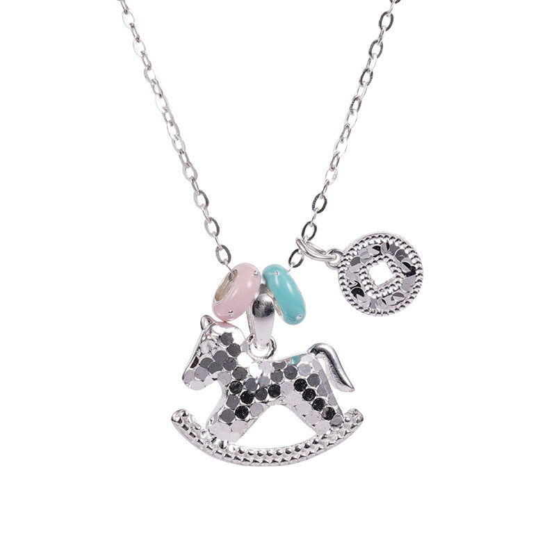 F廠【DQ1167N】S925純銀碎冰冰木馬項鍊女輕奢琺瑯夢幻少女心CNC小馬鎖骨鏈 25.10-1