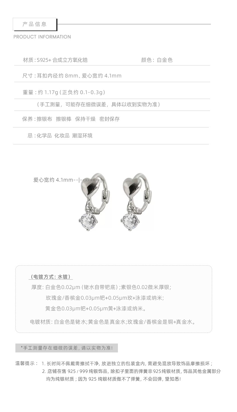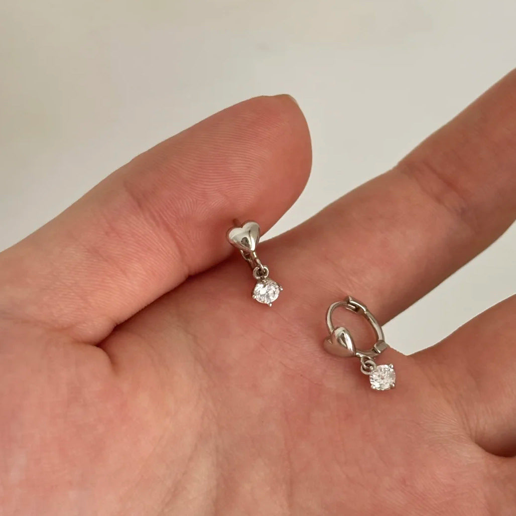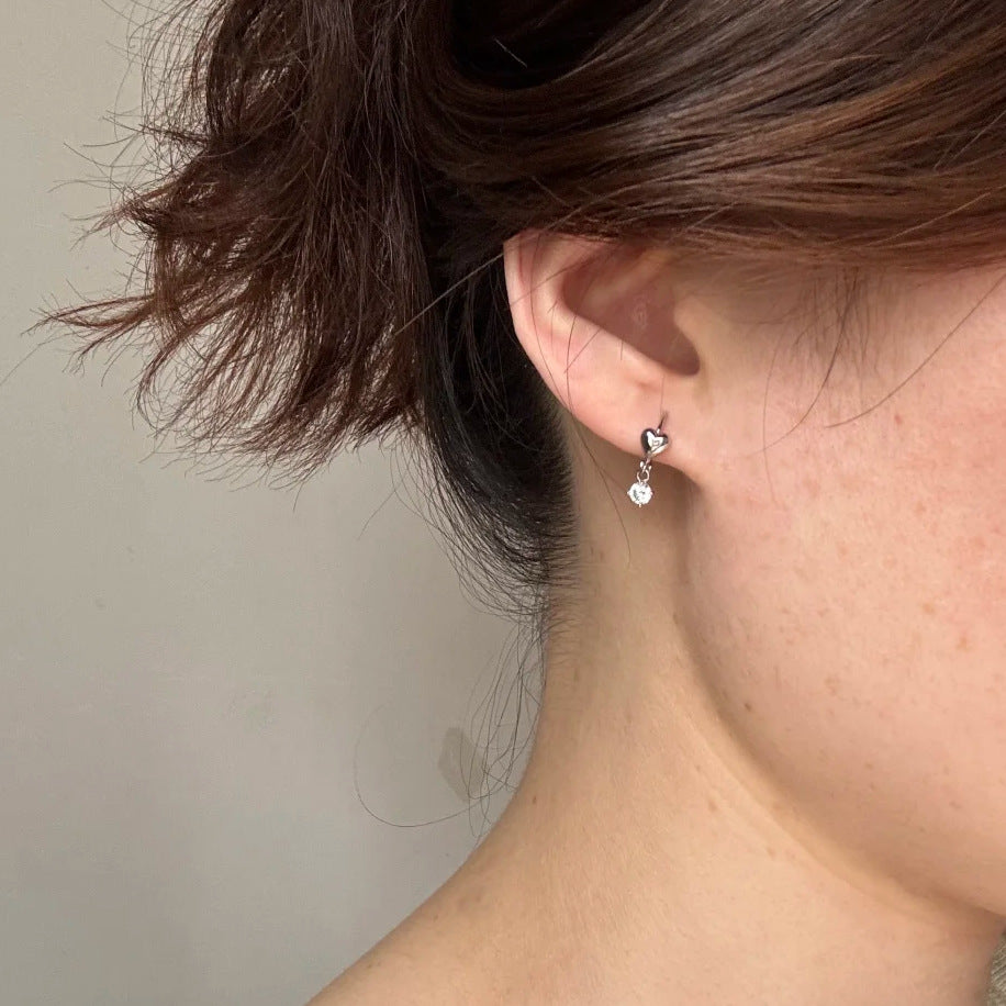 E廠【DQ11774E】S925純銀精緻小巧愛心閃鑽耳扣女簡約小眾高級感鋯石流蘇耳飾 26.01-1