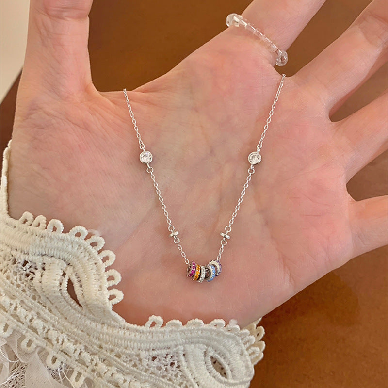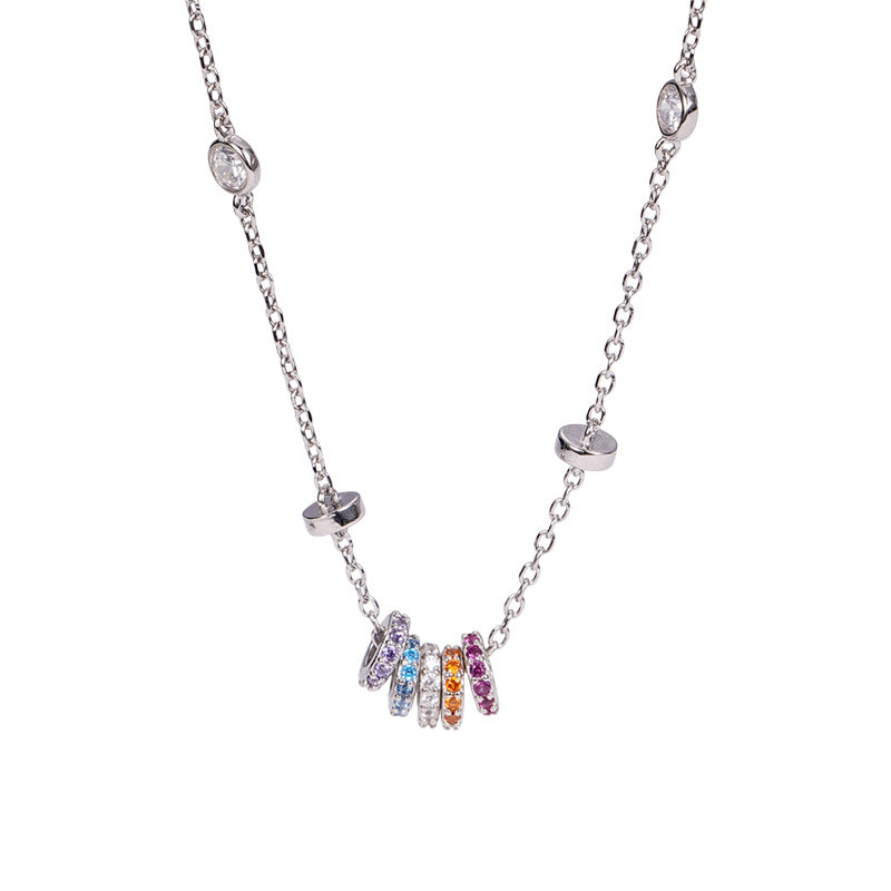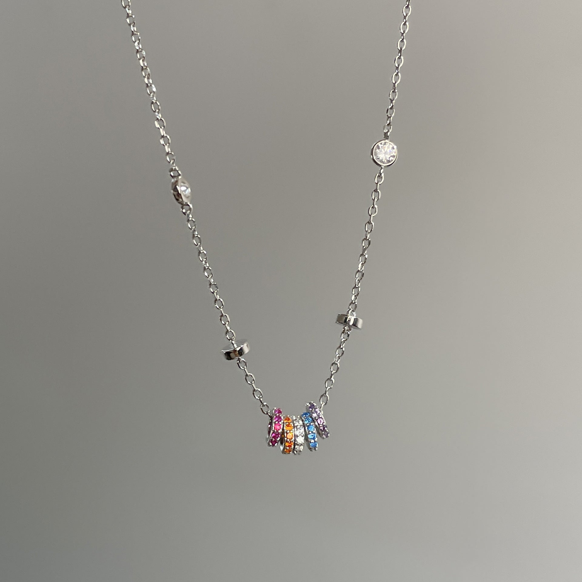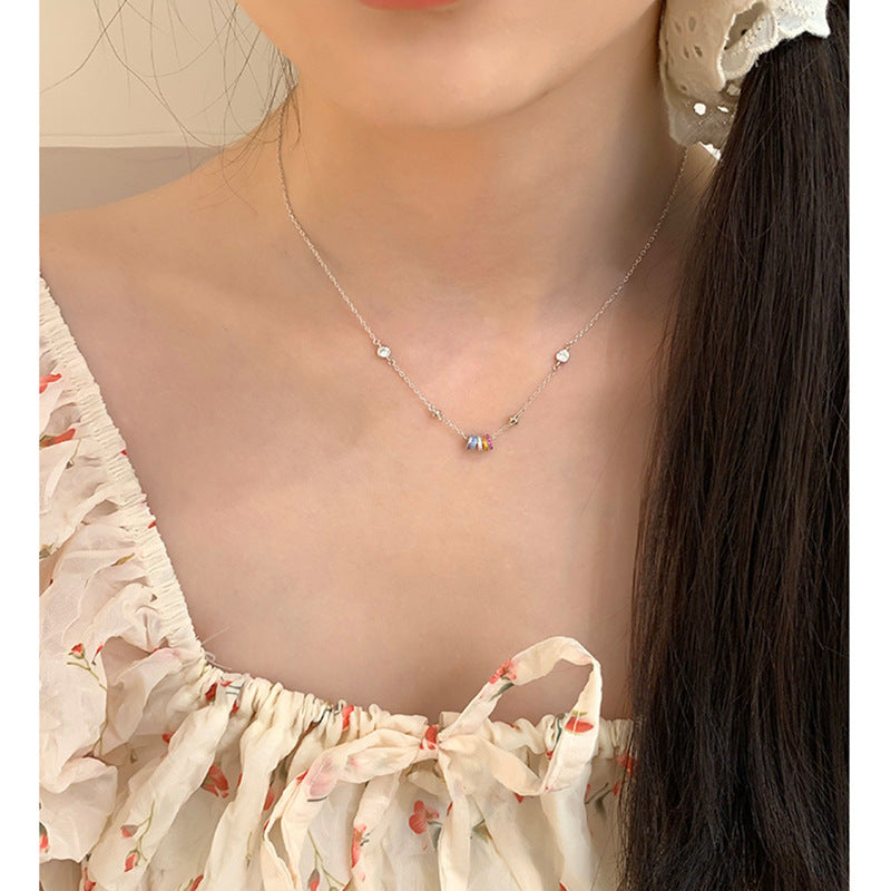 F廠【DQ1178N】時尚彩虹小蠻腰多層吊墜項鍊女S925純銀小眾設計路路通鎖骨鏈 25.09-3