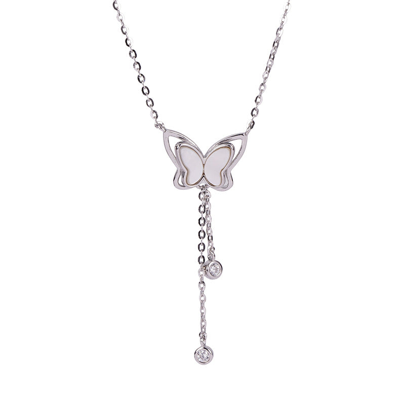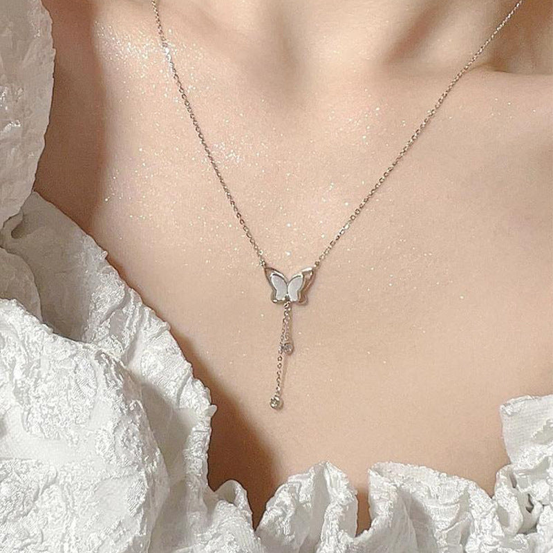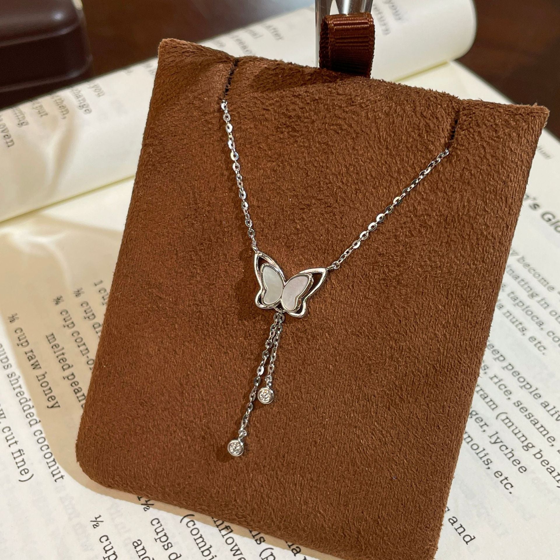 F廠【DQ1231N】S925純銀輕奢小眾貝殼蝴蝶項鍊女精緻氣質閃鋯流蘇ins鎖骨鏈 25.10-4
