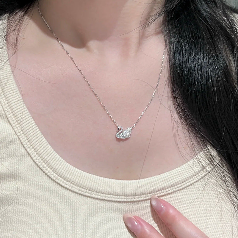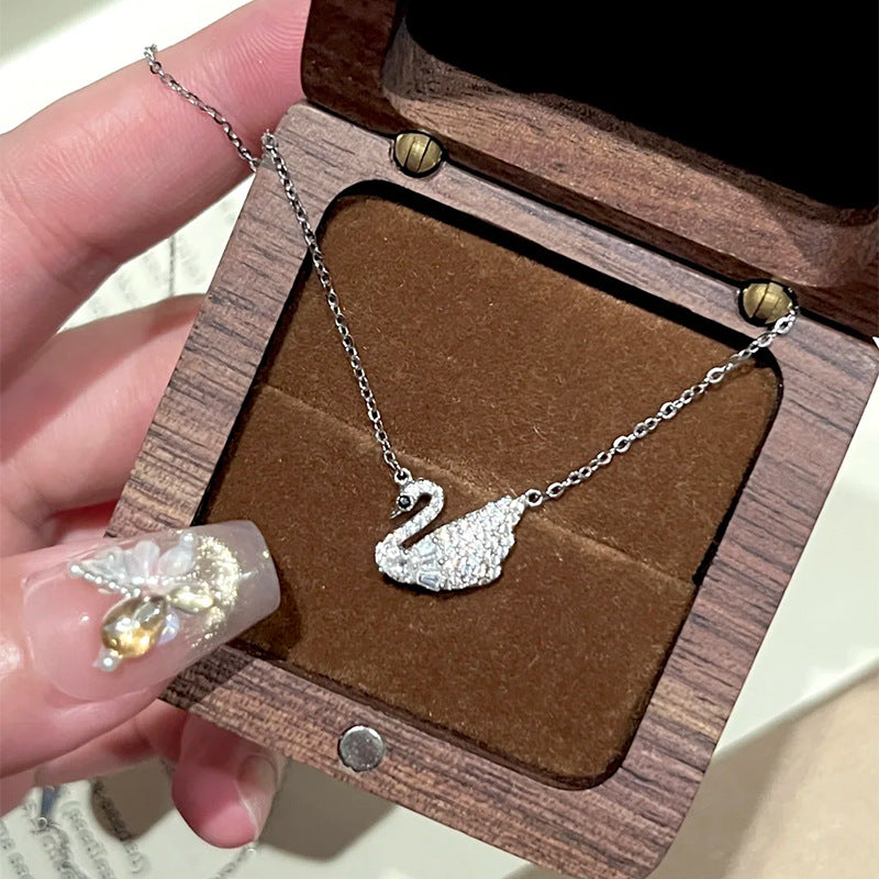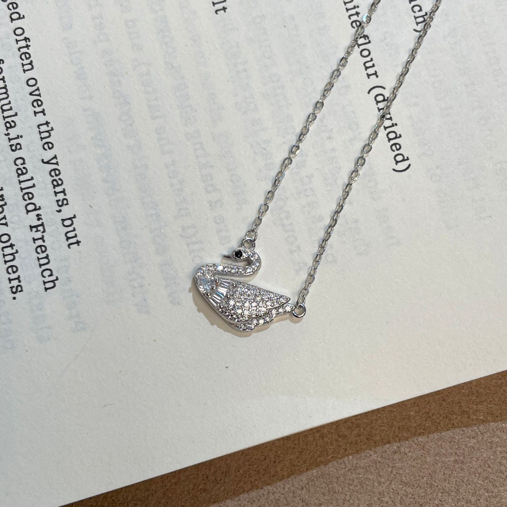 F廠【DQ1236N】S925純銀精緻溫柔白天鵝項鍊女輕奢氣質高級感滿鑽通勤鎖骨鏈 25.10-1