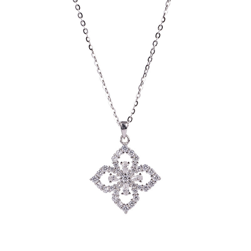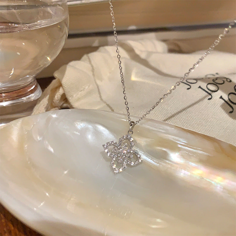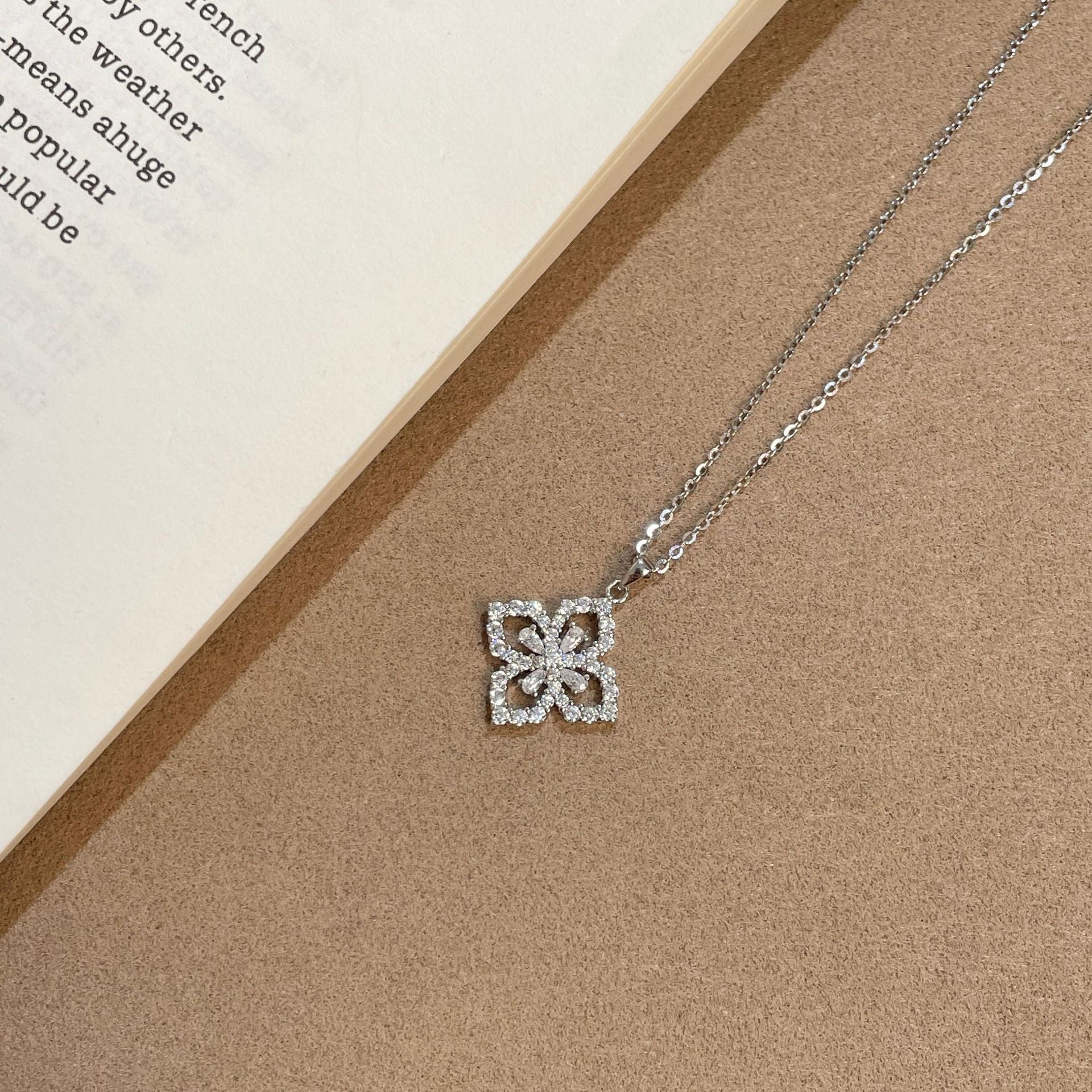 F廠【DQ1254N】S925純銀閃耀四葉草項鍊女輕奢高級感鋯石花朵氣質鎖骨鏈配件 25.10-1