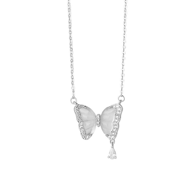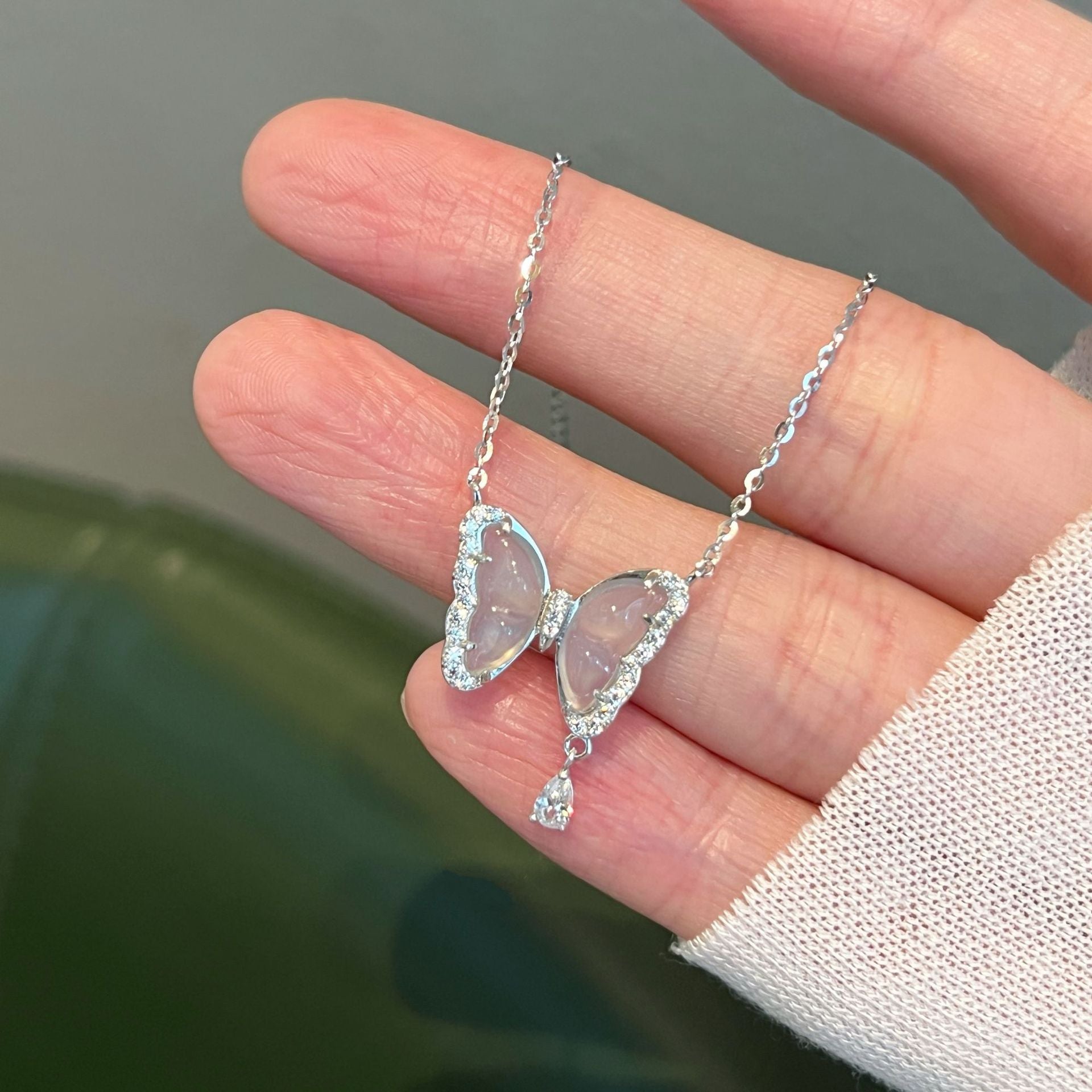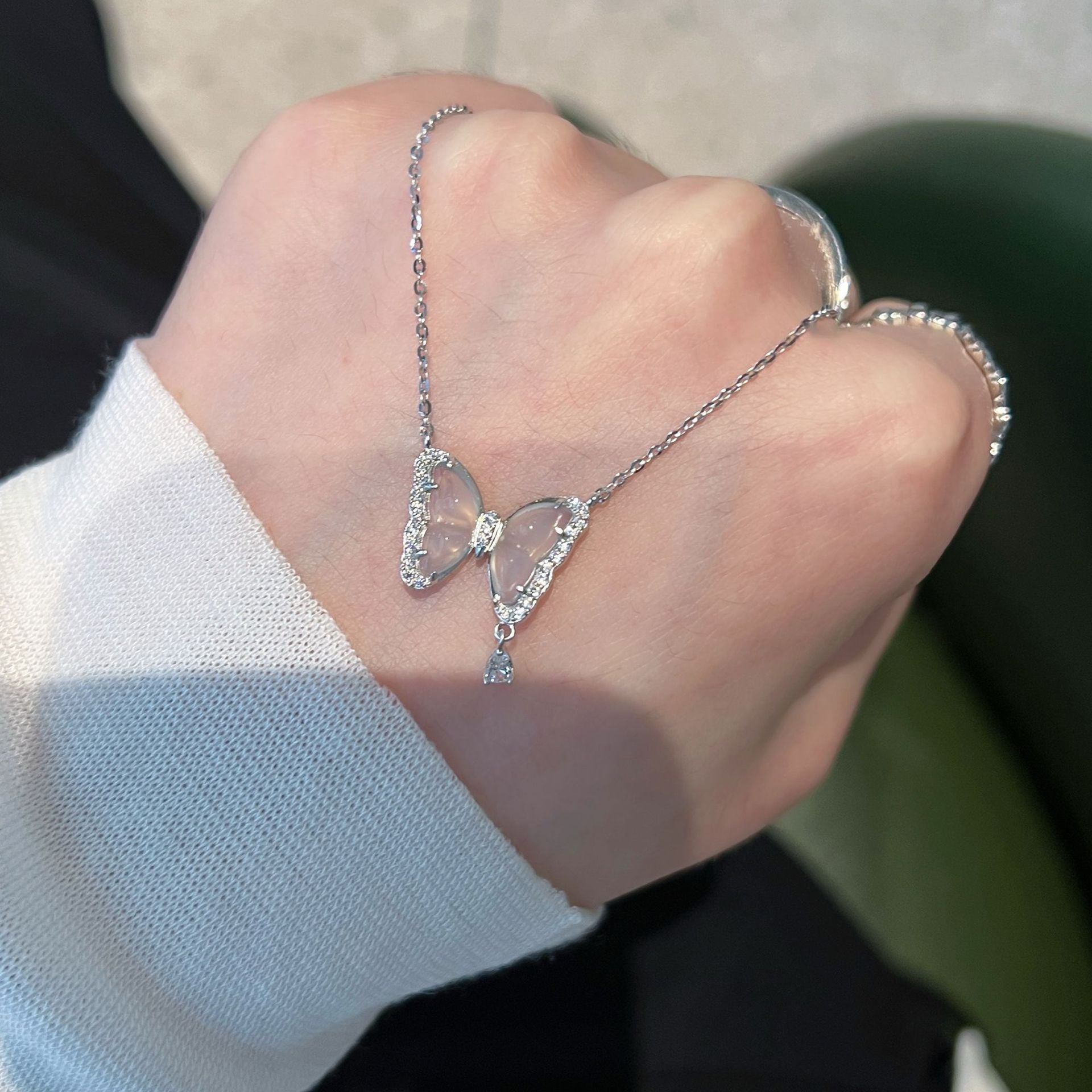 F廠【DQ1255N】新中式白玉髓蝴蝶項鍊女S925純銀輕奢高級感冰透鎖骨鏈潮 25.10-1