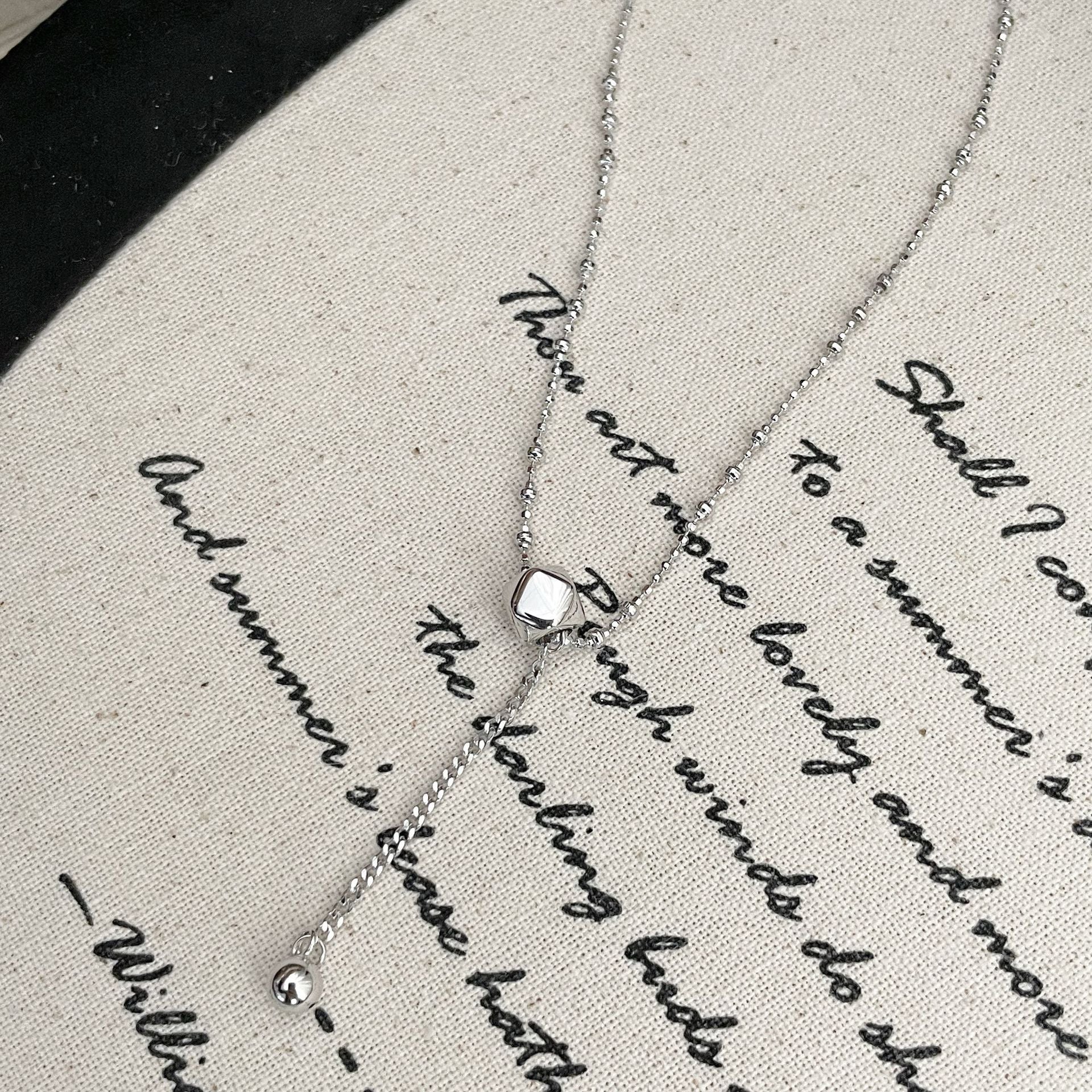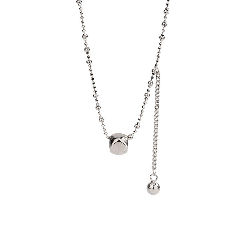 F廠【DQ1289N】S925純銀冷淡風立體菱形流蘇項鍊女不規則感圓珠鏈百搭鎖骨鏈 25.04-3