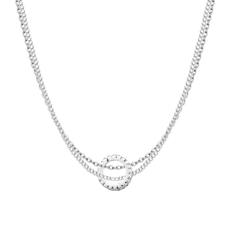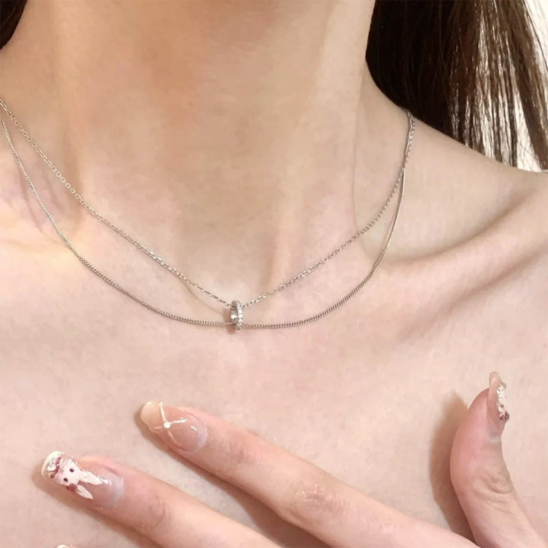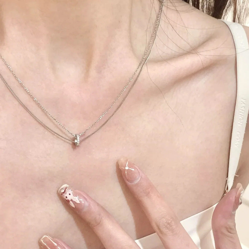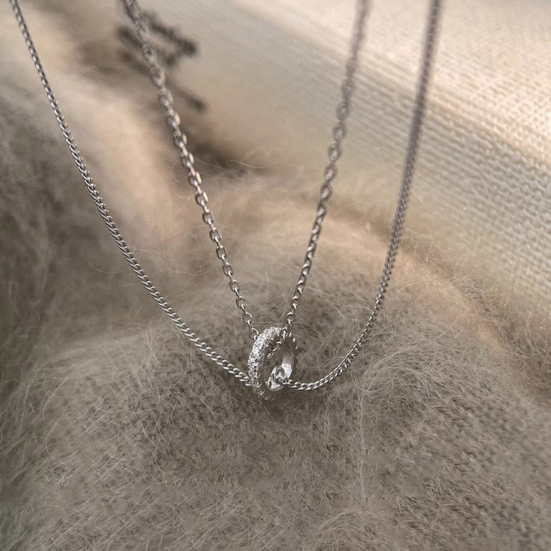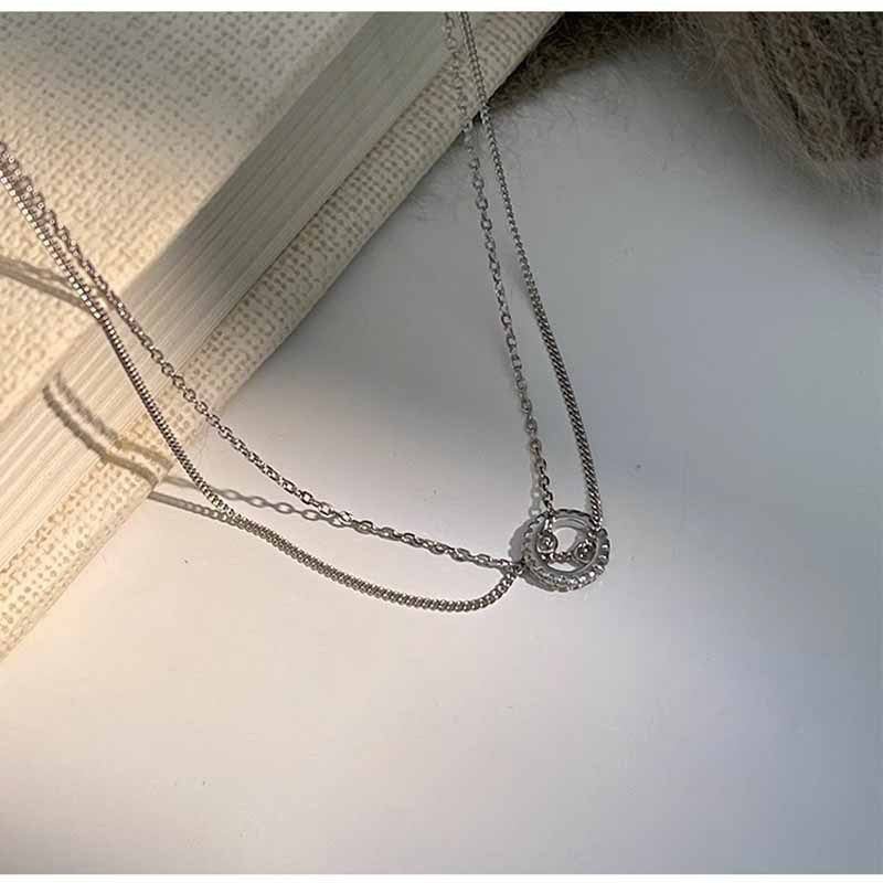F廠【DQ1313N】冷淡風簡約雙層疊戴項鍊女S925純銀小眾設計鑲鑽圓環鎖骨鏈潮 25.06-2