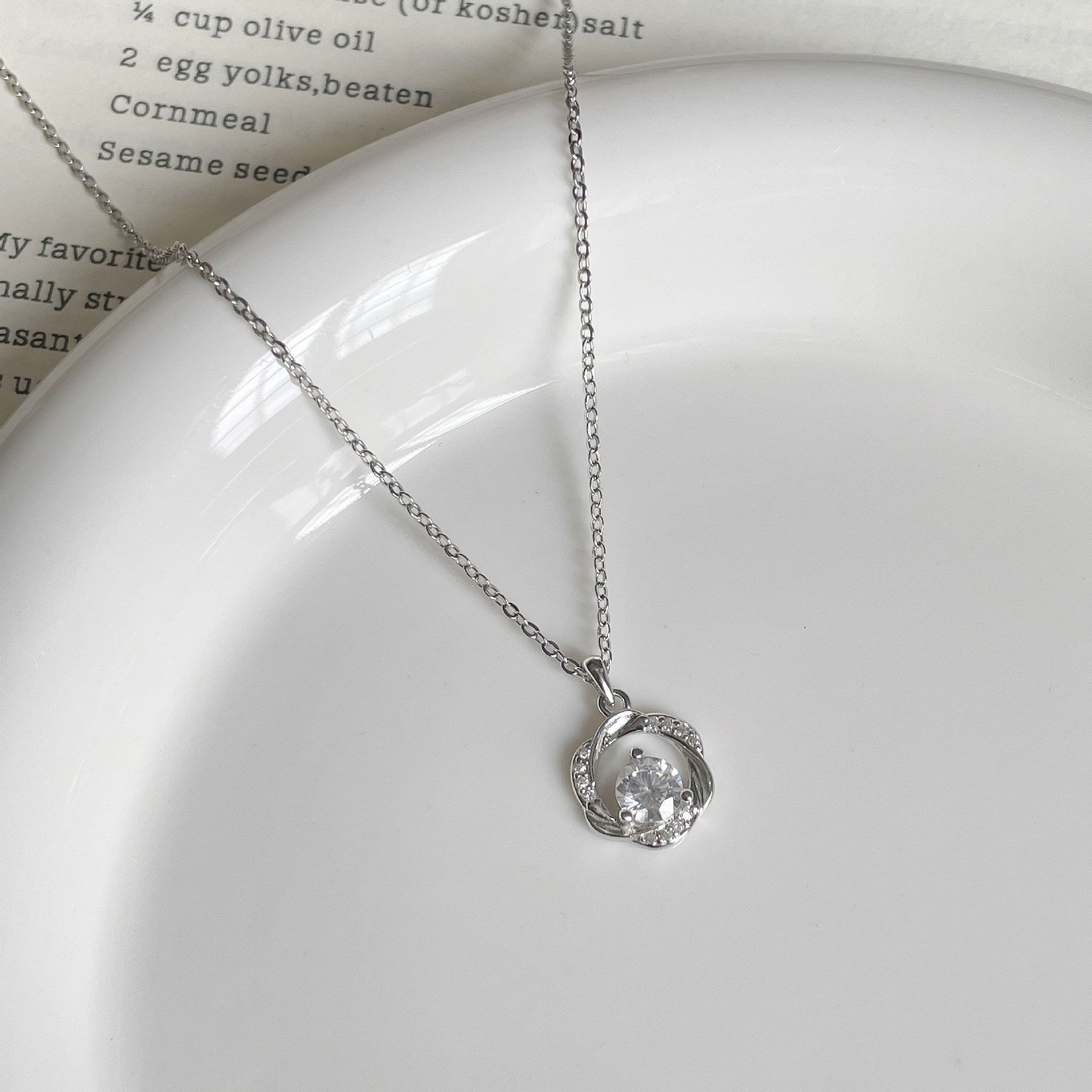 F廠【DQ1342N】S999足銀莫比烏斯環閃鑽項鍊女小眾輕奢高級感鋯石純銀鎖骨鏈 25.04-4
