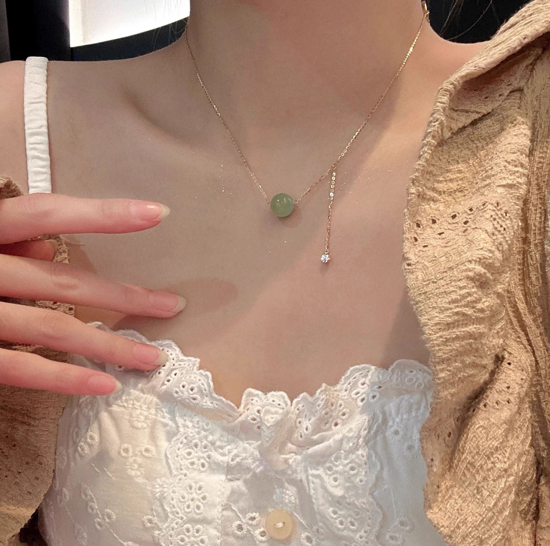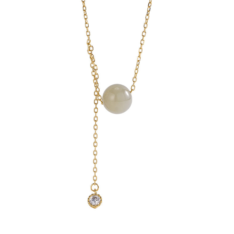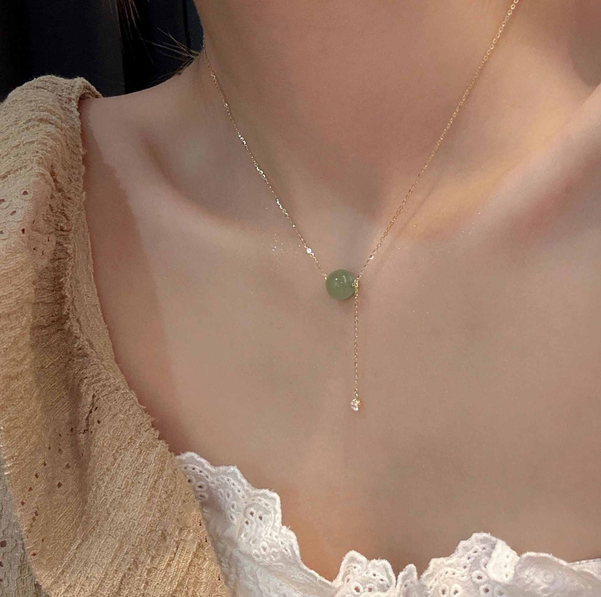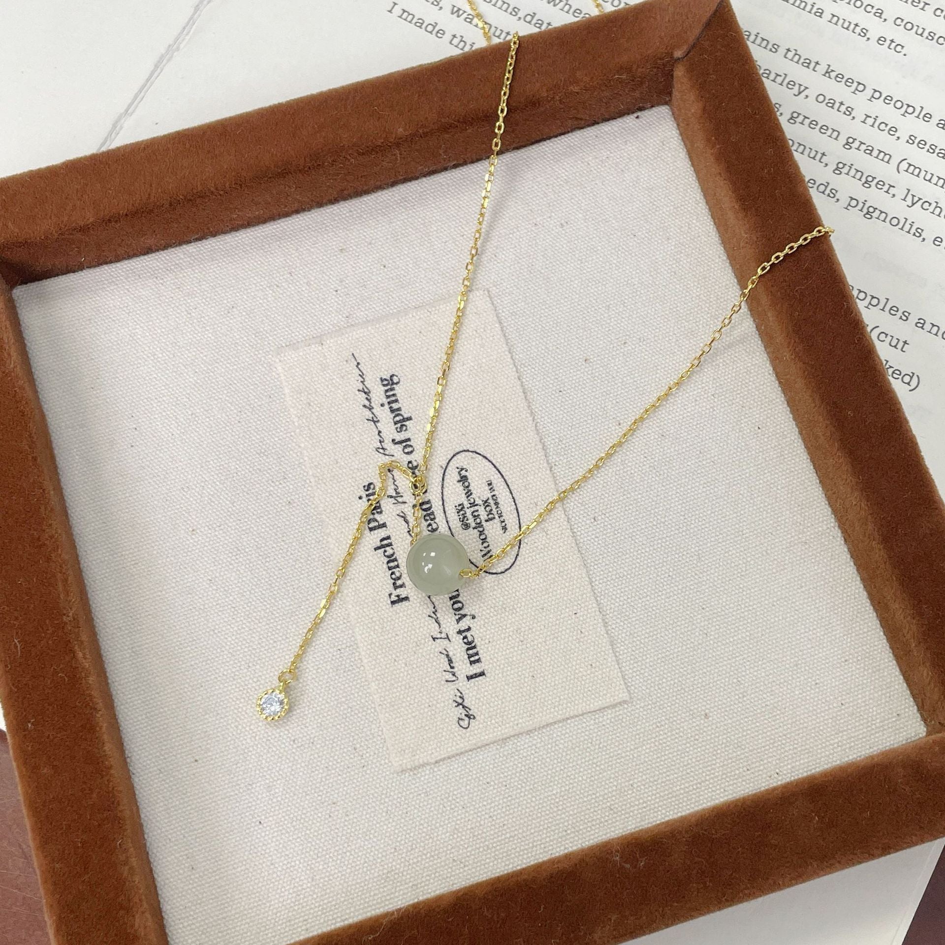 F廠【DQ1343N】S925純銀新中式天然與田玉項鍊女輕奢高級感路路通流蘇鎖骨鏈 25.06-3
