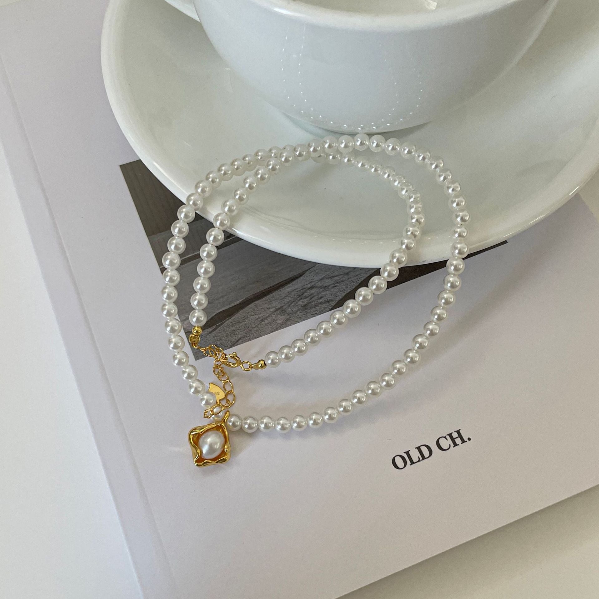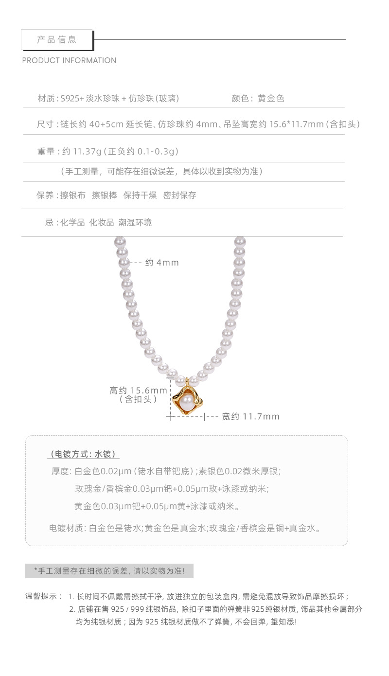 F廠【DQ1375N】法式高級感仿珍珠項鍊女S925純銀不規則淡水珍珠吊墜鎖骨鏈潮 25.10-2