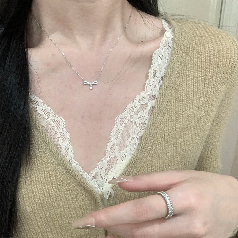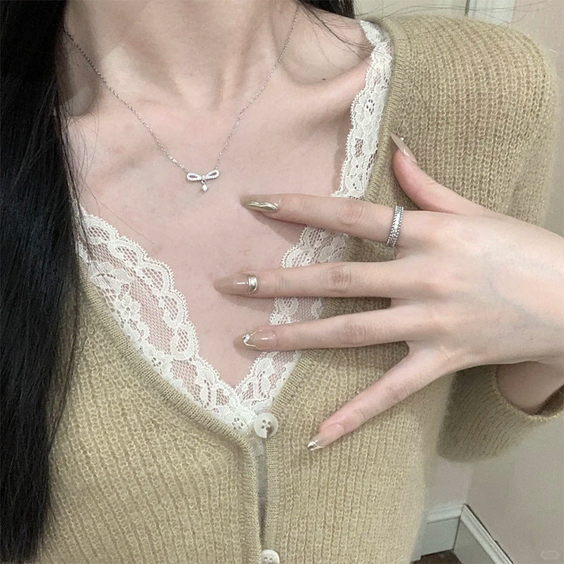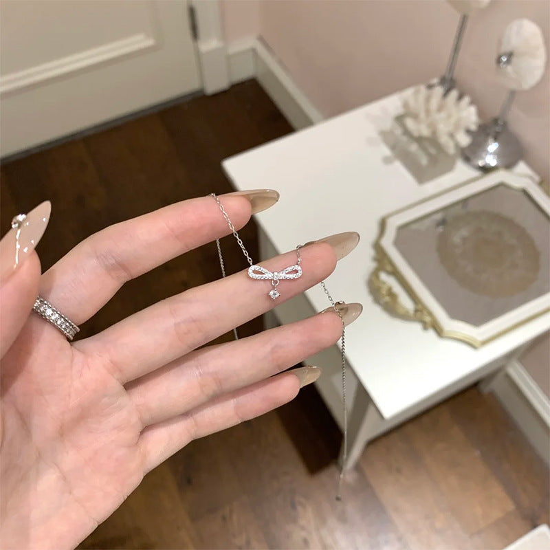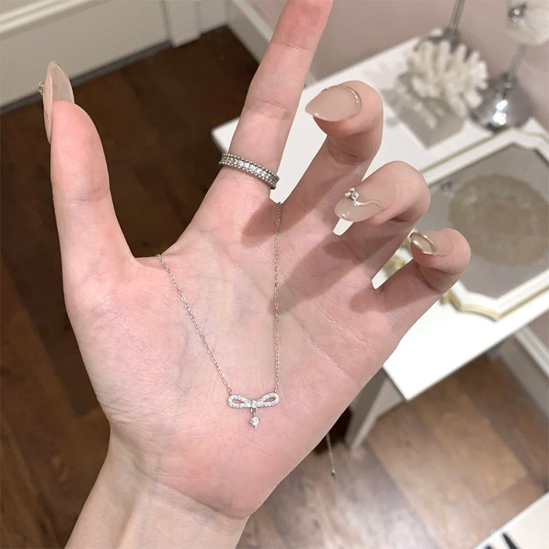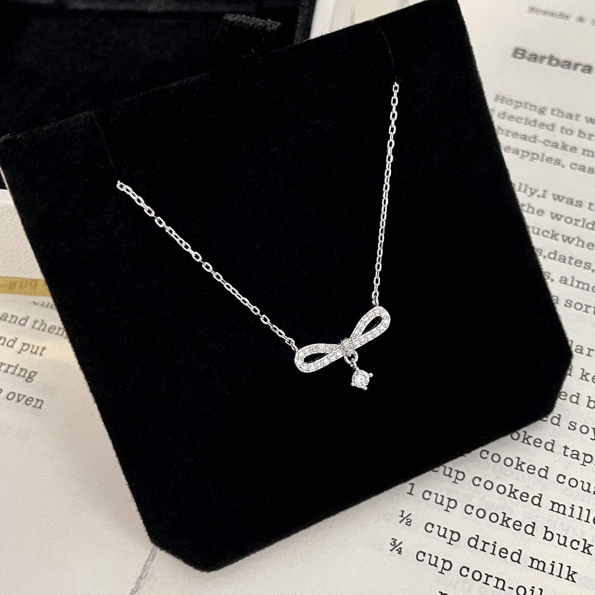 F廠【DQ1439N】S925純銀韓系簡約蝴蝶結鋯石項鍊女高級感氣質百搭鎖骨鏈 25.06-4