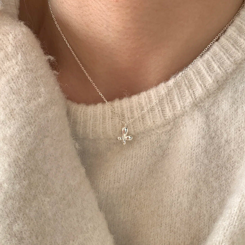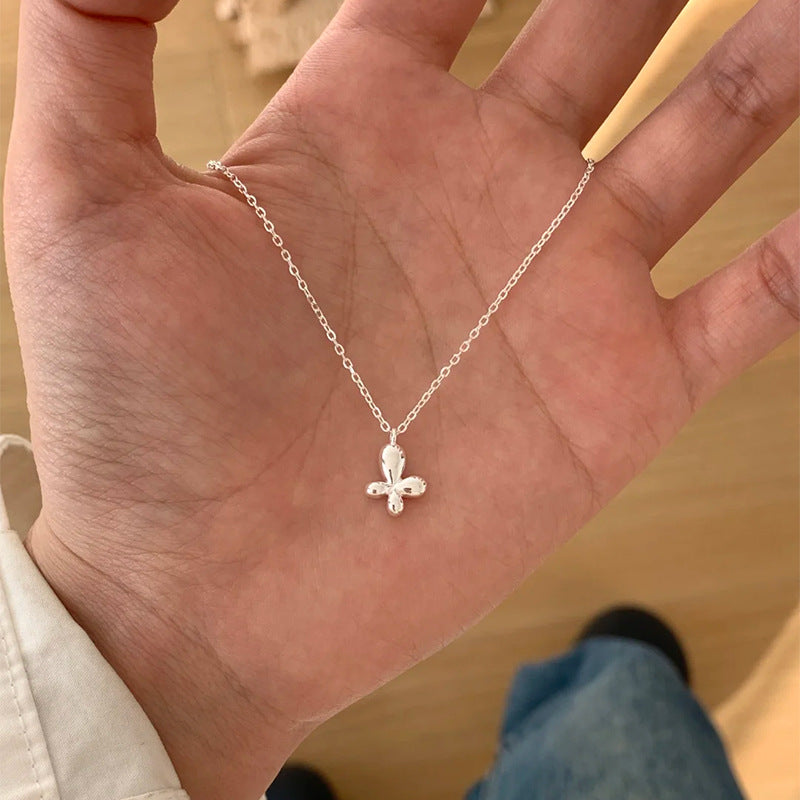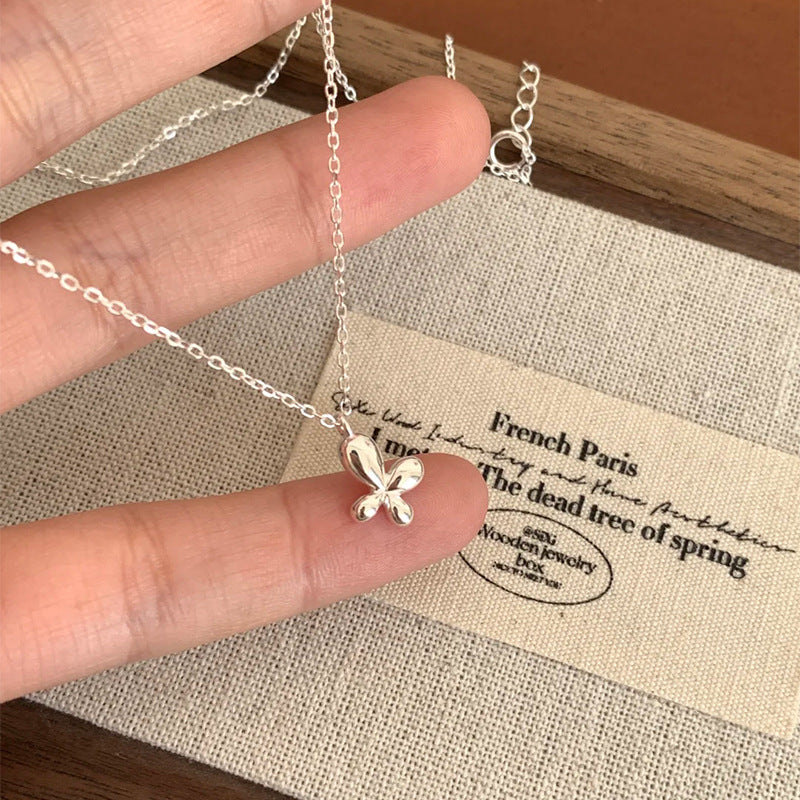 F廠【DQ1470N】足銀999精緻氣質四葉草項鍊女甜美時尚小蝴蝶百搭鎖骨鏈 25.05-2