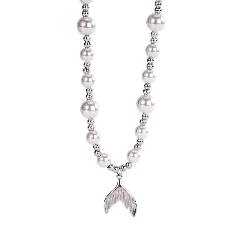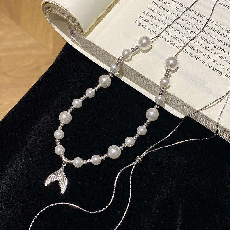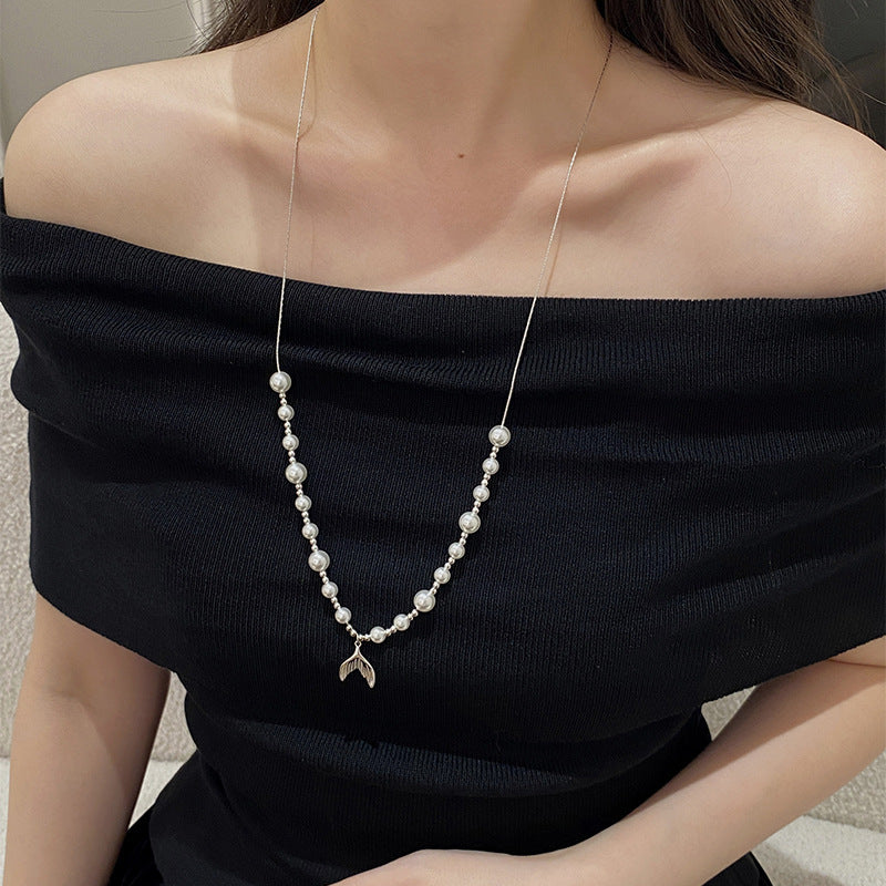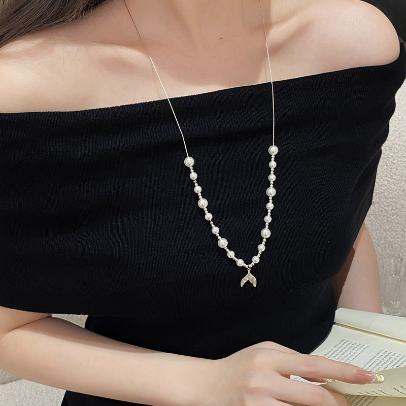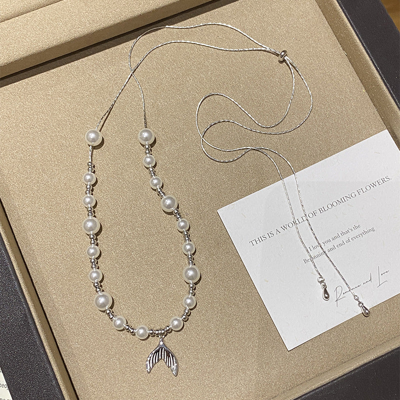 F廠【DQ1586N】法式復古仿珍珠項鍊女S925純銀高級感魚尾可調式毛衣鏈鎖骨鏈 25.09-3