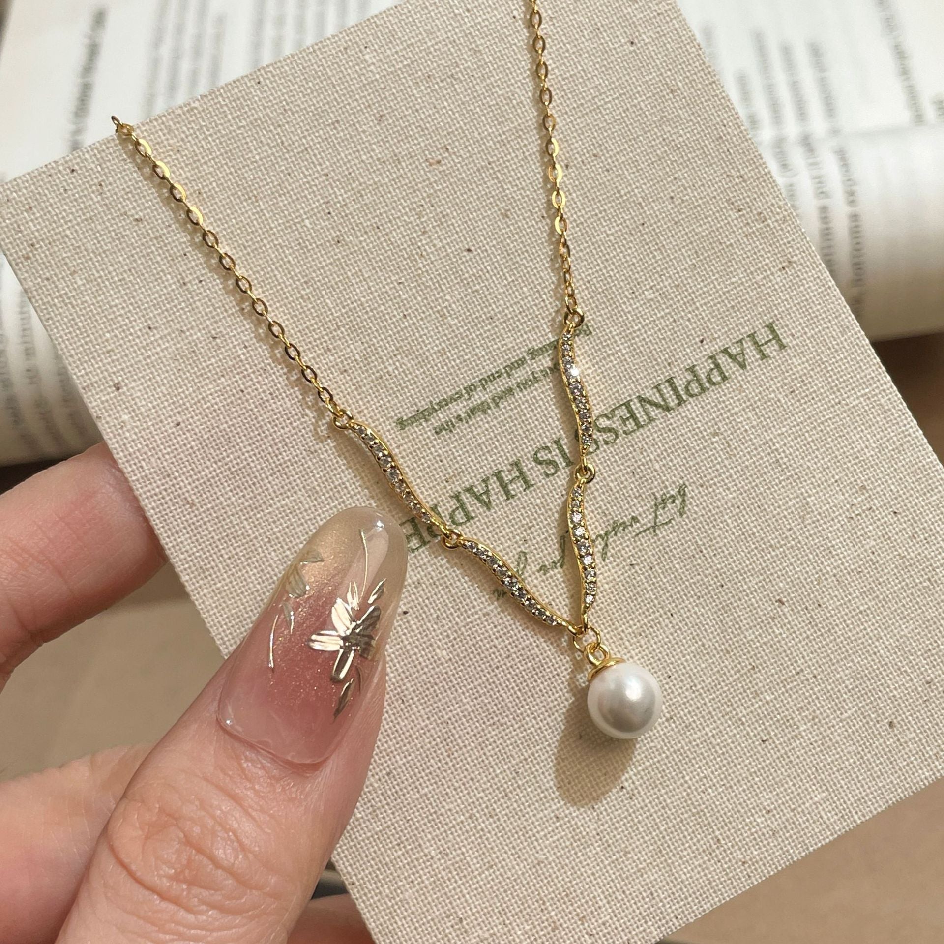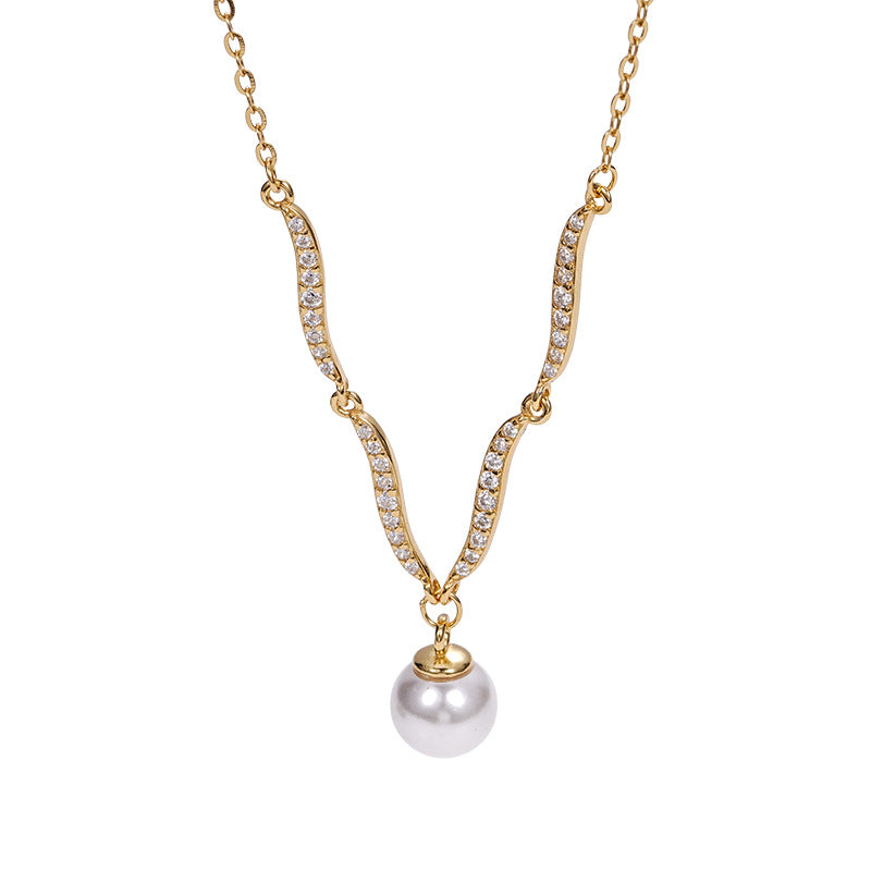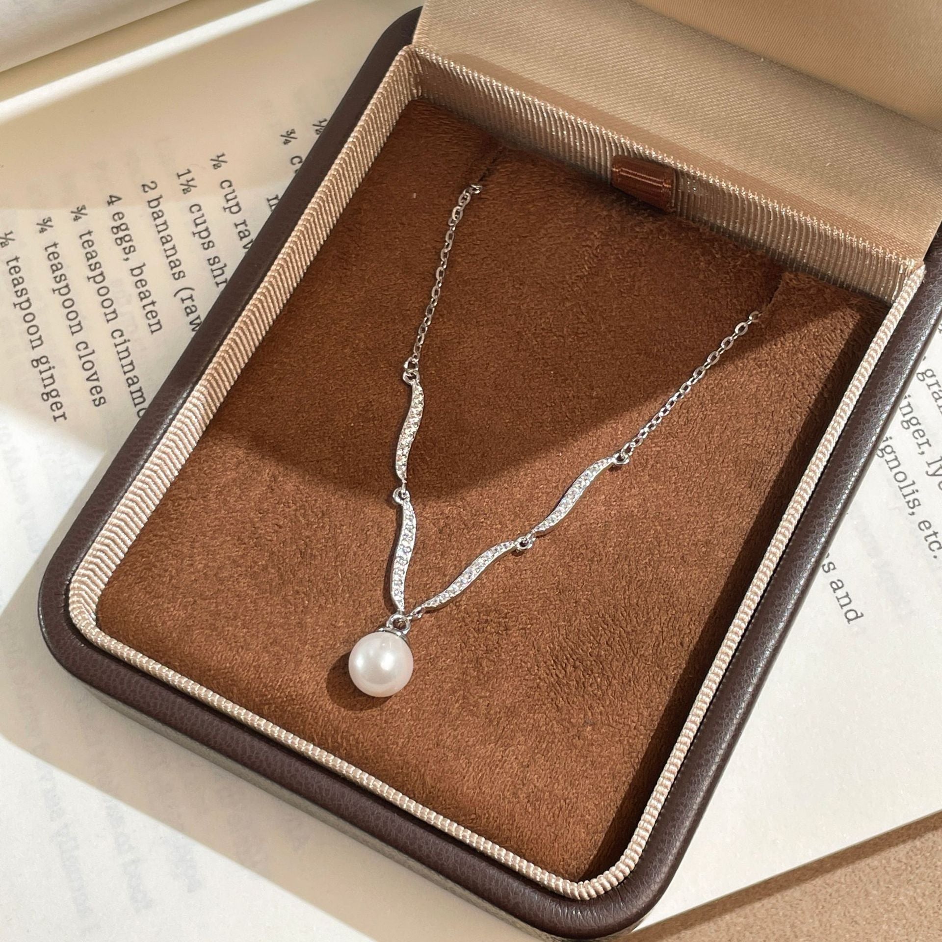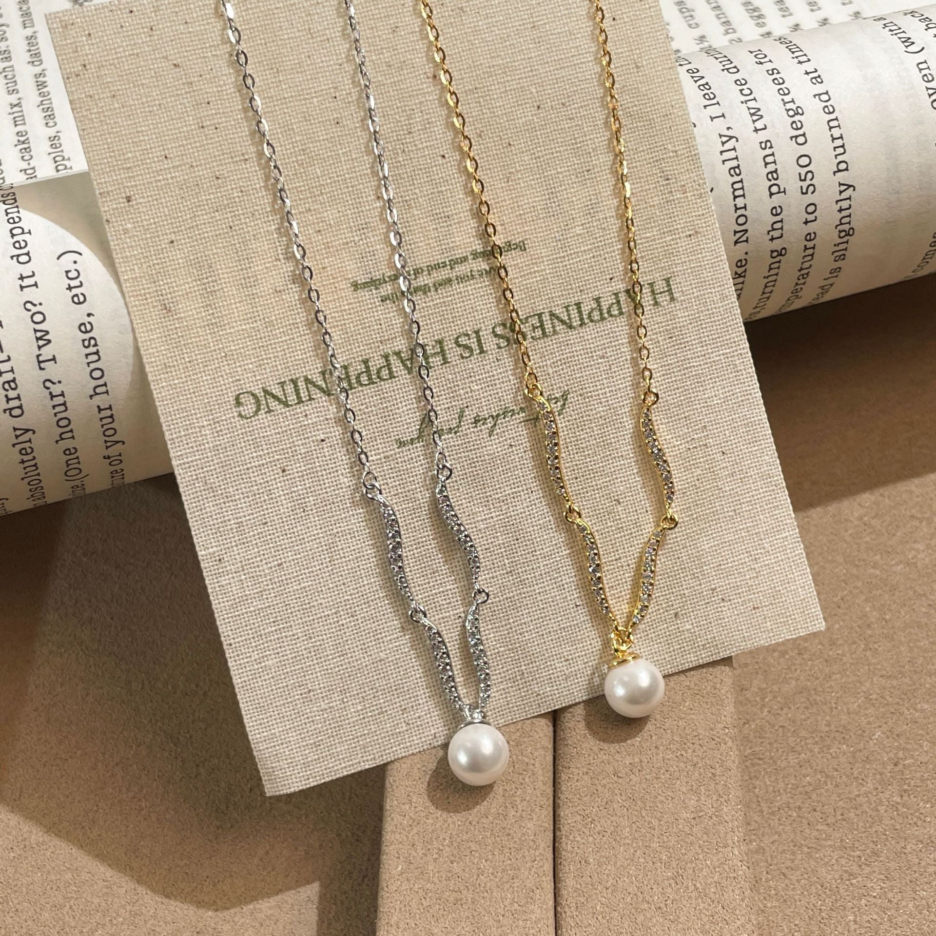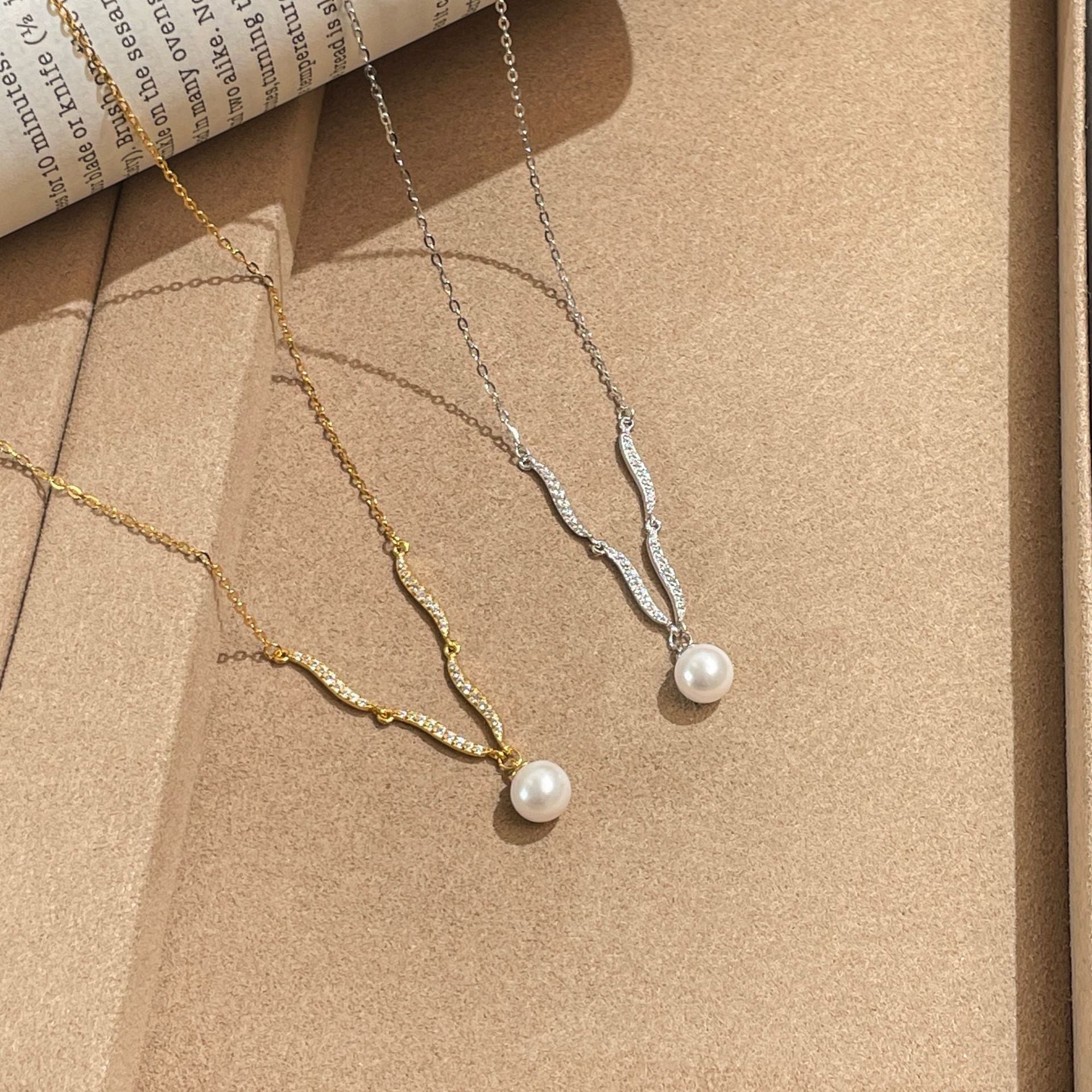 F廠【DQ1596N】波浪仿珍珠吊墜鎖骨鍊高級感輕奢小眾S925純銀項鍊女頸鍊配件 25.08-5