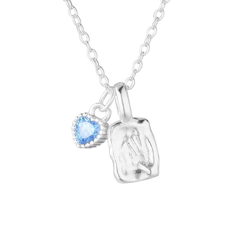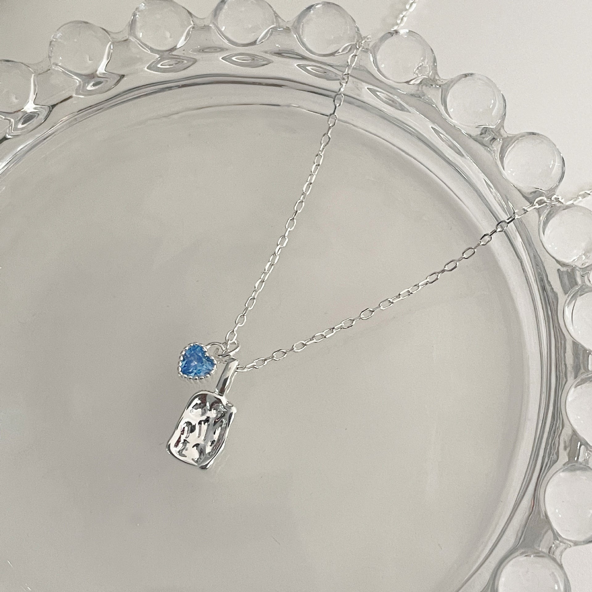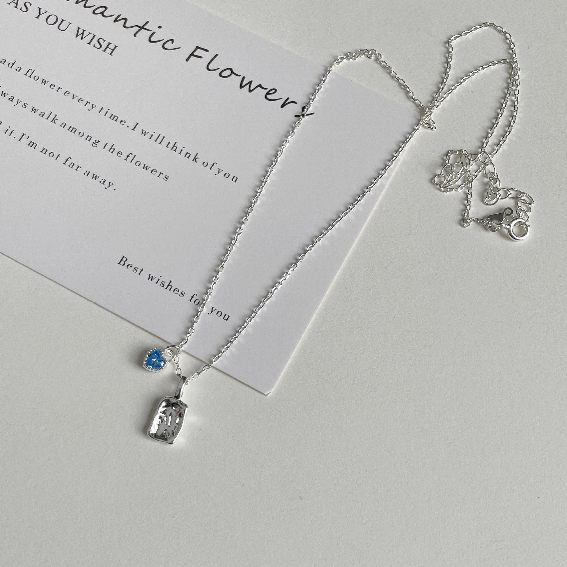 F廠【DQ1705N】簡約小眾不規則感紋理方牌項鍊女S925純銀愛心藍鋯鎖骨鏈ins 25.04-1