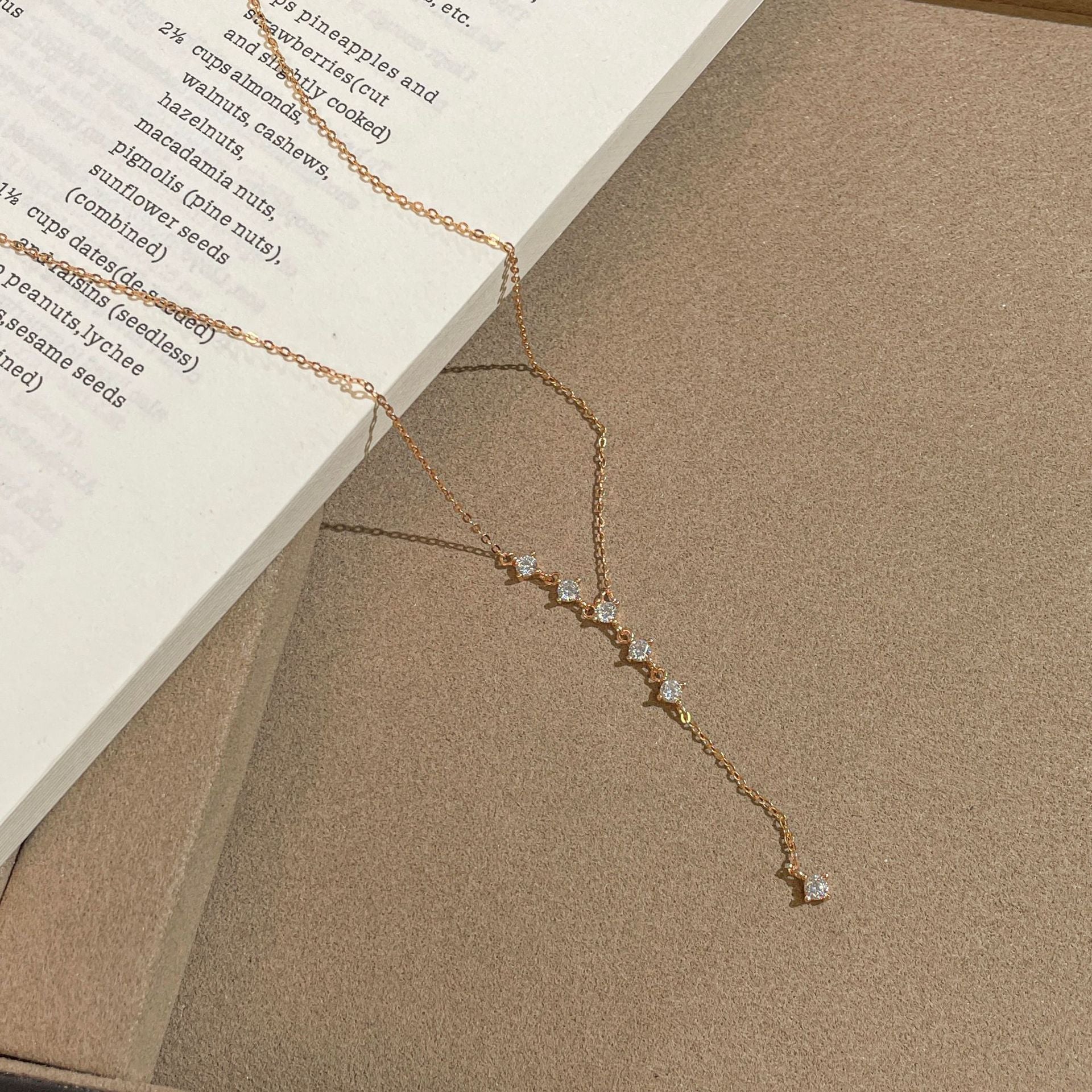 F廠【DQ1808N】S925純銀閃鑽Y字流蘇項鍊女輕奢小眾高級感鑲鋯石氣質鎖骨鏈 25.10-4