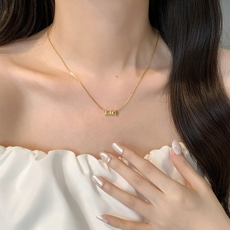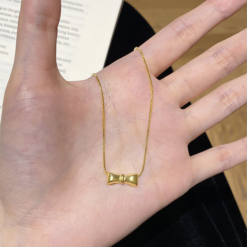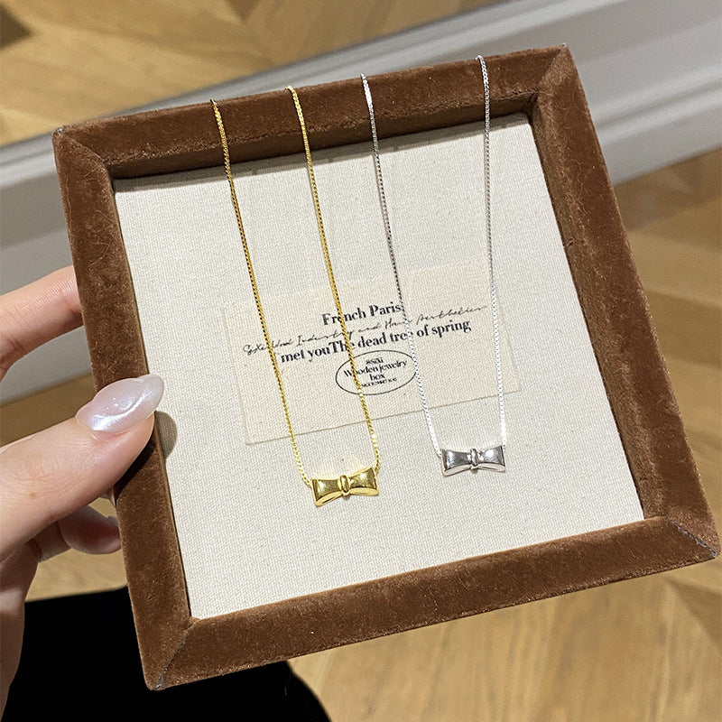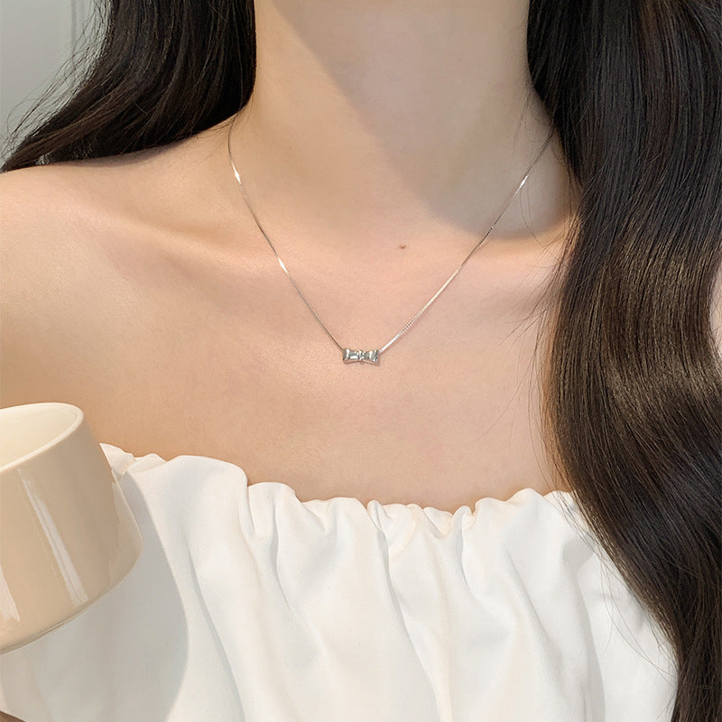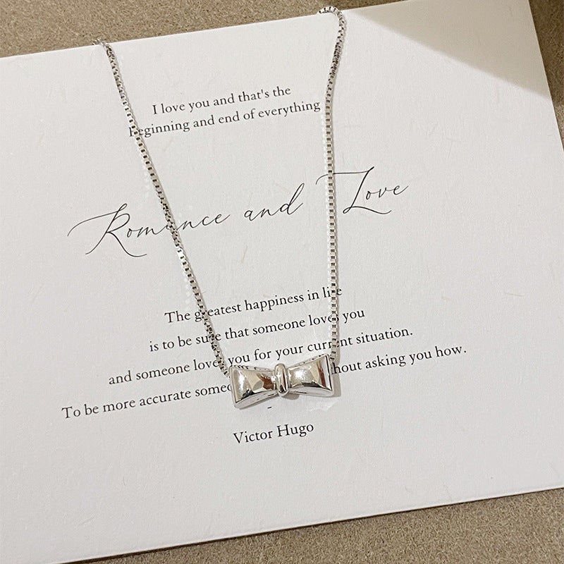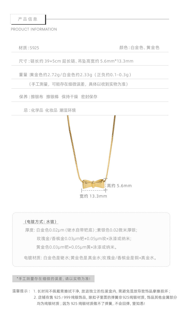 F廠【DQ1958N】S925純銀精緻簡約蝴蝶結項鍊女氣質高級設計感幾何鎖骨鏈 25.07-2