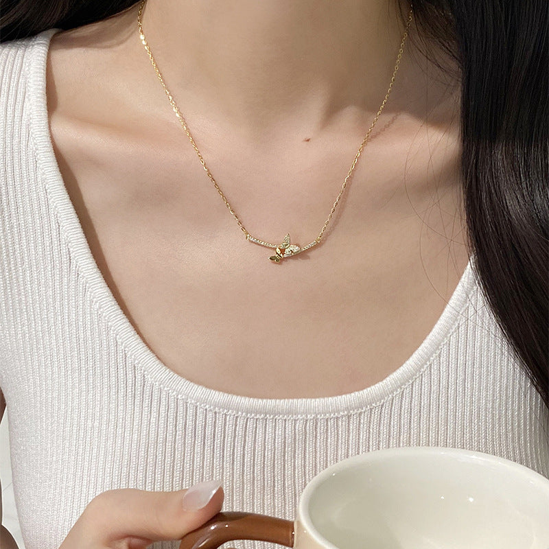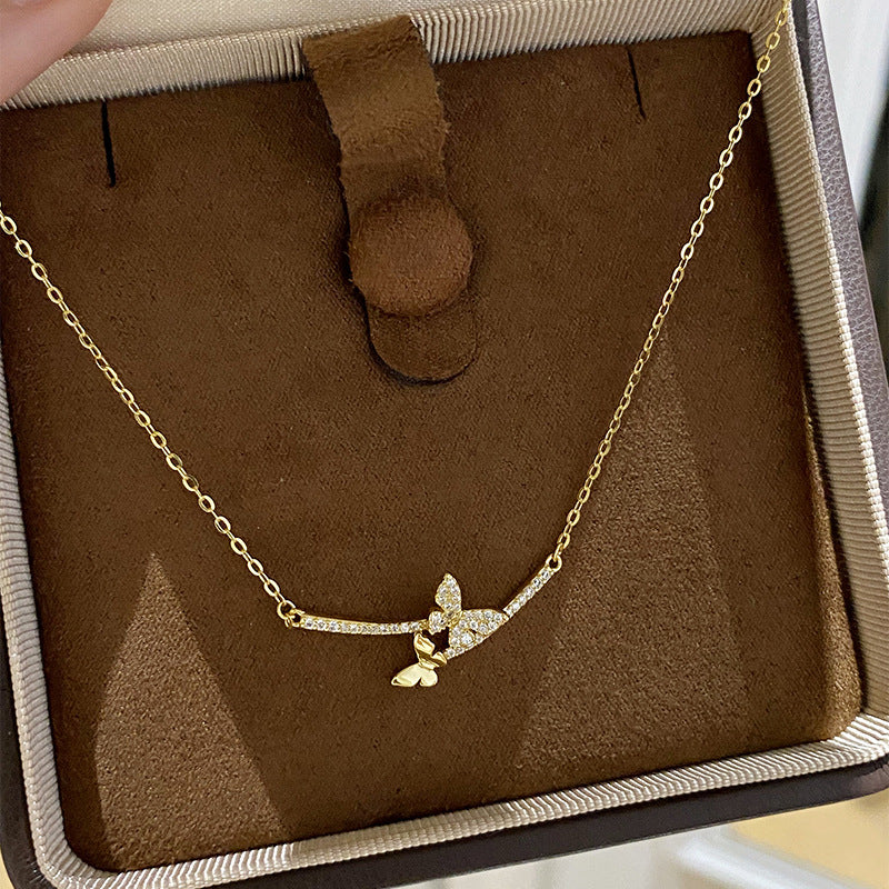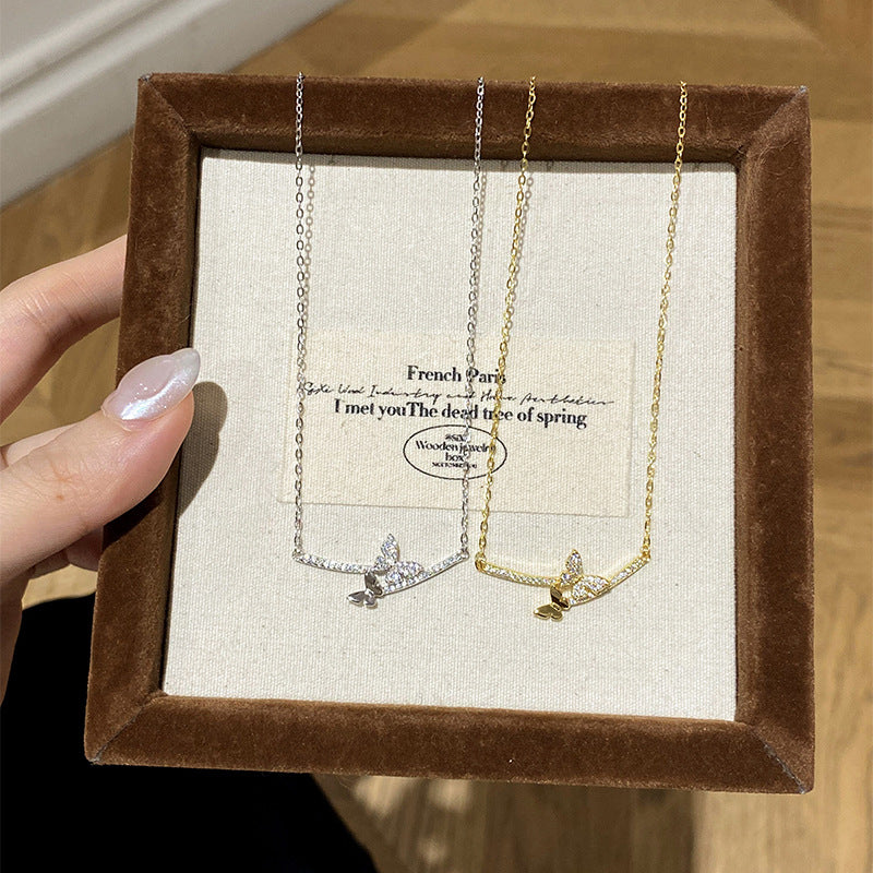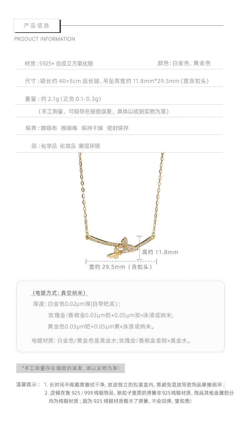 F廠【DQ1970N】韓版精緻微笑蝴蝶項鍊女S925純銀輕奢小眾微鑲百搭鎖骨鏈 25.06-2