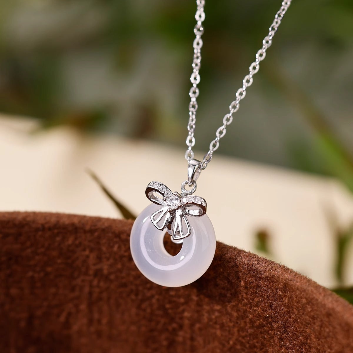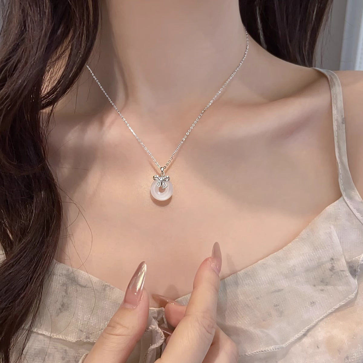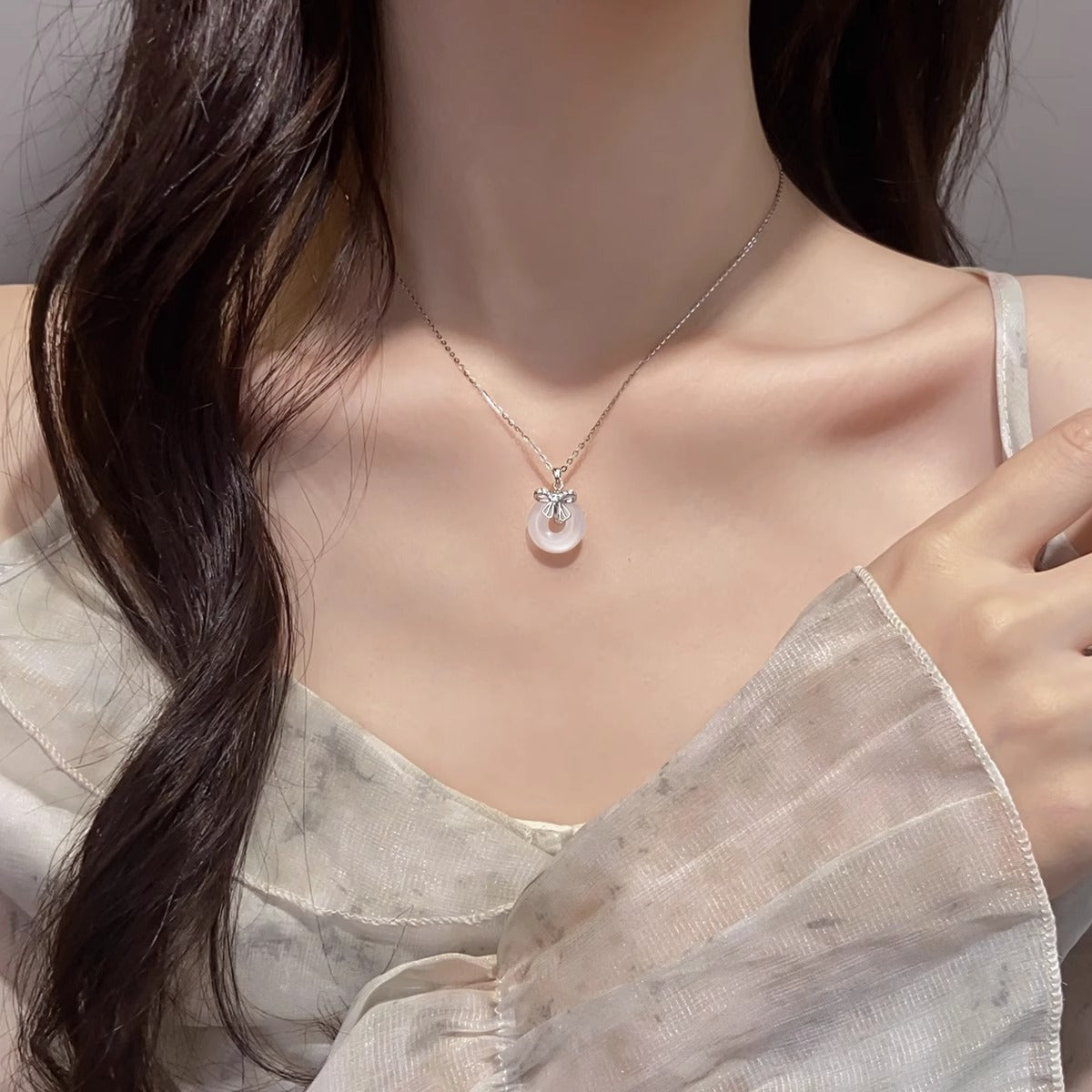 F廠【DQ1998N】足銀999新中式蝴蝶結平安扣項鍊女ins高級感白玉髓純銀鎖骨鏈 25.06-4