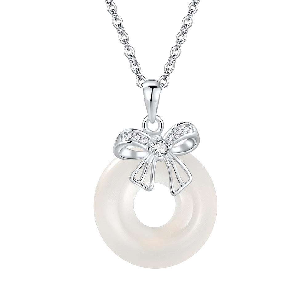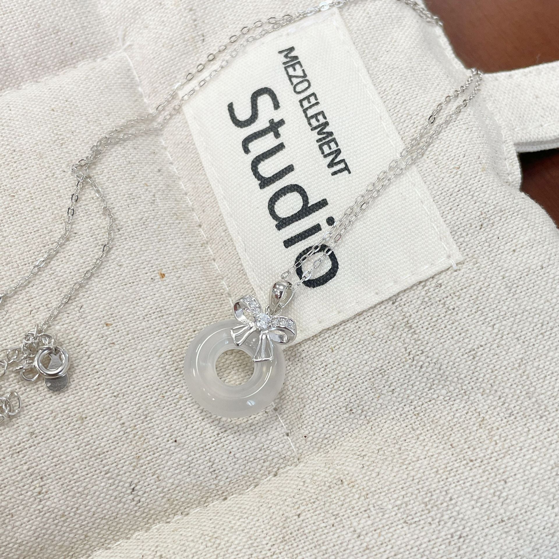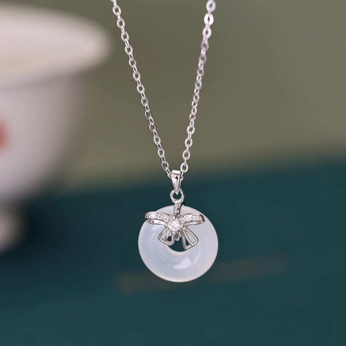 F廠【DQ1998N】足銀999新中式蝴蝶結平安扣項鍊女ins高級感白玉髓純銀鎖骨鏈 25.06-4