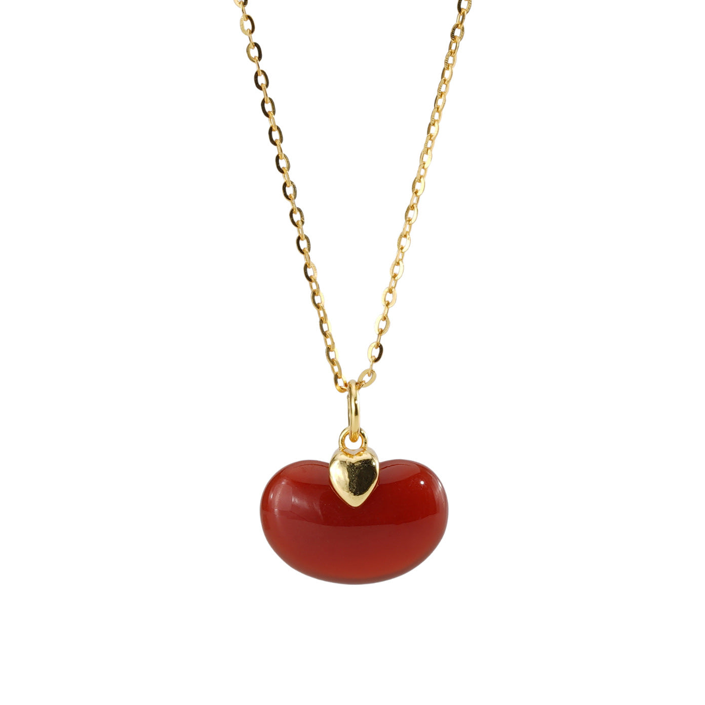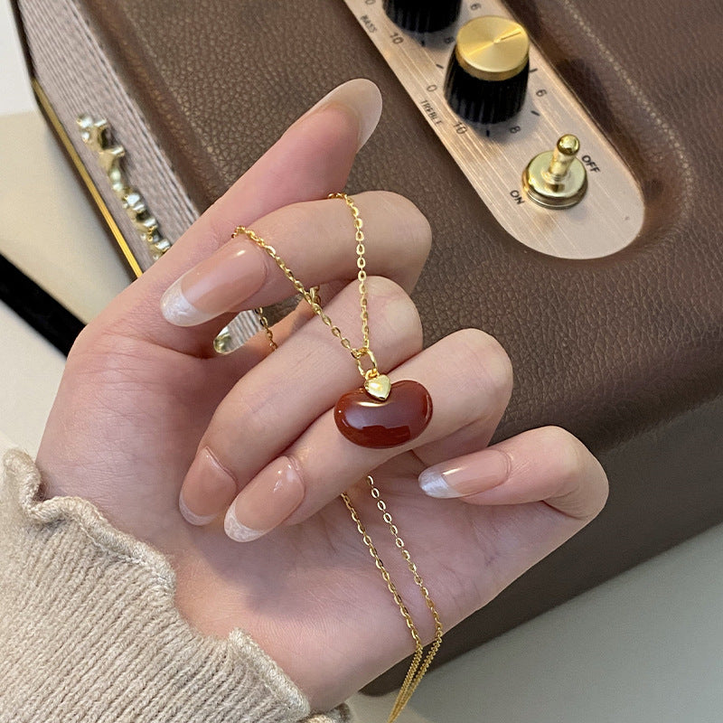 F廠【DQ2070N】S925純銀相思豆紅瑪瑙項鍊女氣質百搭ins紅豆復古鎖骨鏈 25.01-1