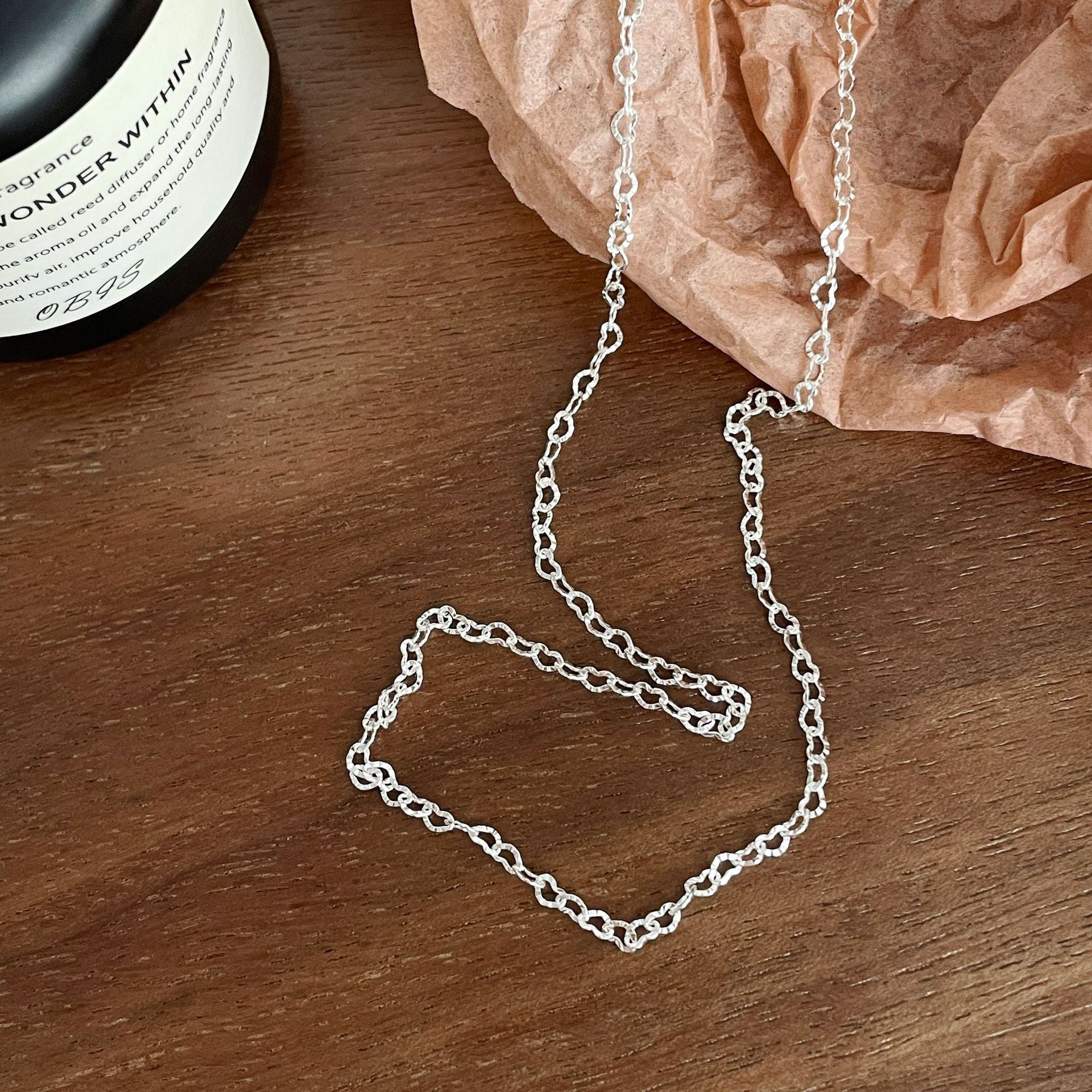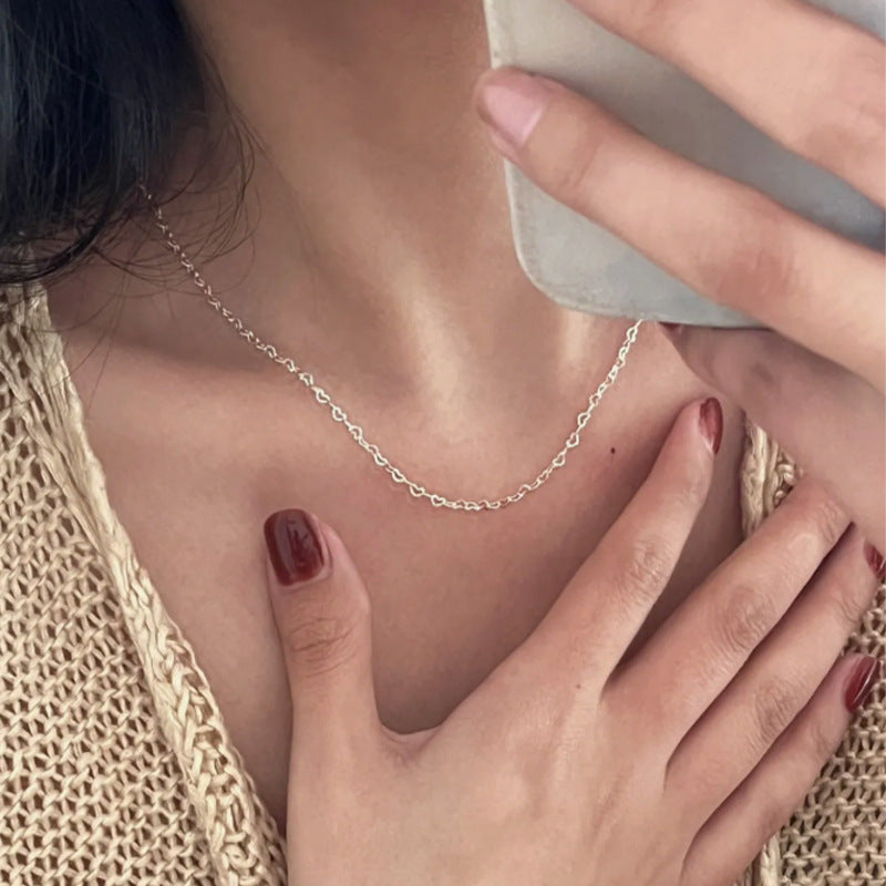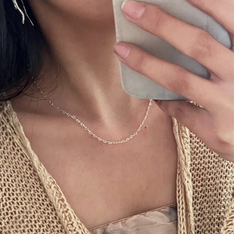 F廠【DQ2088N】足銀999小眾設計愛心項鍊女ins冷淡風素鏈鏤空心形拼接鎖骨鏈 25.03-1