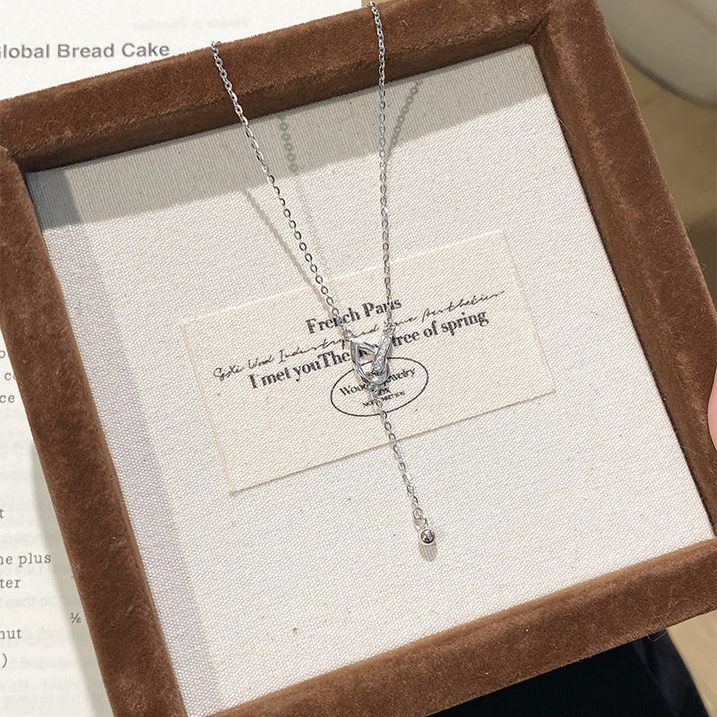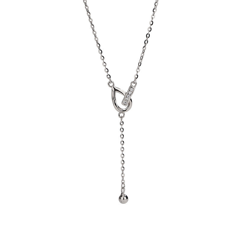F廠【DQ2096N】S925純銀時尚氣質水滴環扣項鍊女高級感圓珠流蘇鎖骨鏈潮 25.05-3