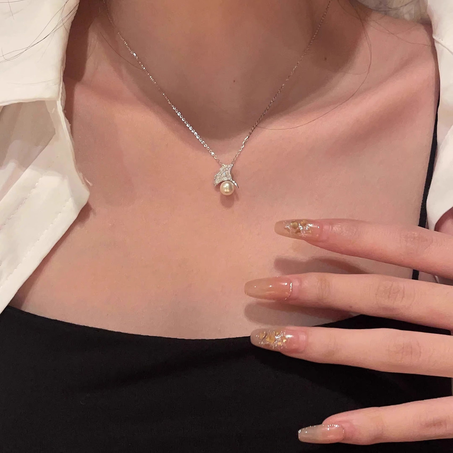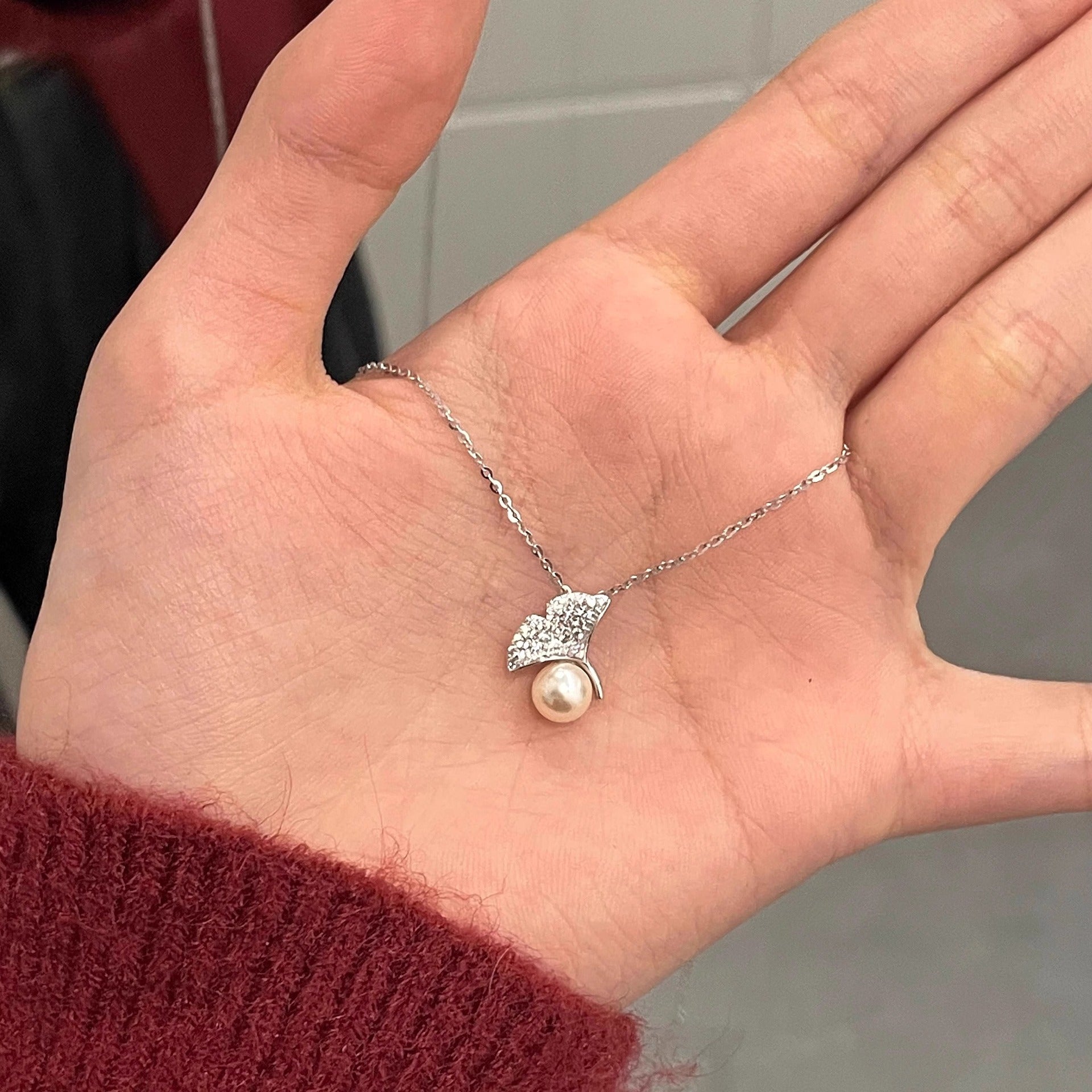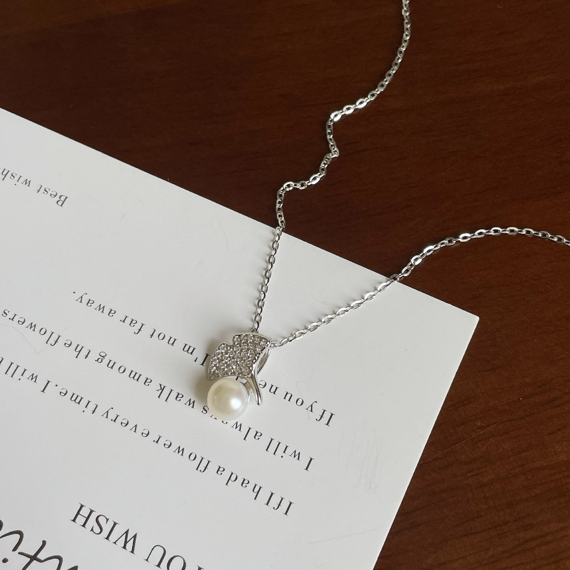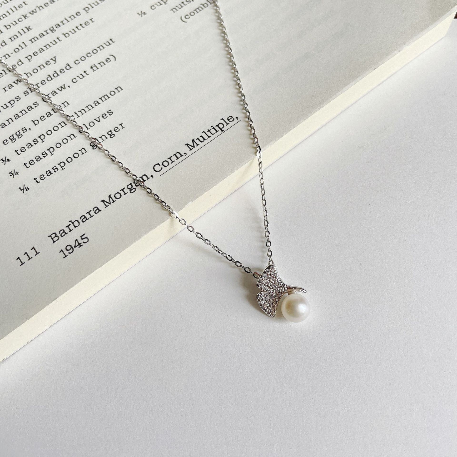 F廠【DQ2103N】小眾高級感銀杏葉淡水珍珠項鍊女S925純銀時尚氣質鎖骨鏈 25.04-2