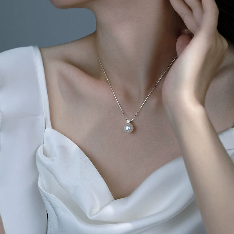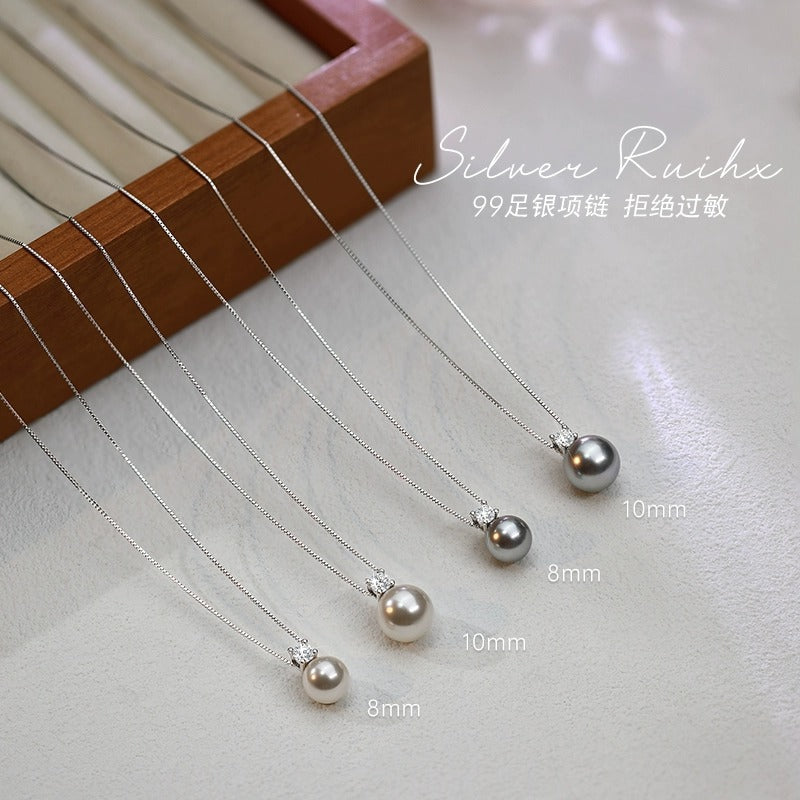 F廠【DQ2125N】S999足銀戴妃珍珠項鍊女正圓輕奢高級感單顆仿施家珍珠鎖骨鏈 25.01-1