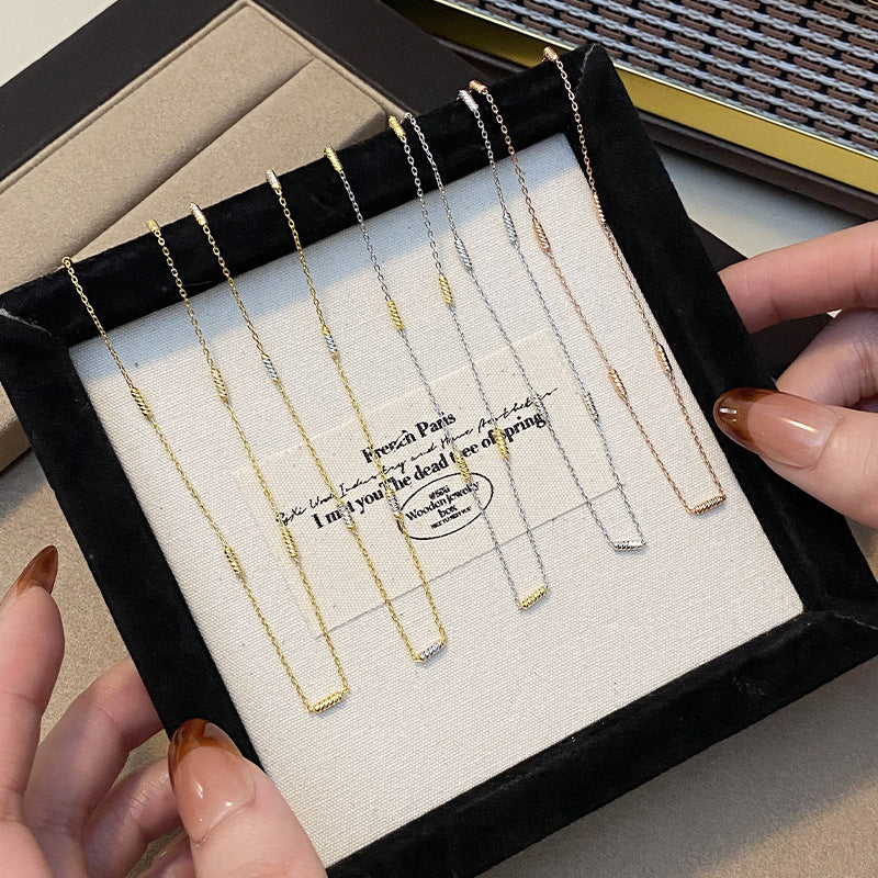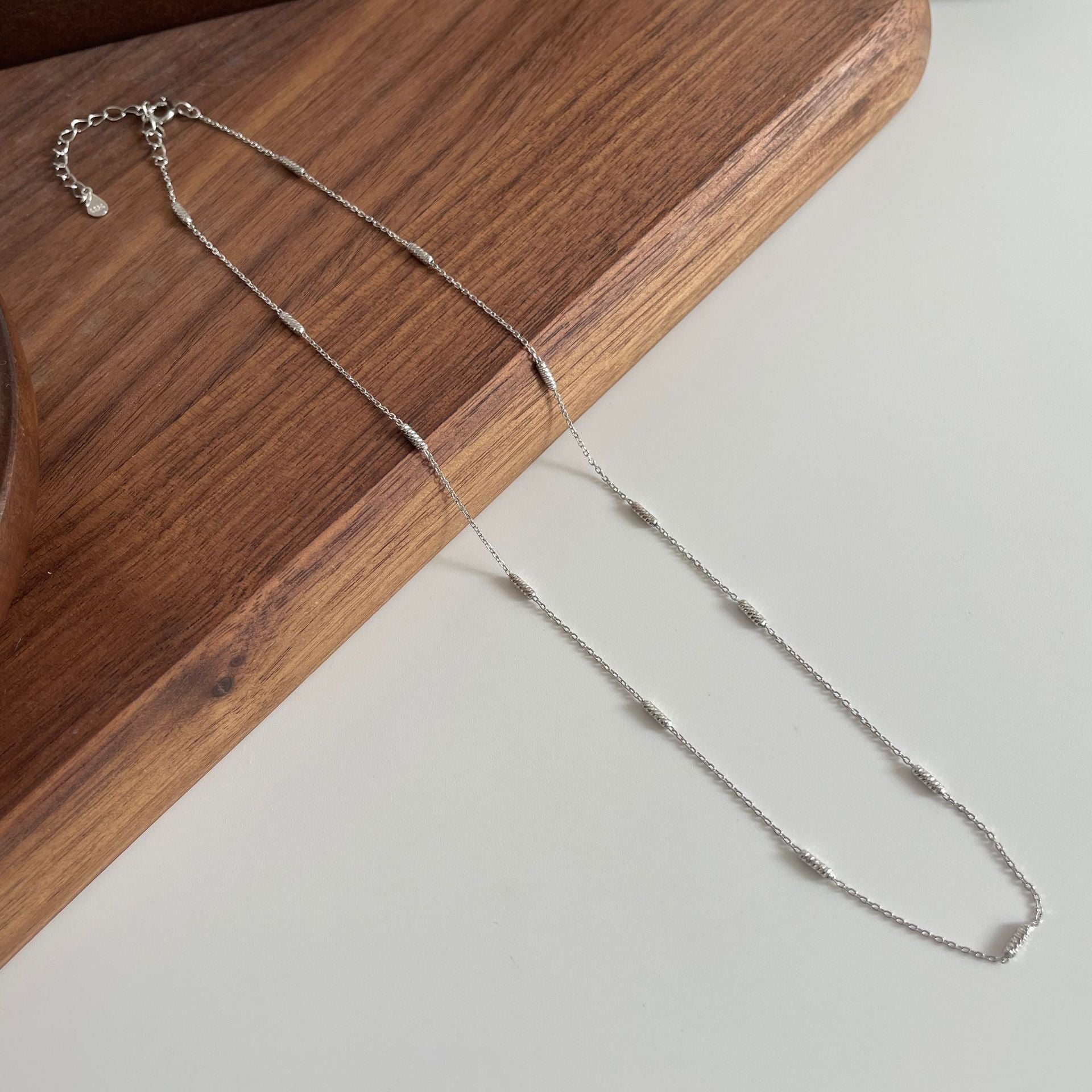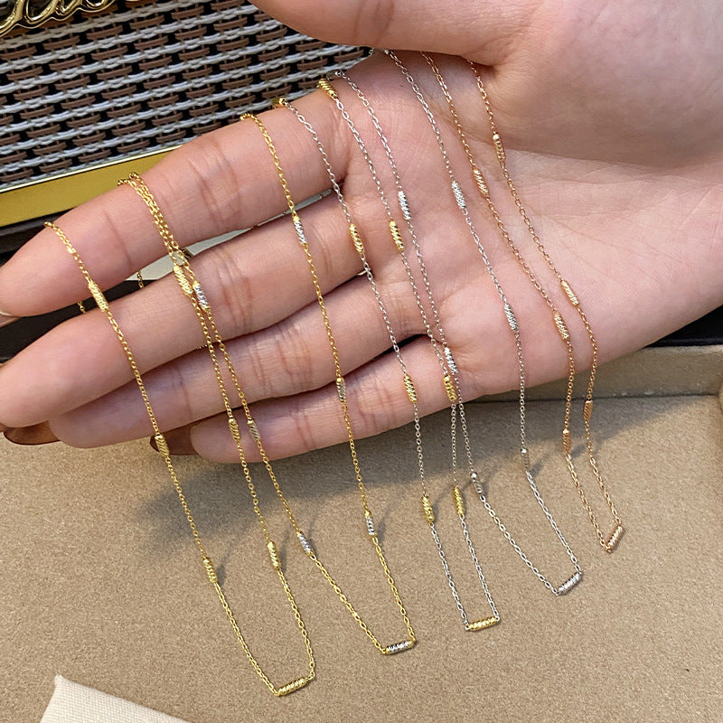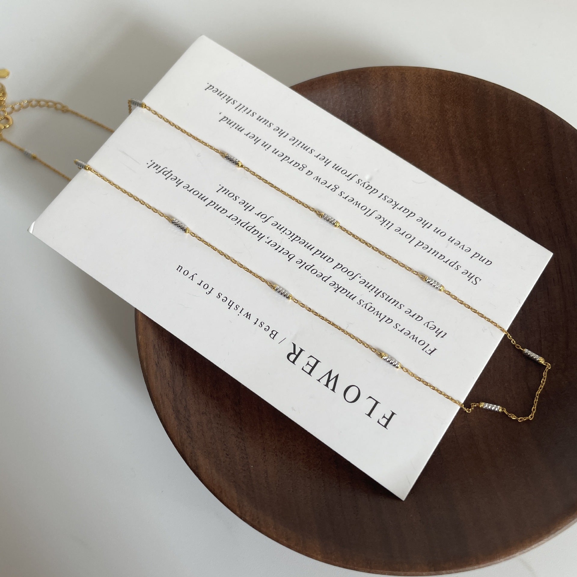 F廠【DQ2131N】S925純銀車花珠間珠十字鏈素鏈時尚簡約撞擊色疊戴鎖骨鍊女 25.02-3