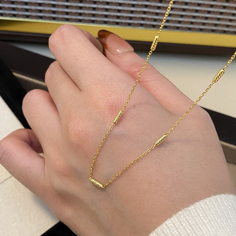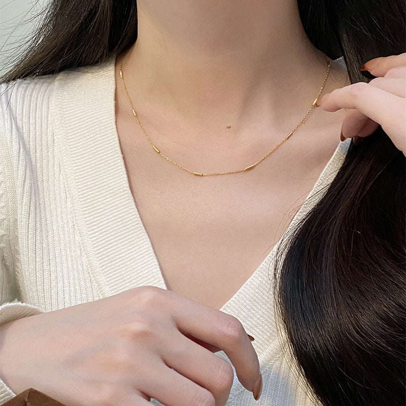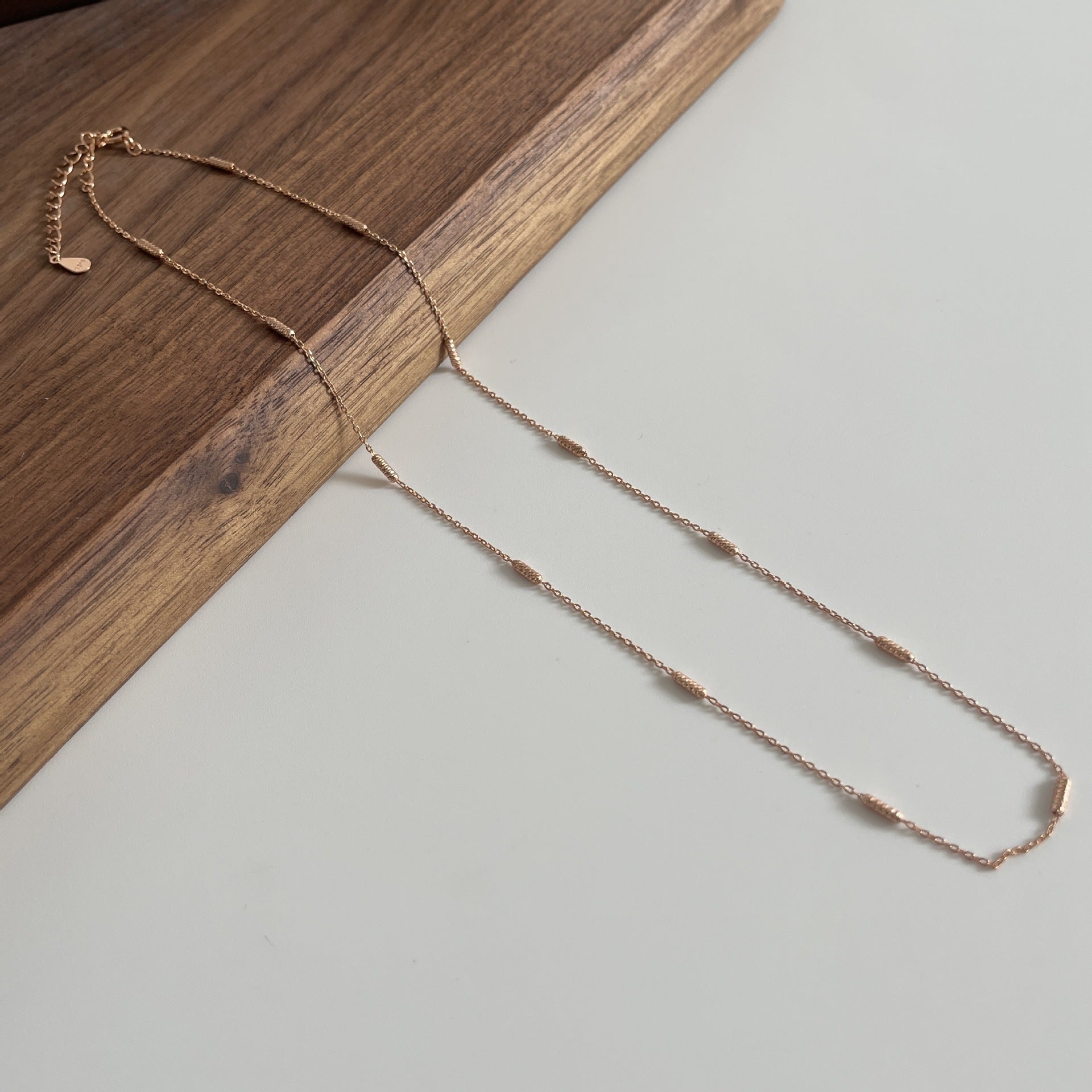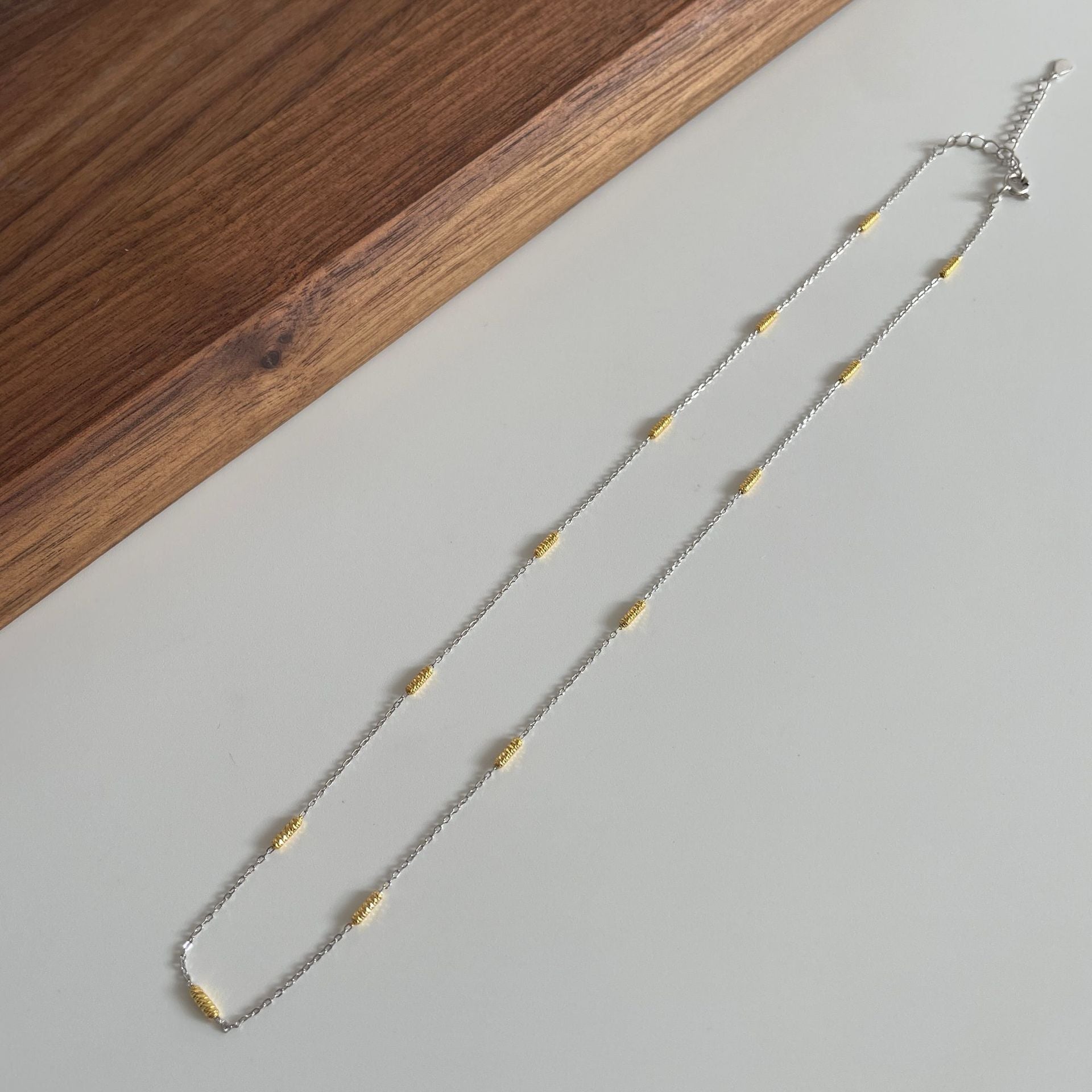 F廠【DQ2131N】S925純銀車花珠間珠十字鏈素鏈時尚簡約撞擊色疊戴鎖骨鍊女 25.02-3