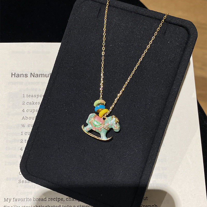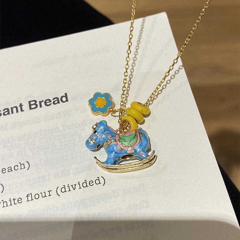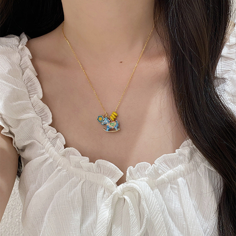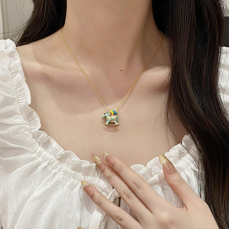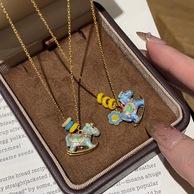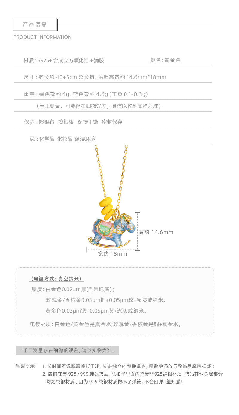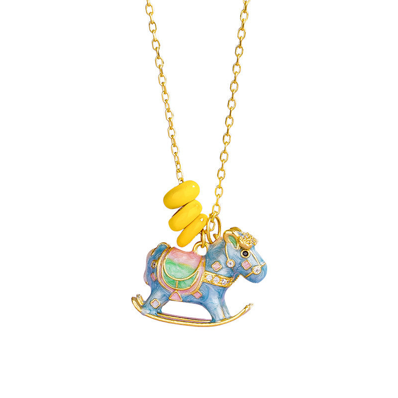 F廠【DQ2172N】S925純銀搖搖木馬項鍊女輕奢小眾馬卡龍琺瑯小馬鎖骨鏈 25.06-4