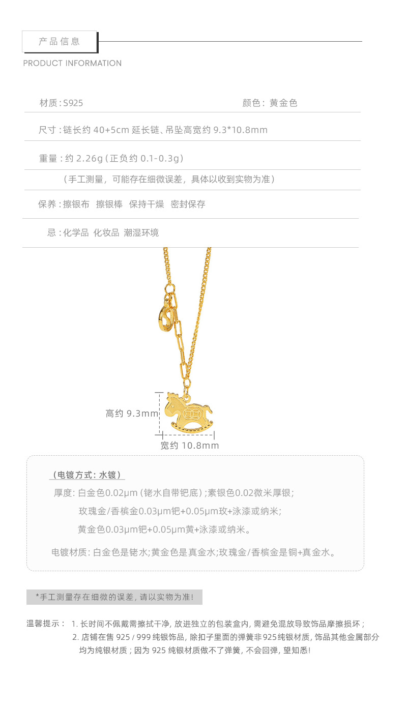 F廠【DQ2242N】馬上有錢項鍊女S925純銀時尚輕奢高級感木馬百搭鎖骨鏈潮 25.10-2