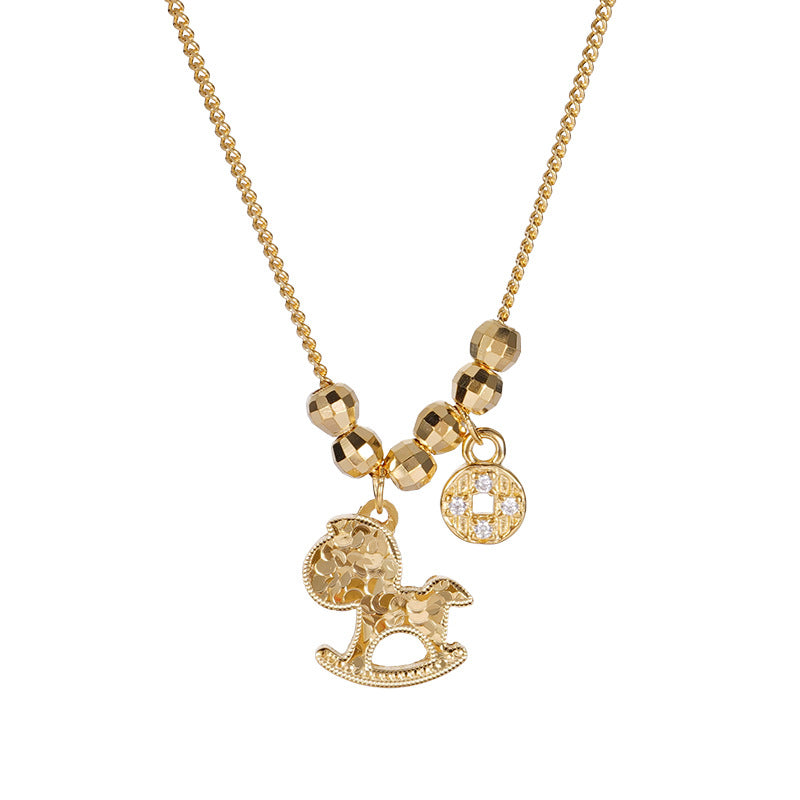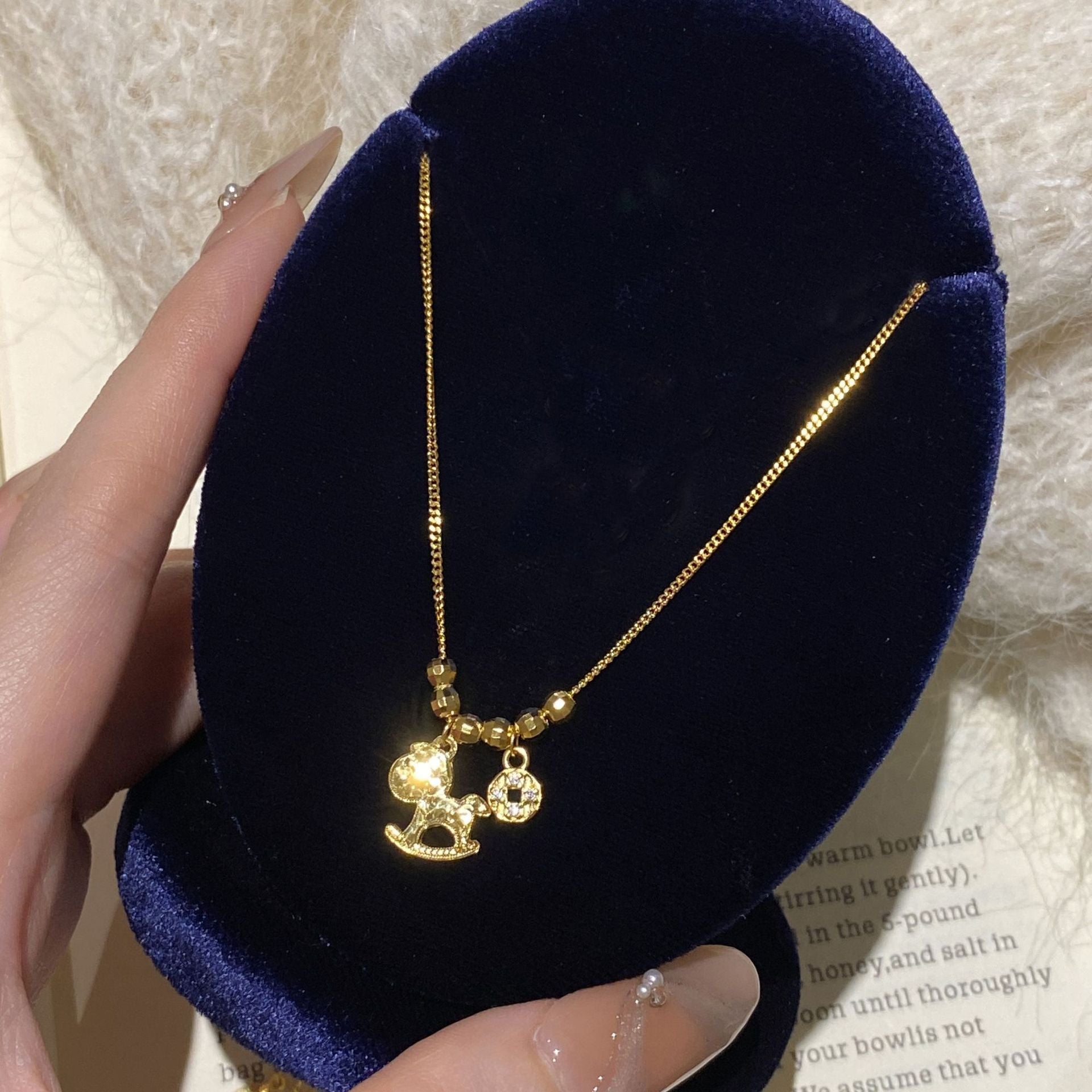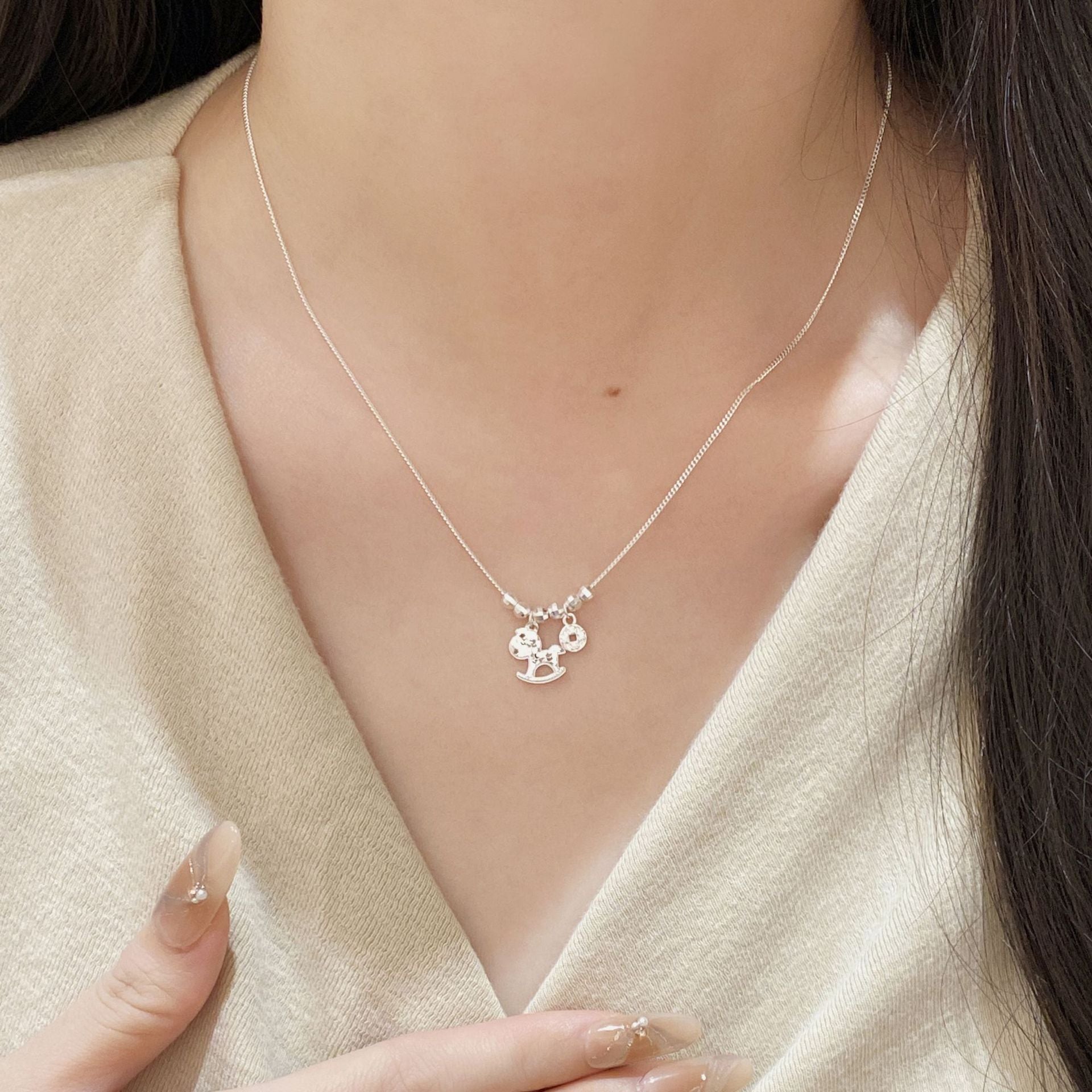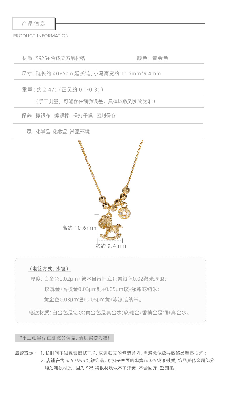 F廠【DQ2243N】S925純銀碎冰冰木馬項鍊女時尚輕奢高級感馬上有錢鎖骨鏈 25.11-2