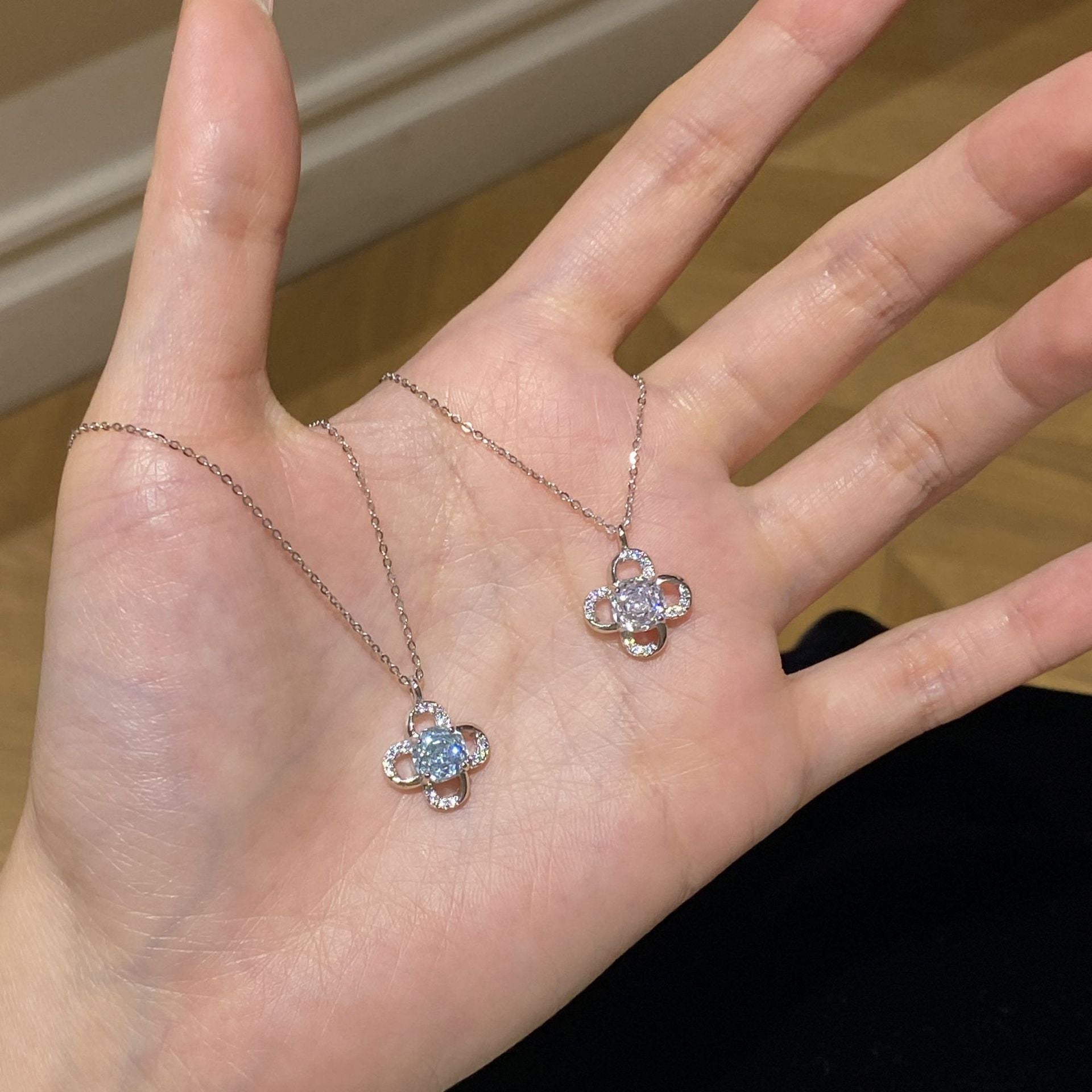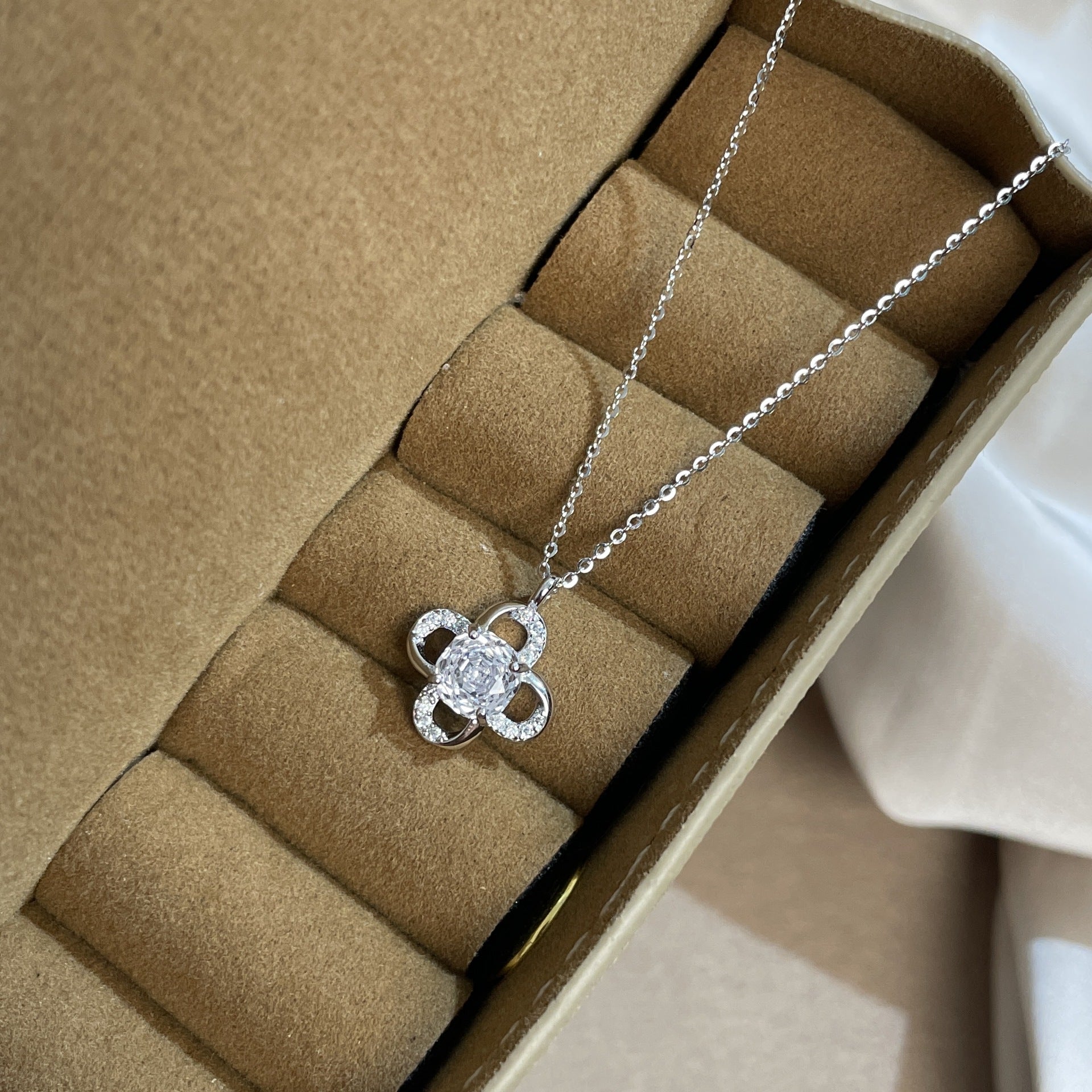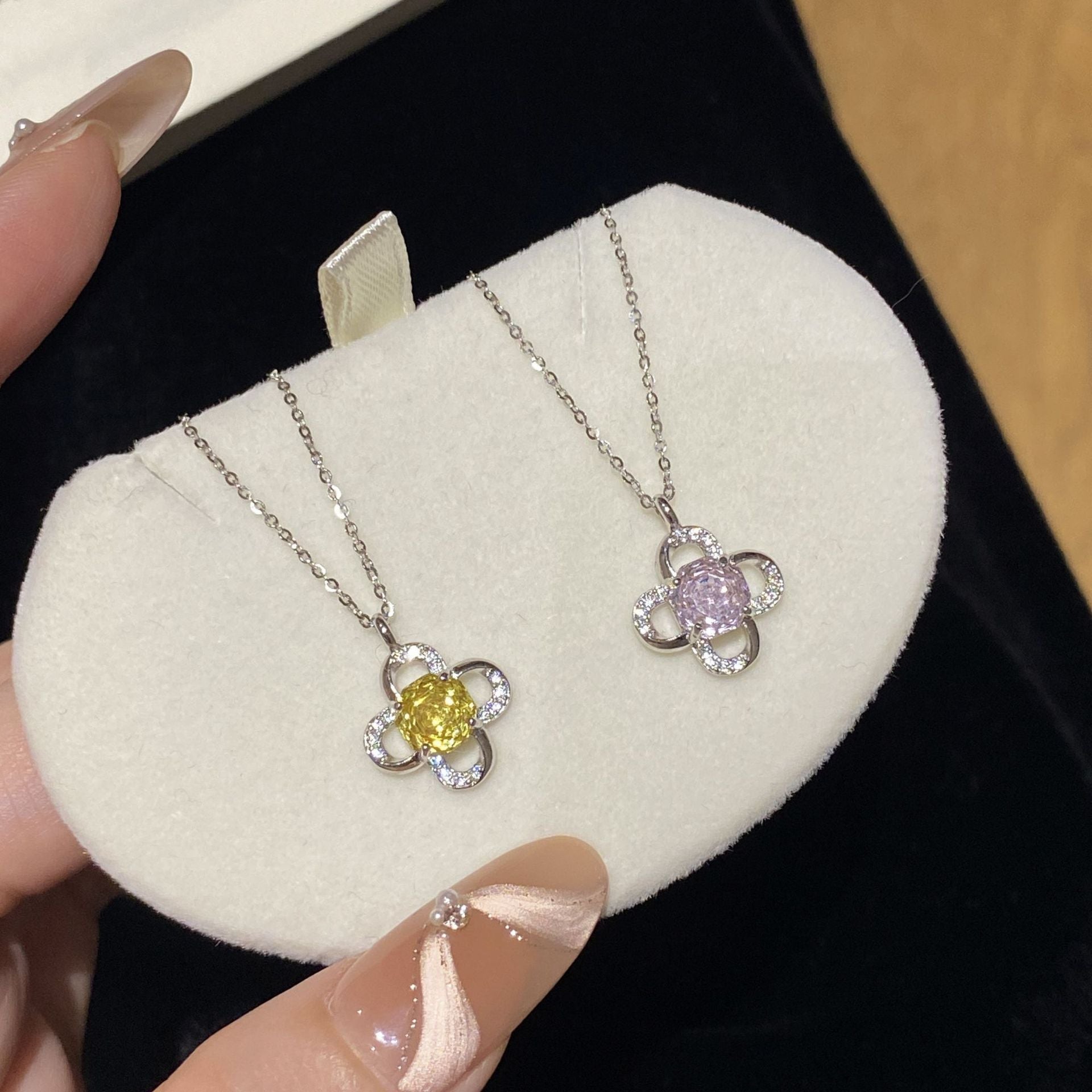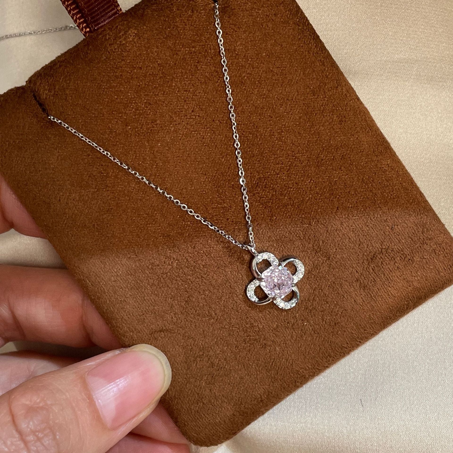 F廠【DQ2347N】S925純銀幸運四葉草項鍊女精緻高級感爆閃玫瑰切鎖骨鏈潮 25.11-1