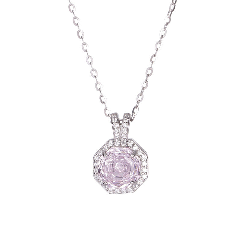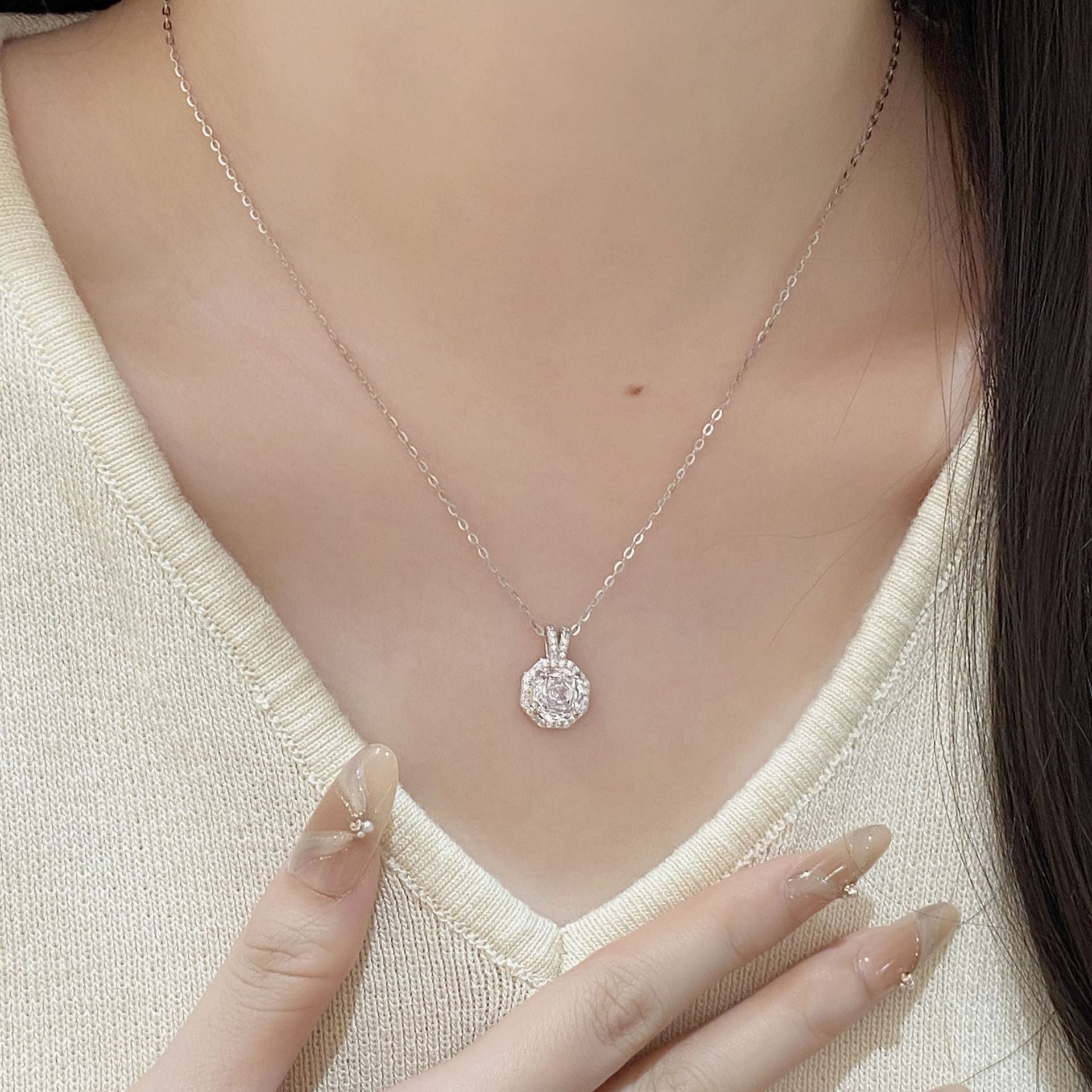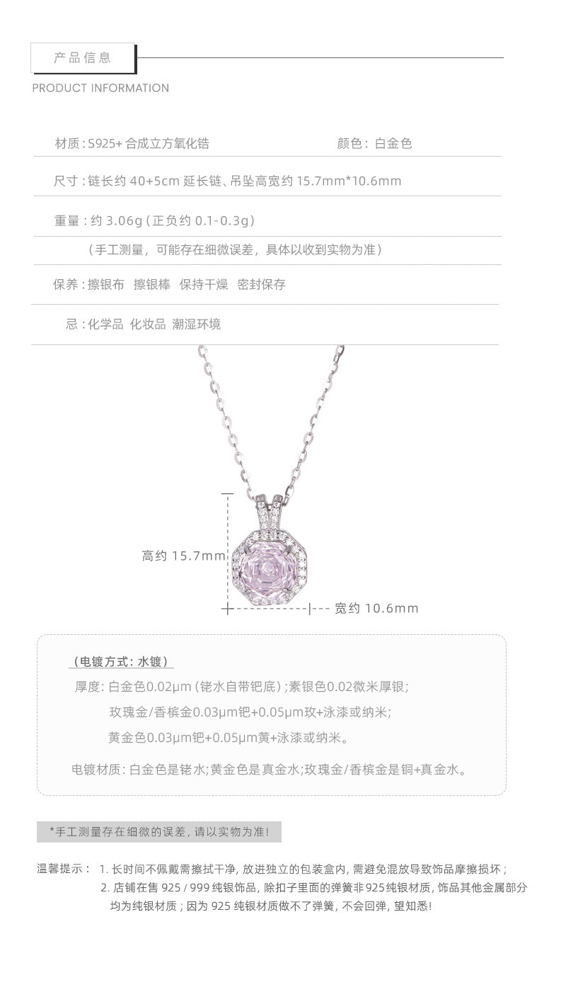 F廠【DQ2348N】S925純銀爆閃八角玫瑰切項鍊女高級感海藍玫瑰鋯石鎖骨鏈 25.11-1