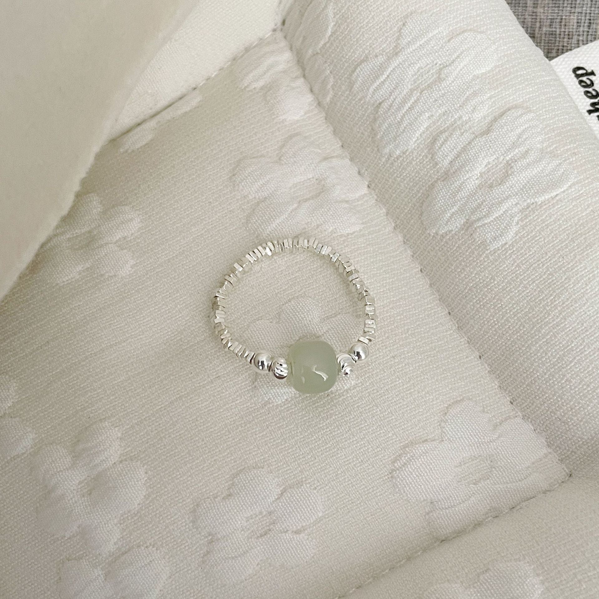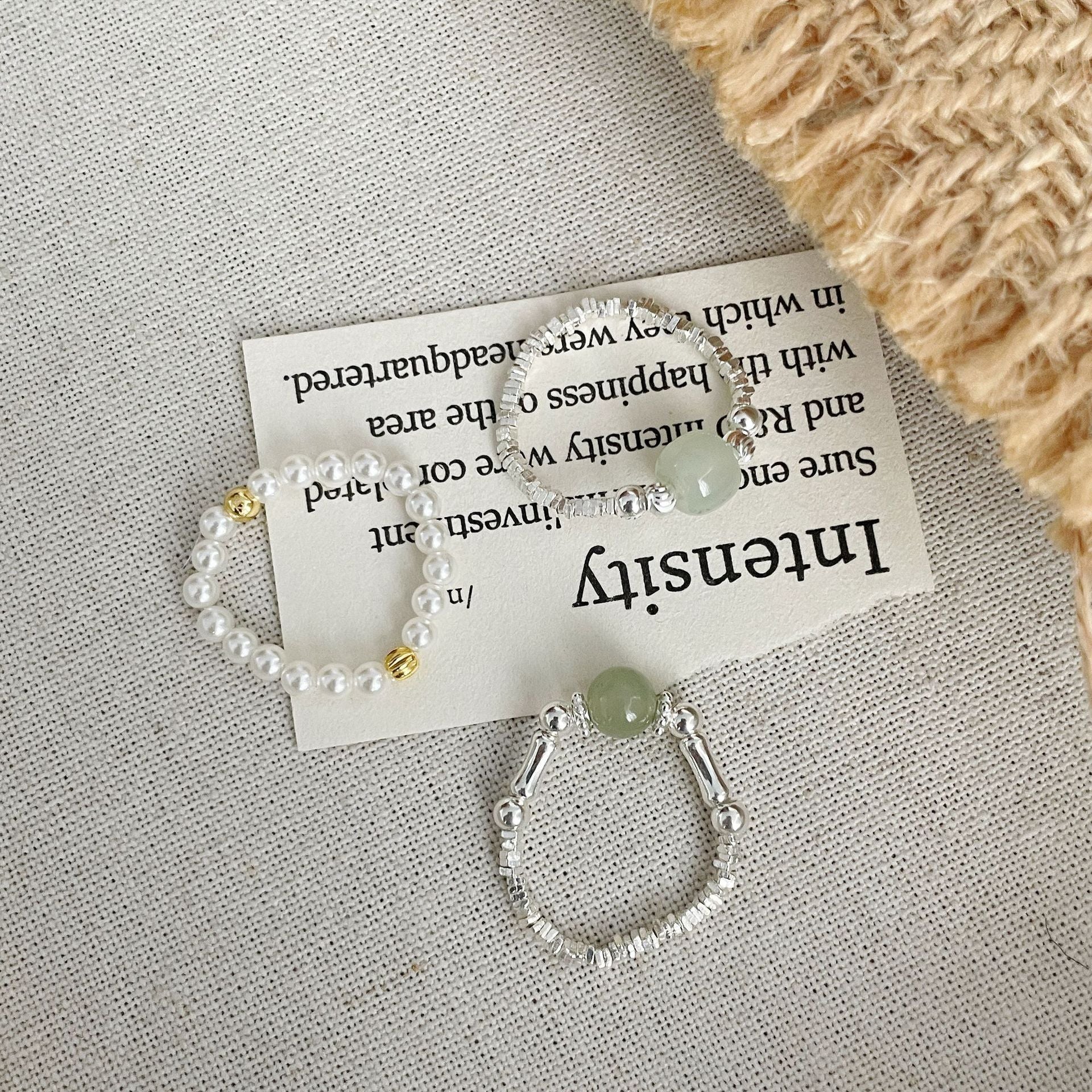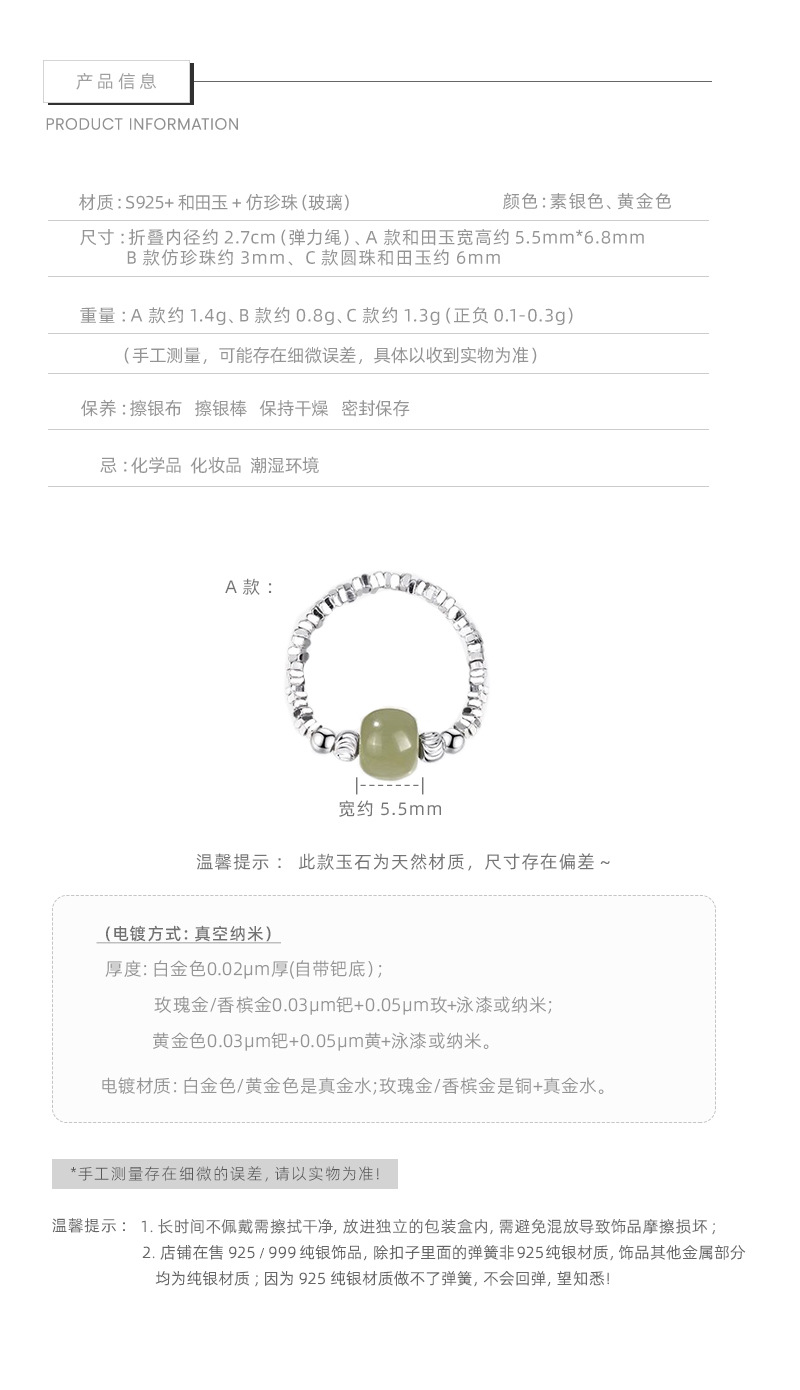 F廠【DQ8037R】S925純銀新中式和田玉碎銀子戒指女輕奢高級感仿珍珠疊戴指環 25.05-5