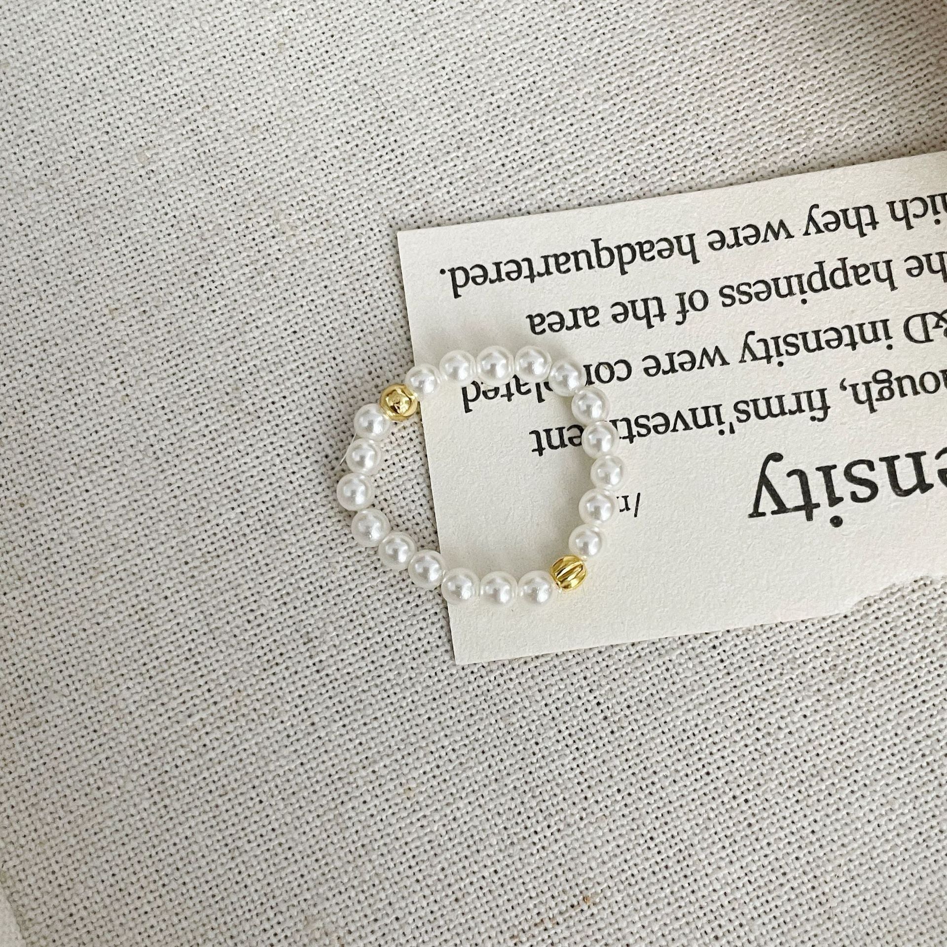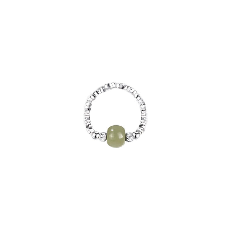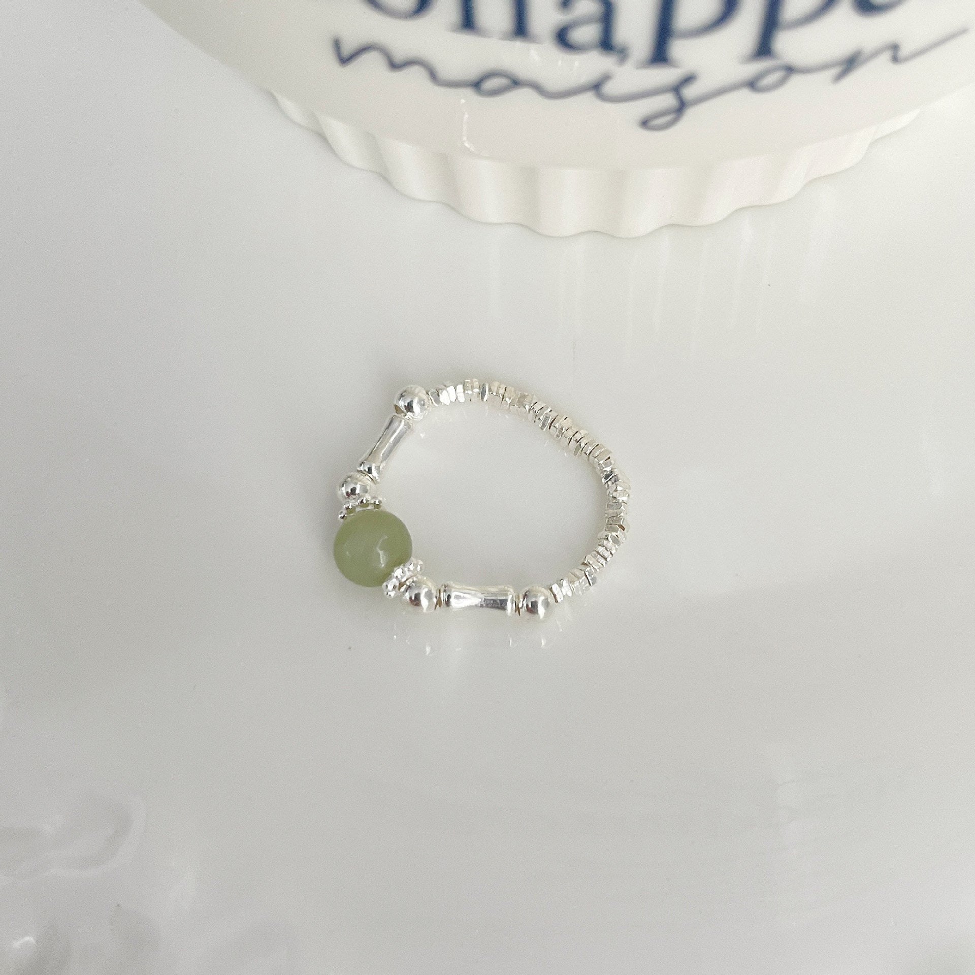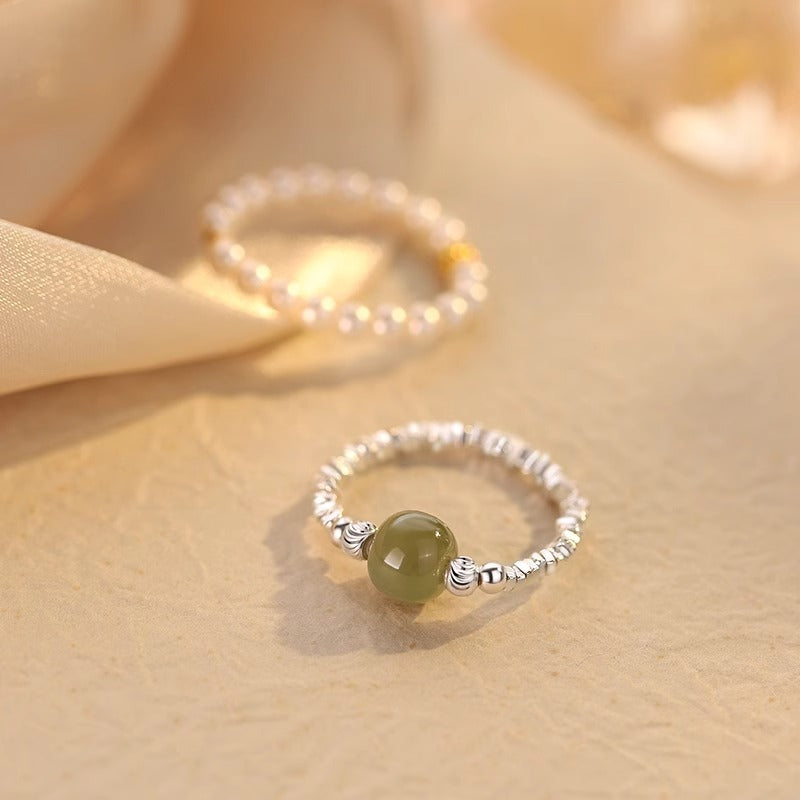 F廠【DQ8037R】S925純銀新中式和田玉碎銀子戒指女輕奢高級感仿珍珠疊戴指環 25.05-5