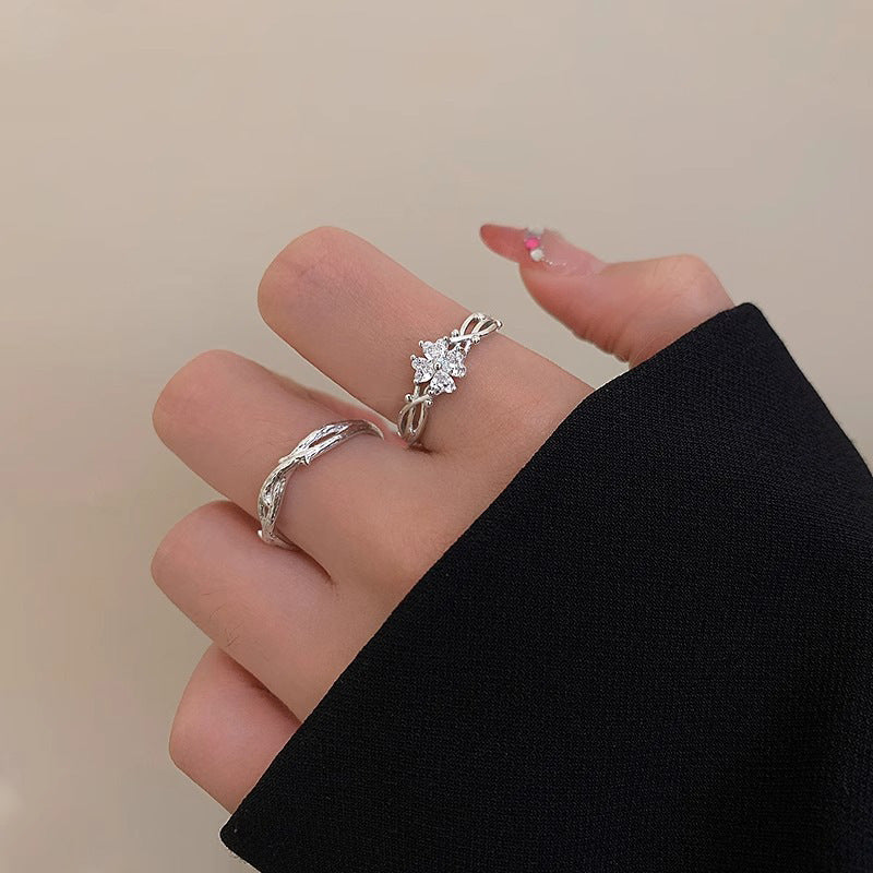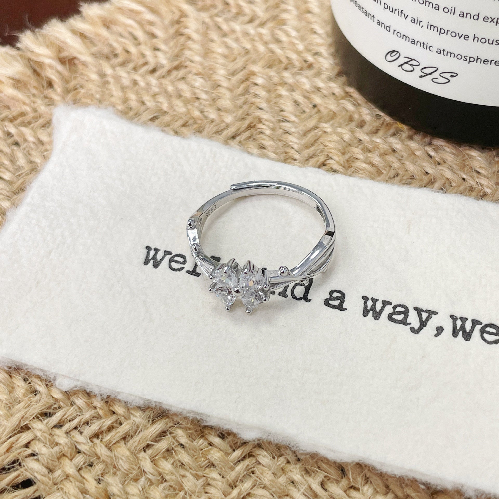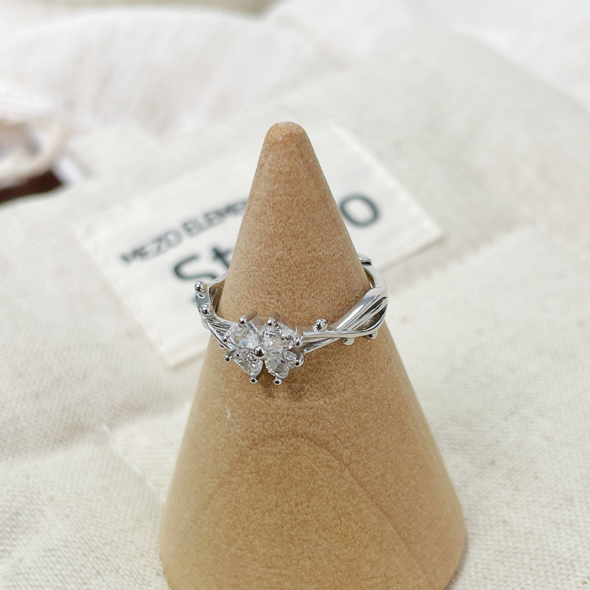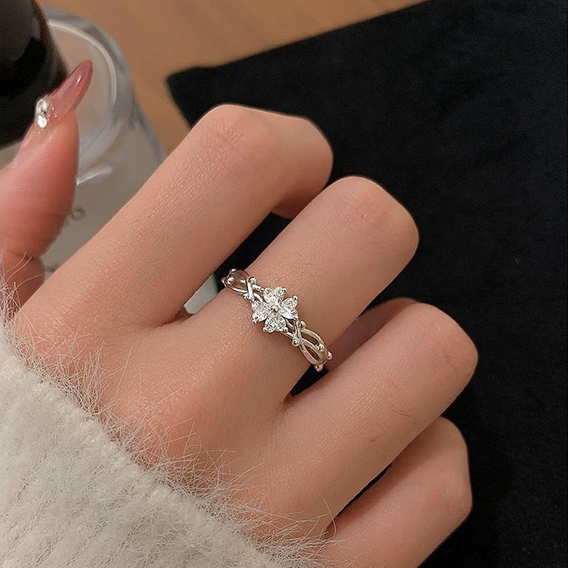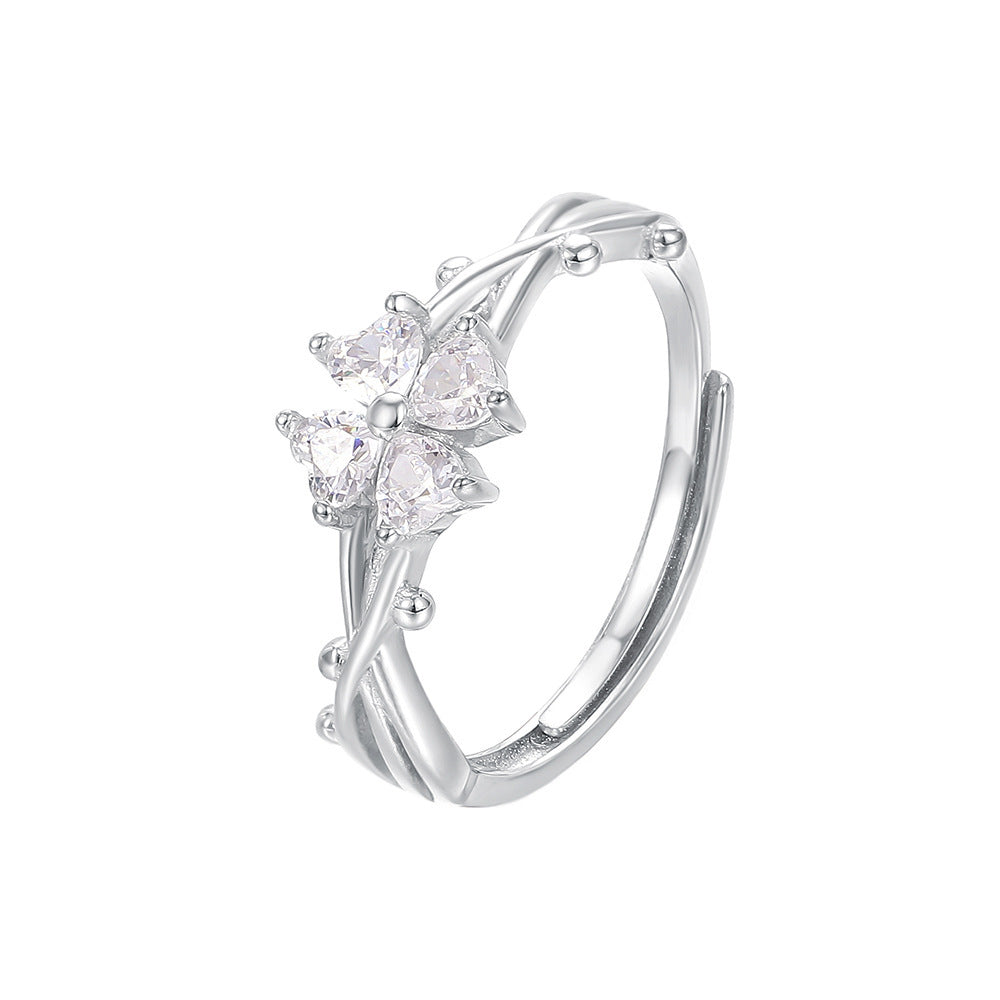 F廠【DQ8111R】足銀999荊棘四葉草戒指女時尚個性花鋯石食指戒百搭指環潮 25.06-3