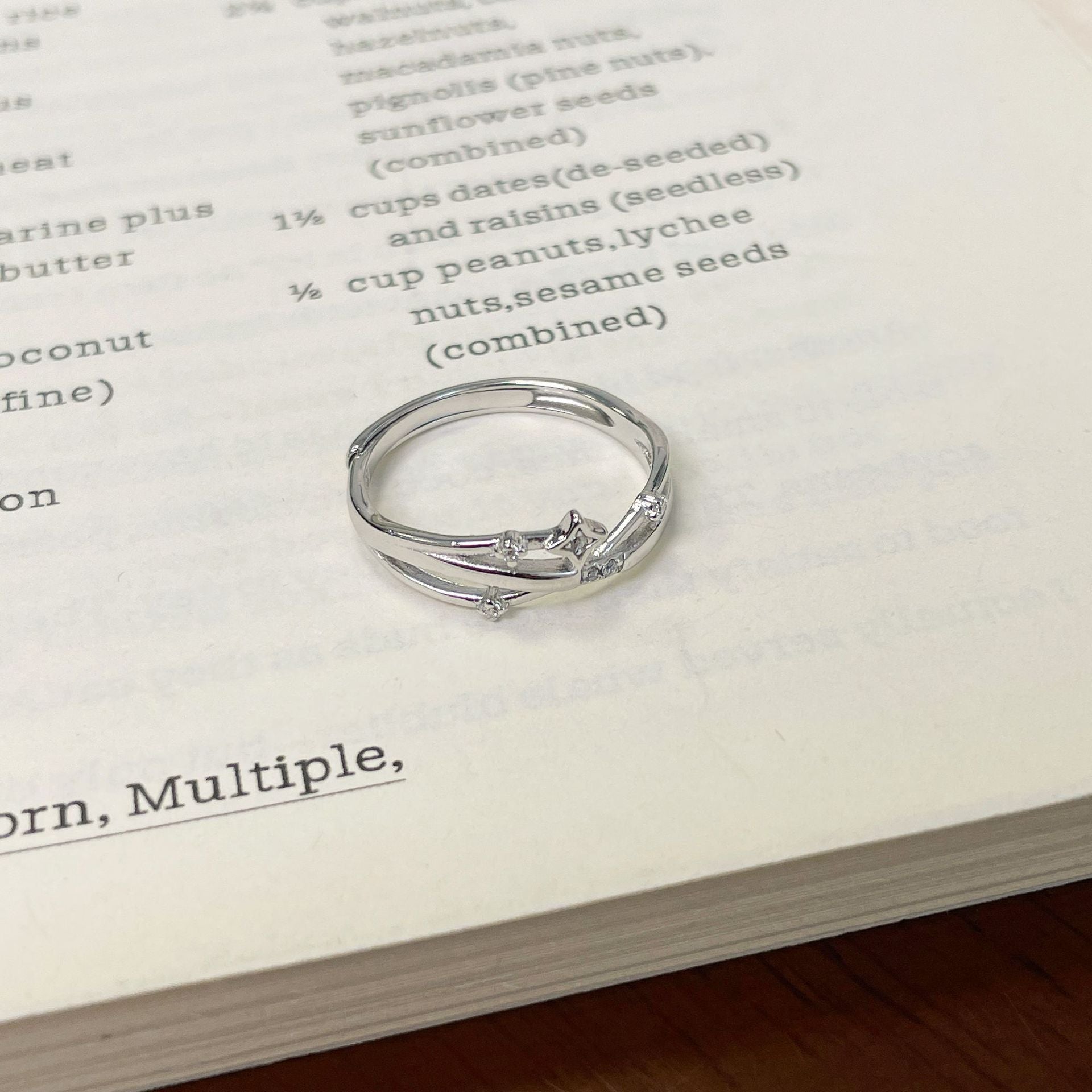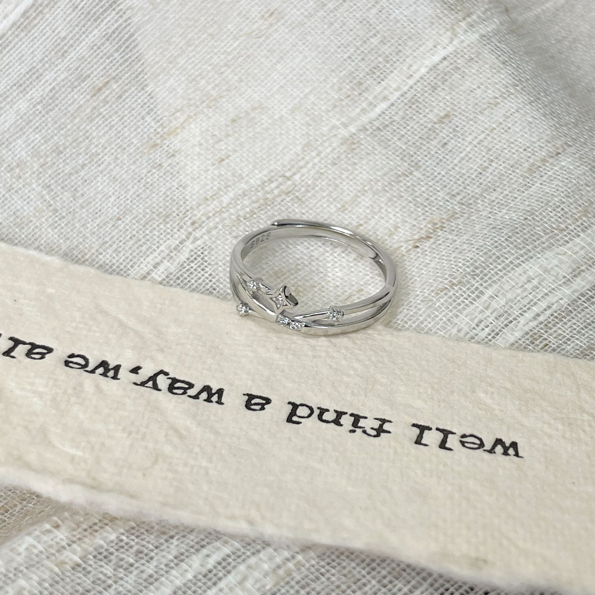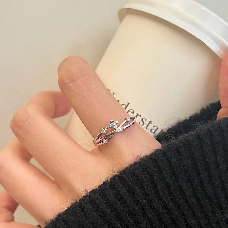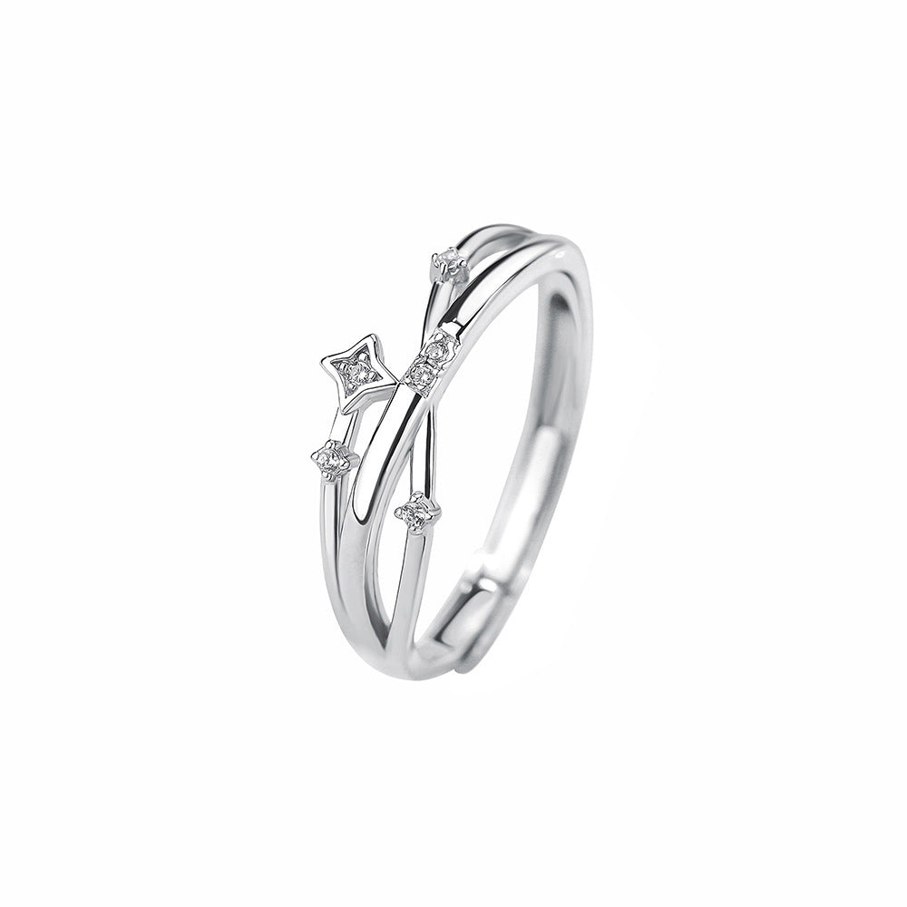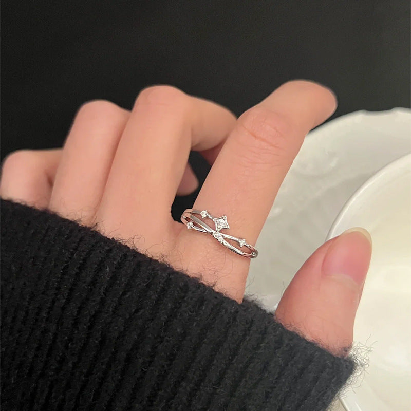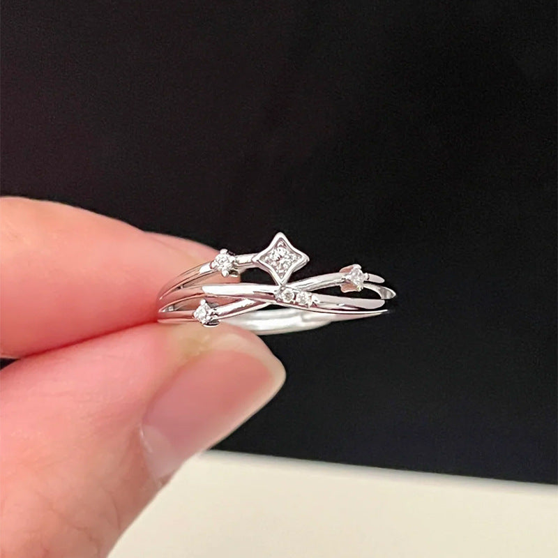 F廠【DQ8142R】S925純銀韓版流星線條交叉戒指女雙層設計星星開口食指戒指環 25.06-3