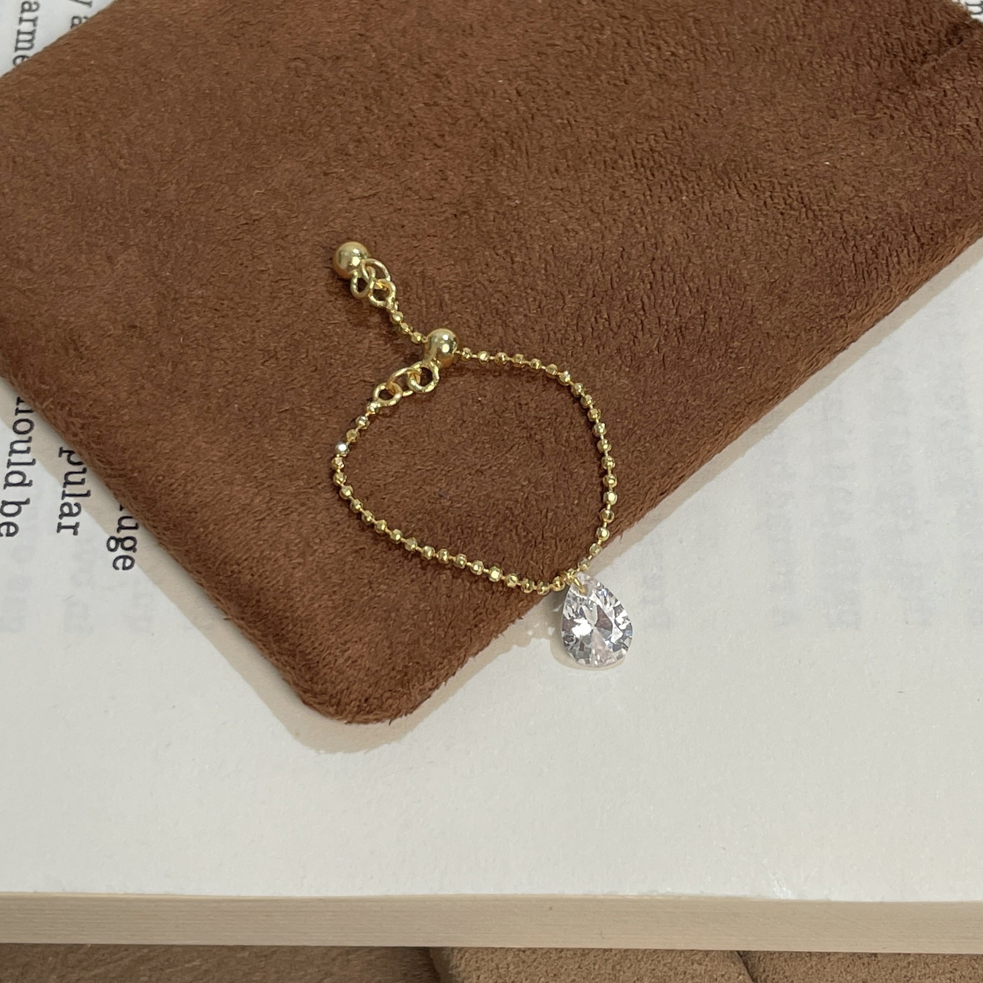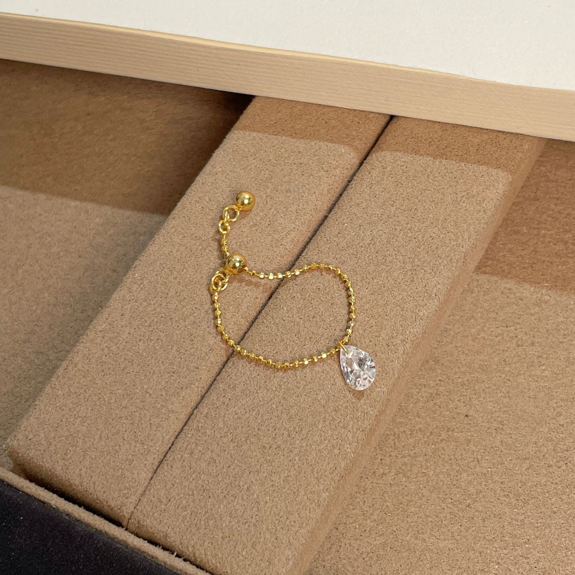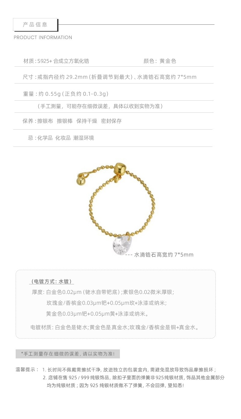 E廠【DQ8154R】S925純銀簡約高級感水滴鋯石戒指女ins時尚氣質抽拉調整戒指 25.10-3