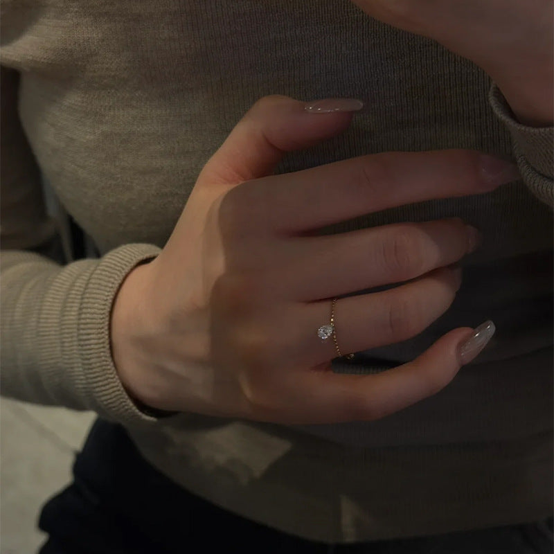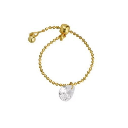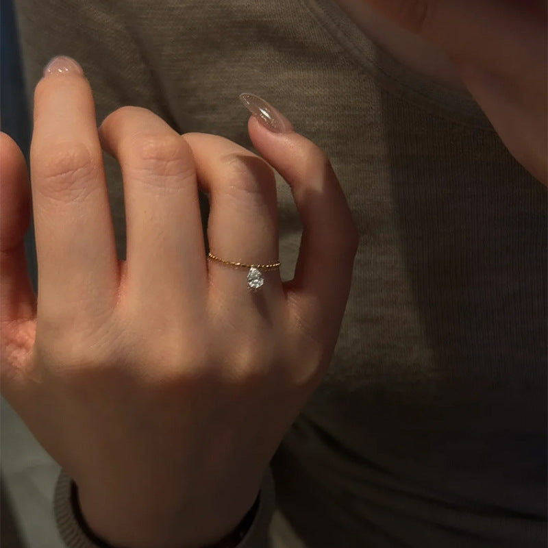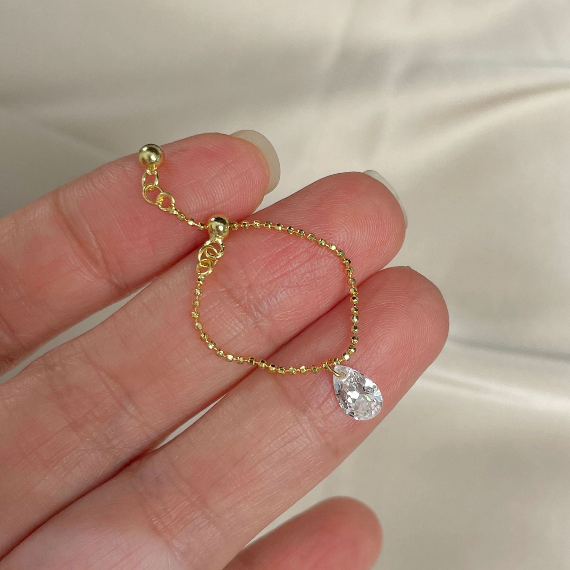 E廠【DQ8154R】S925純銀簡約高級感水滴鋯石戒指女ins時尚氣質抽拉調整戒指 25.10-3