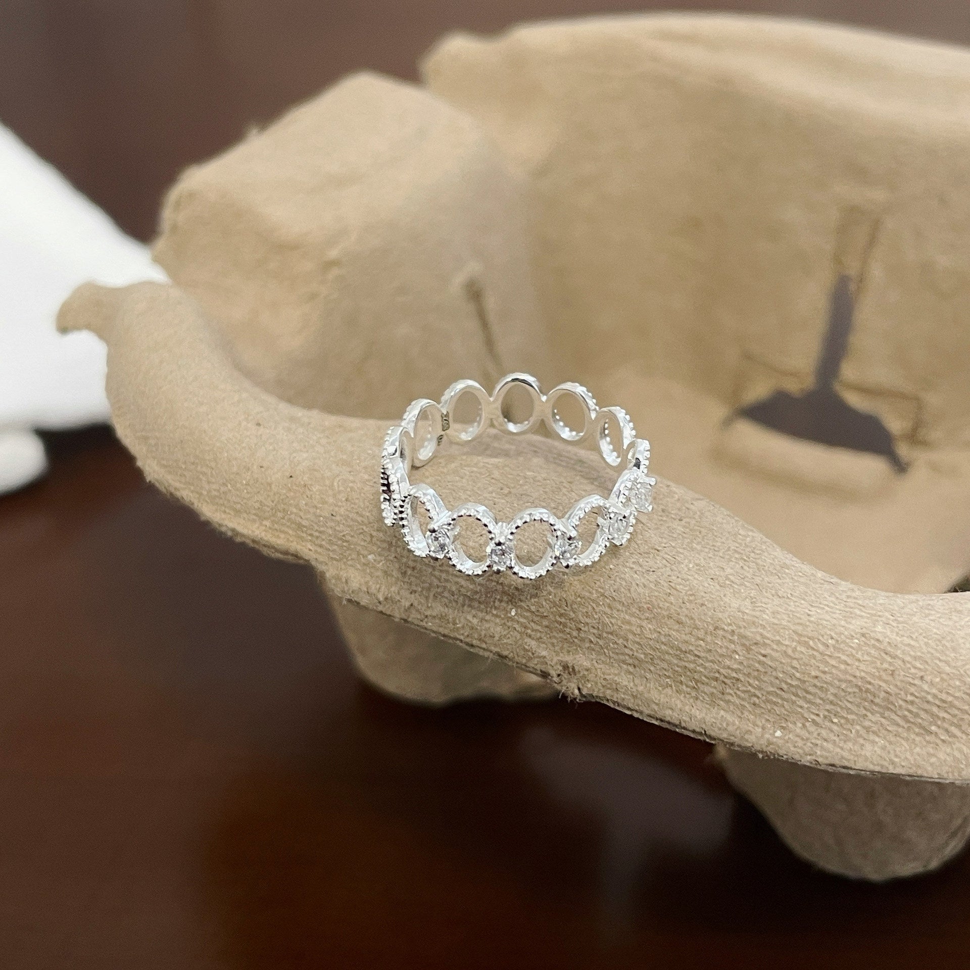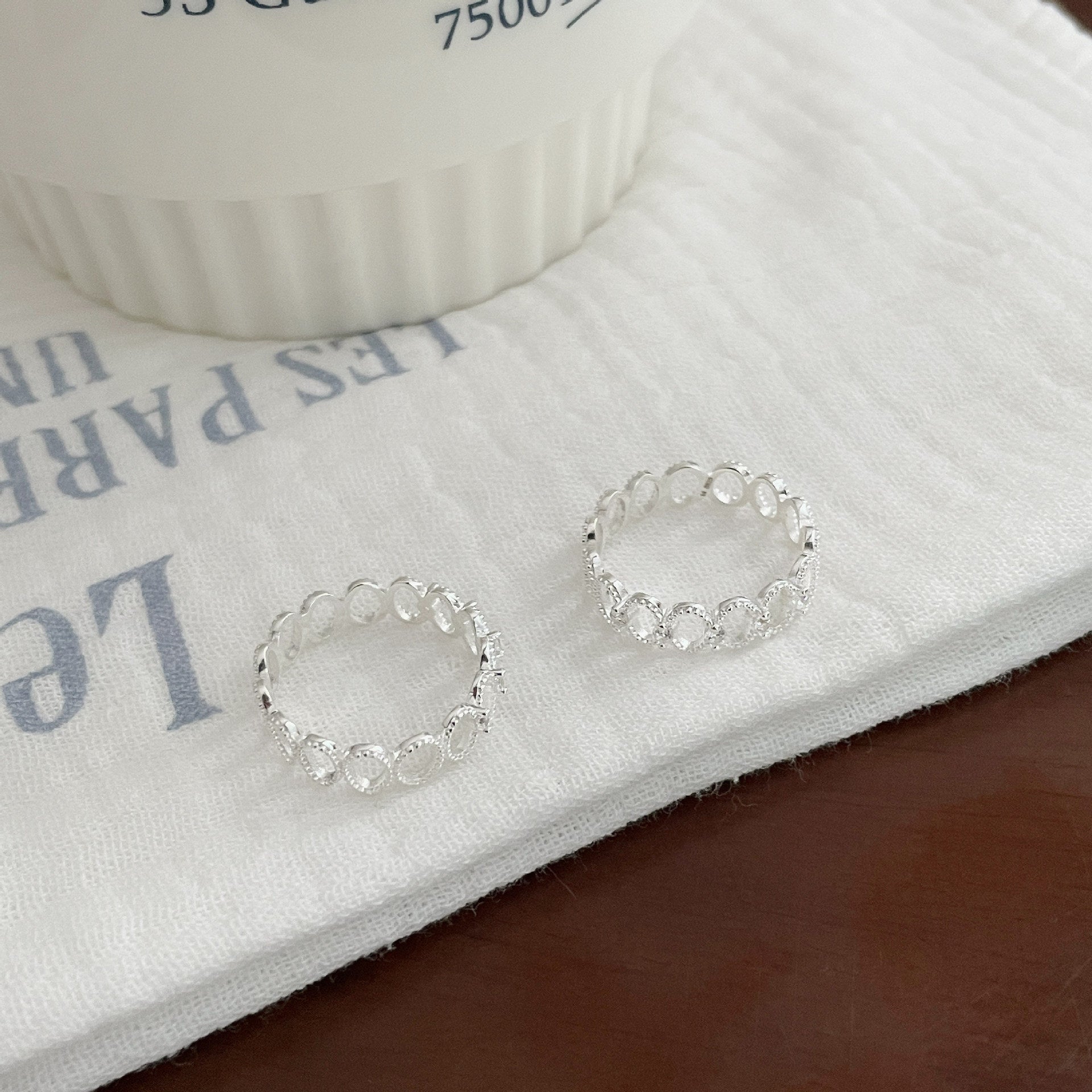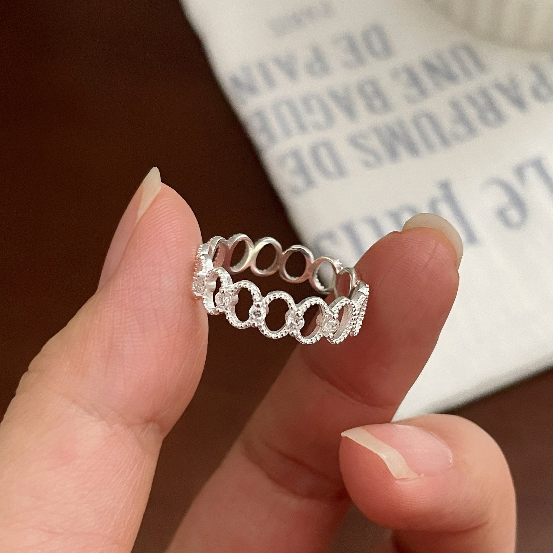 F廠【DQ8159R】S925純銀韓版簡約蕾絲鋯石戒指女ins氣質高級感鏤空圓環指環 25.10-2