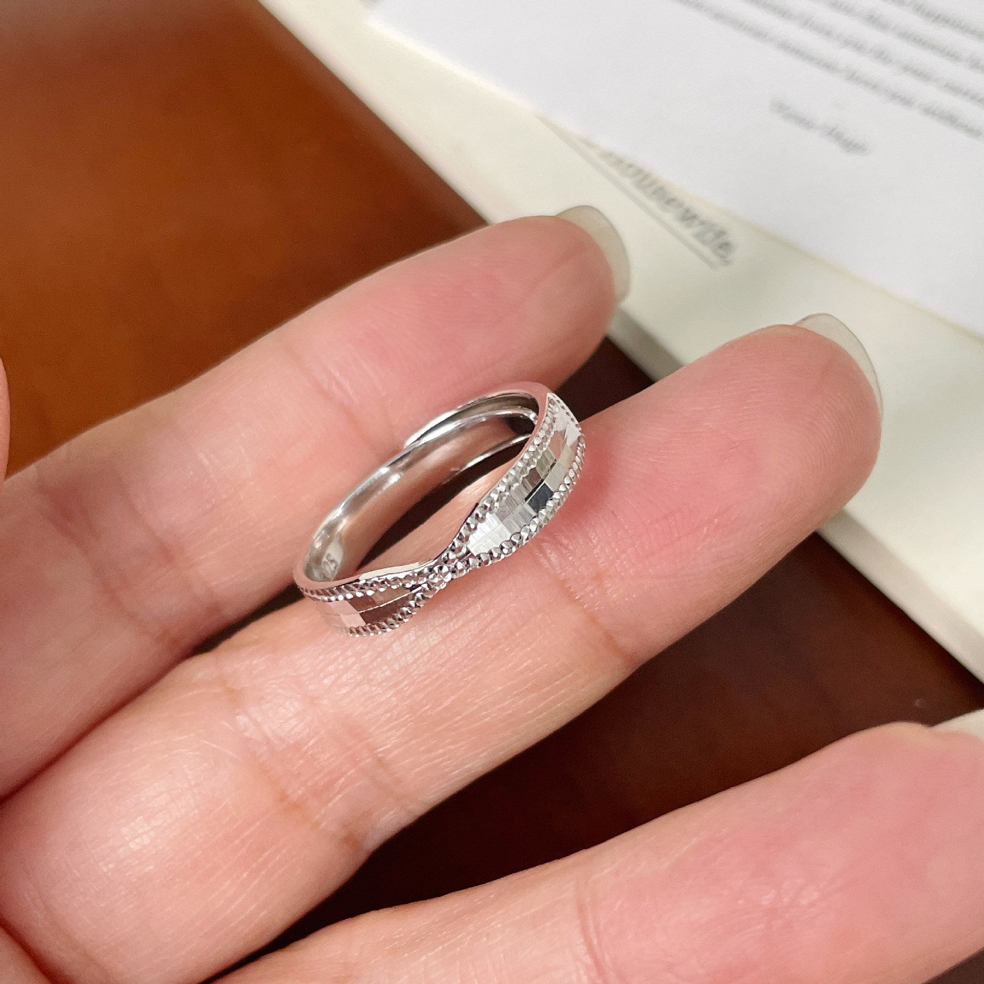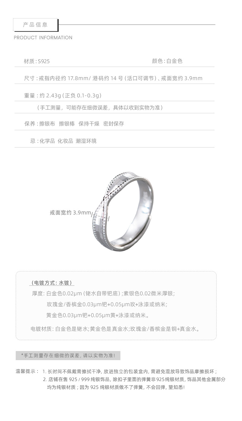 F廠【DQ8168R】ins設計感幾何方形亮片扭結戒指女S925純銀韓版氣質開口指環 25.07-1