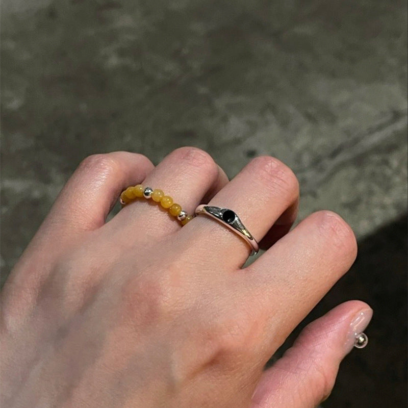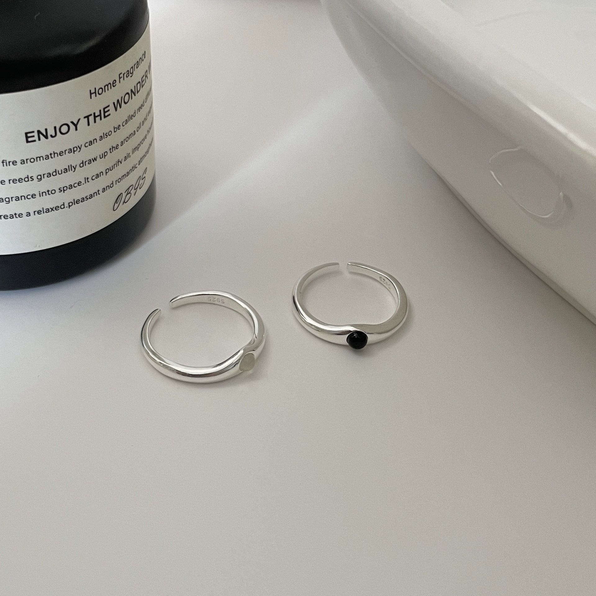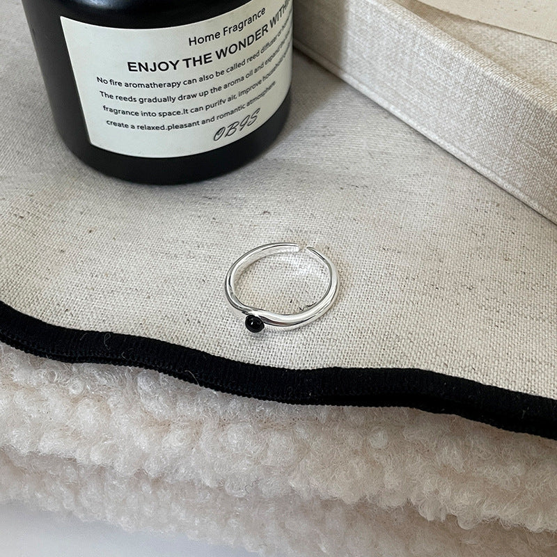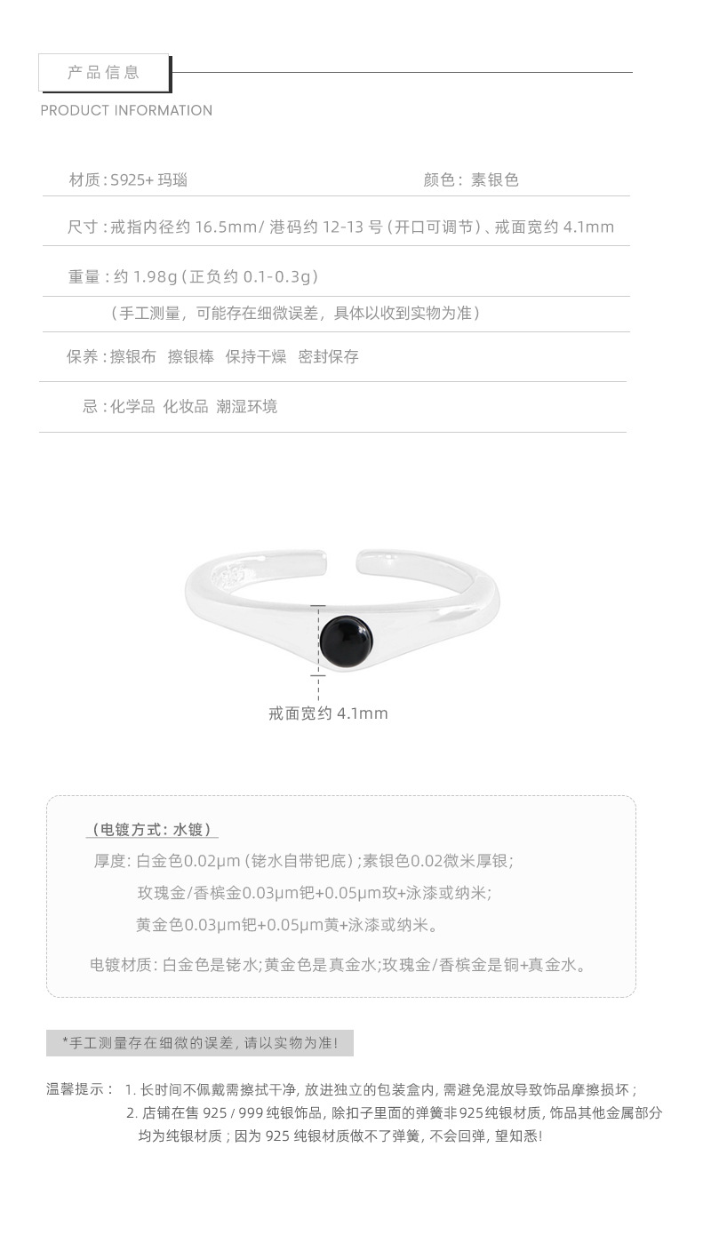 E廠【DQ8169R】S925純銀韓版ins黑瑪瑙戒指女冷淡風高級感瑪瑙疊戴開口指環 25.10-3