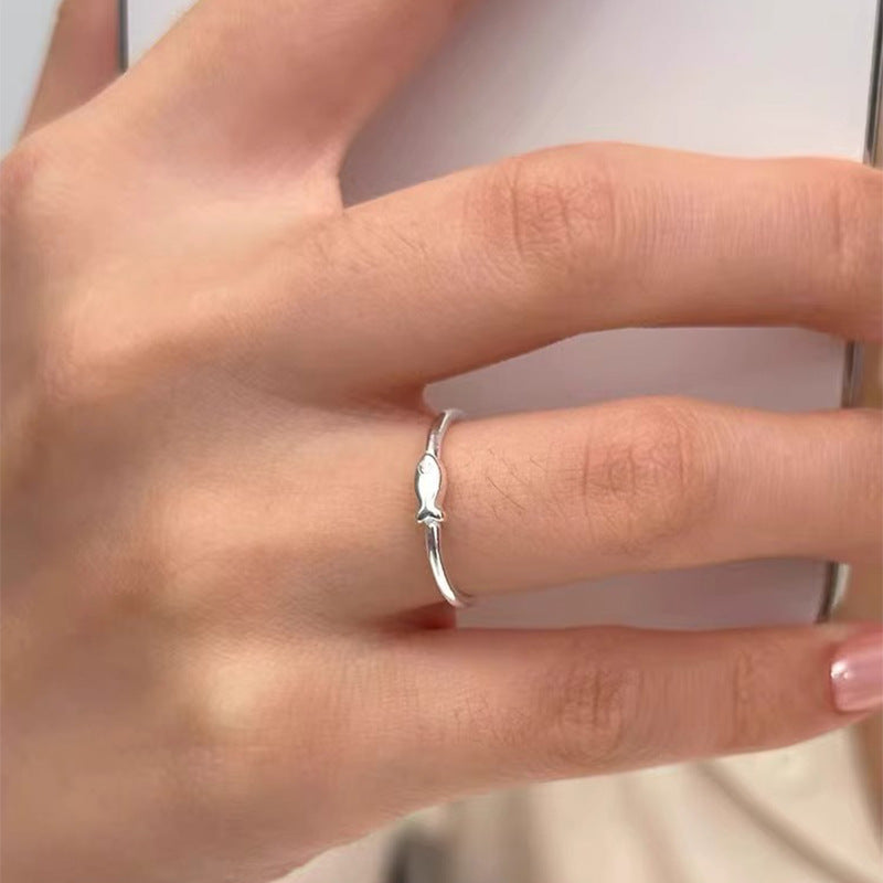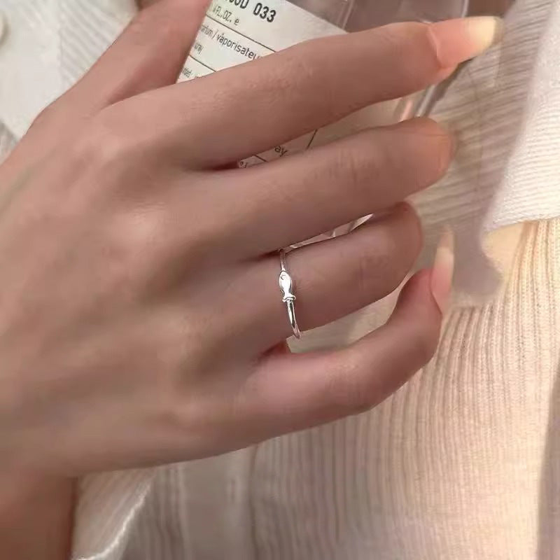 F廠【DQ8234R】足銀999簡約小眾錦鯉小魚戒指女韓版精緻純銀開口戒百搭指環 25.06-3