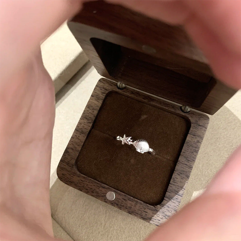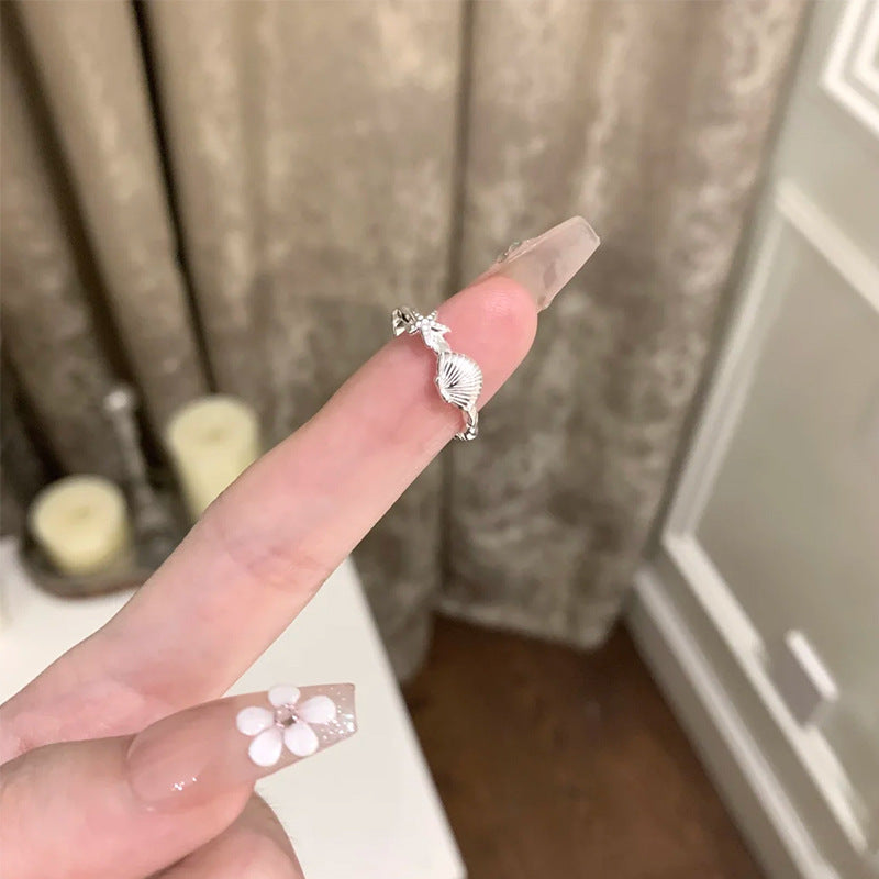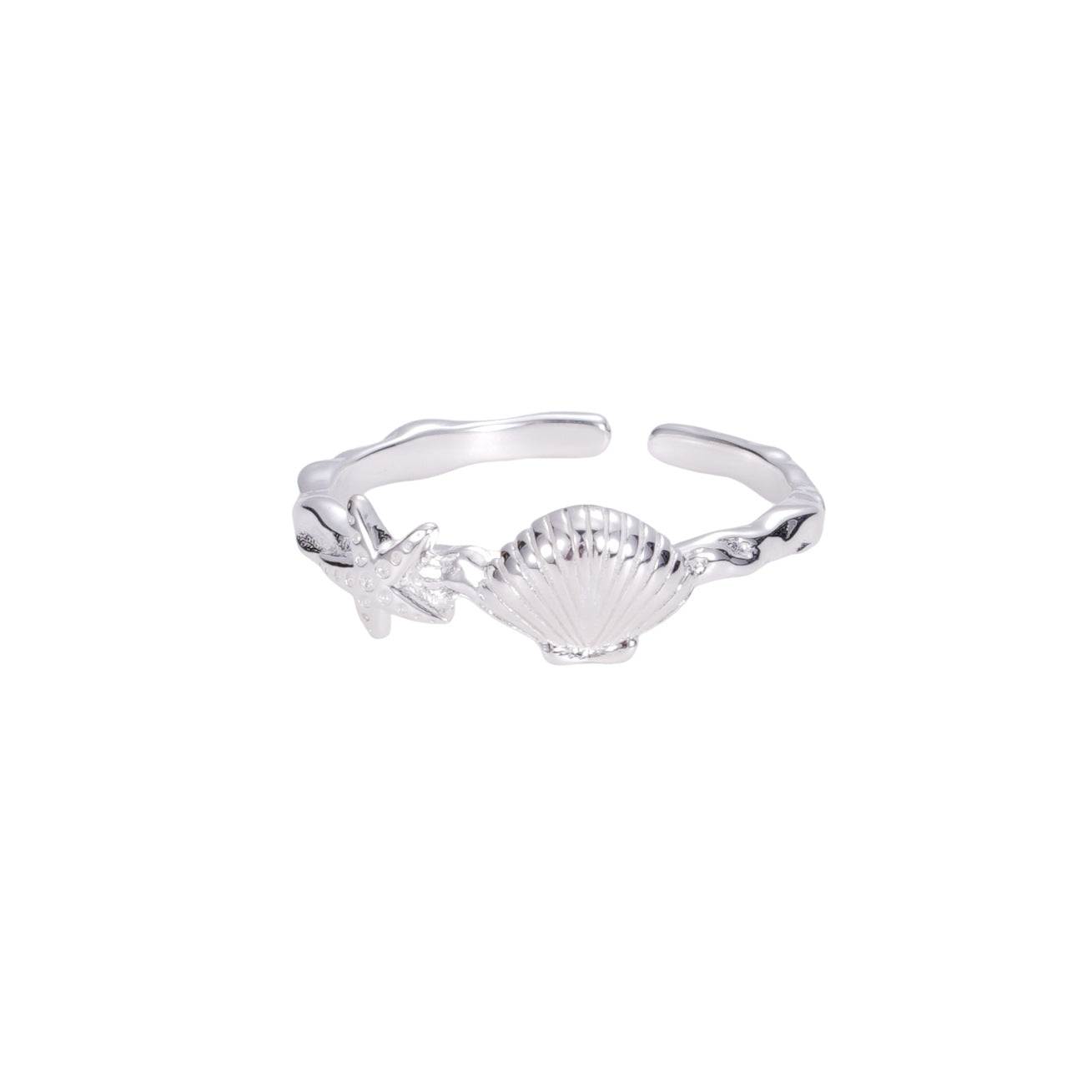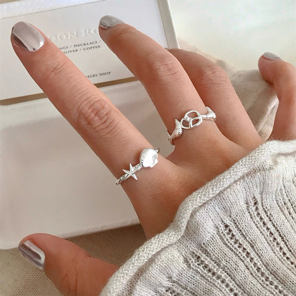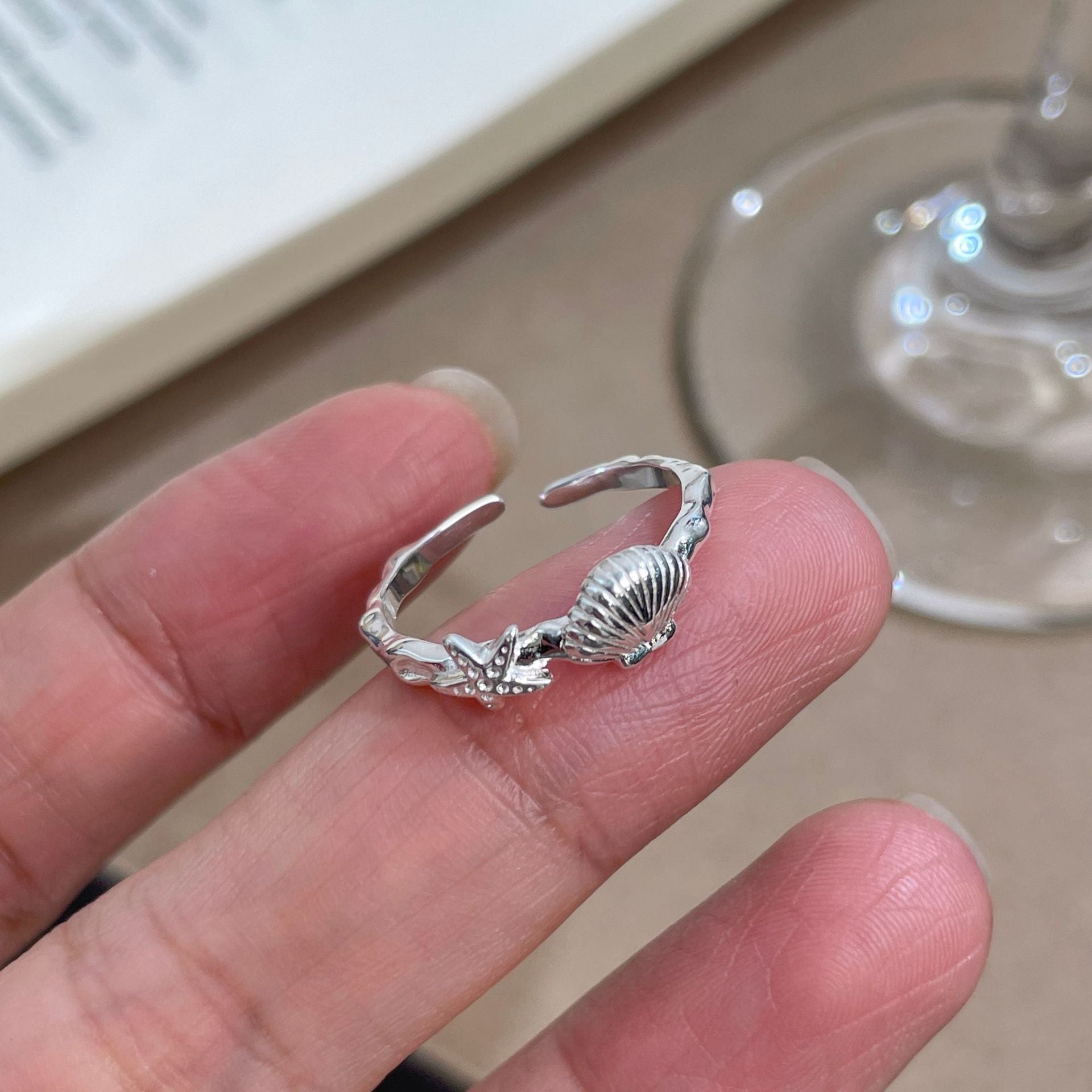 F廠【DQ8253R】S999純銀海洋風海星貝殼戒指女簡約精緻高級感開口食指戒指環 25.09-3